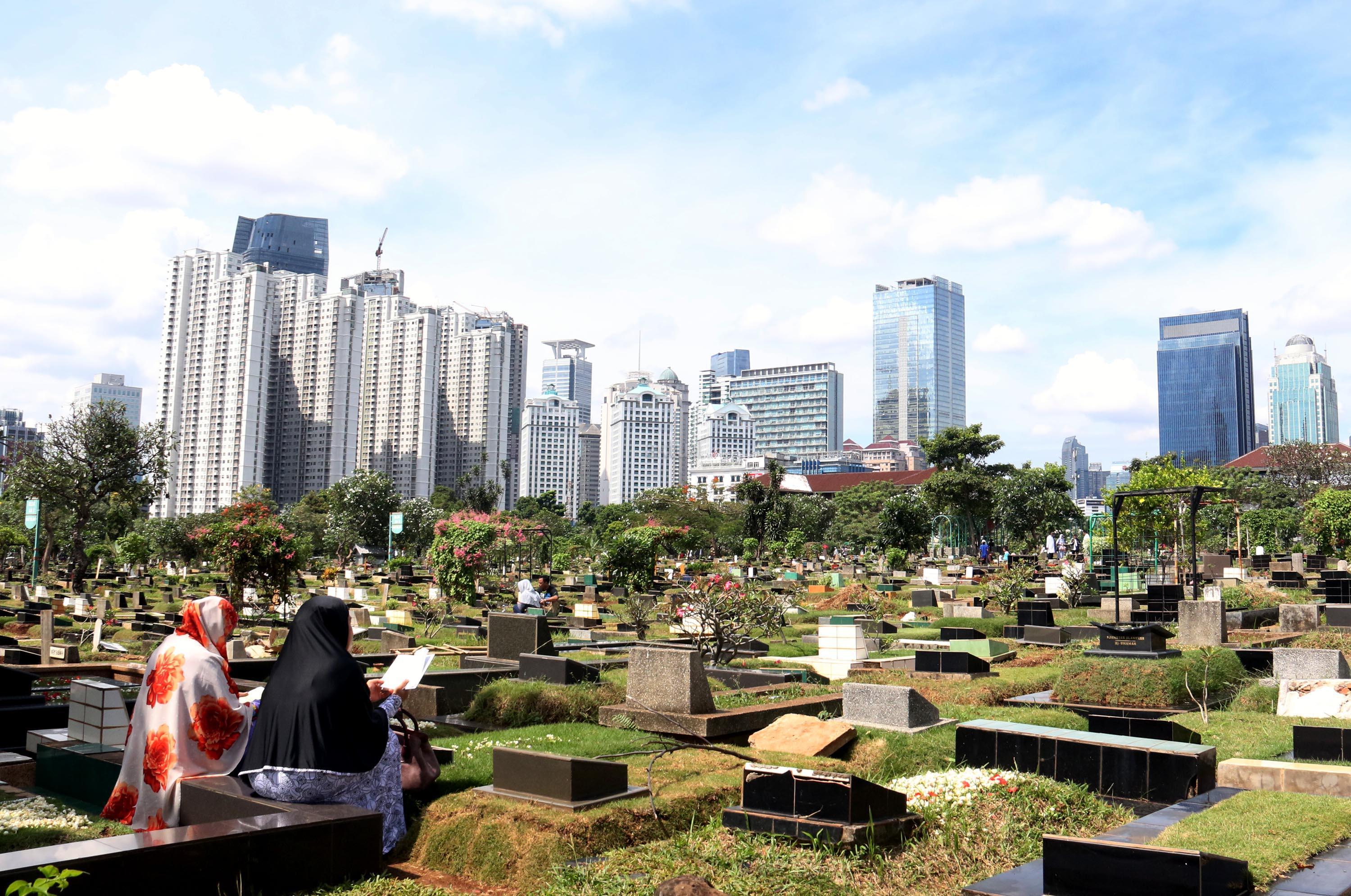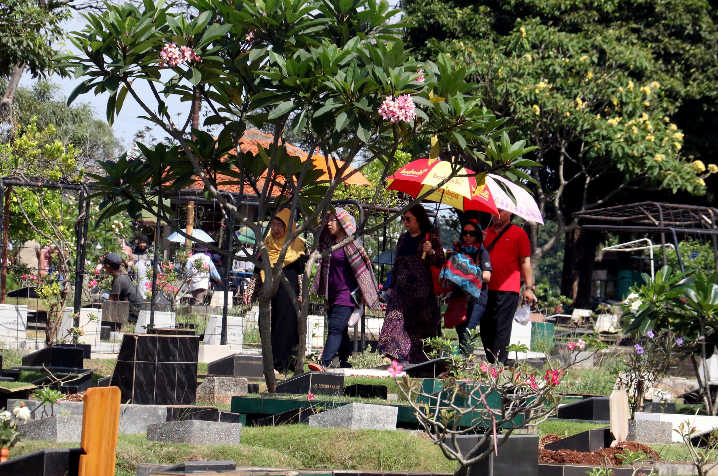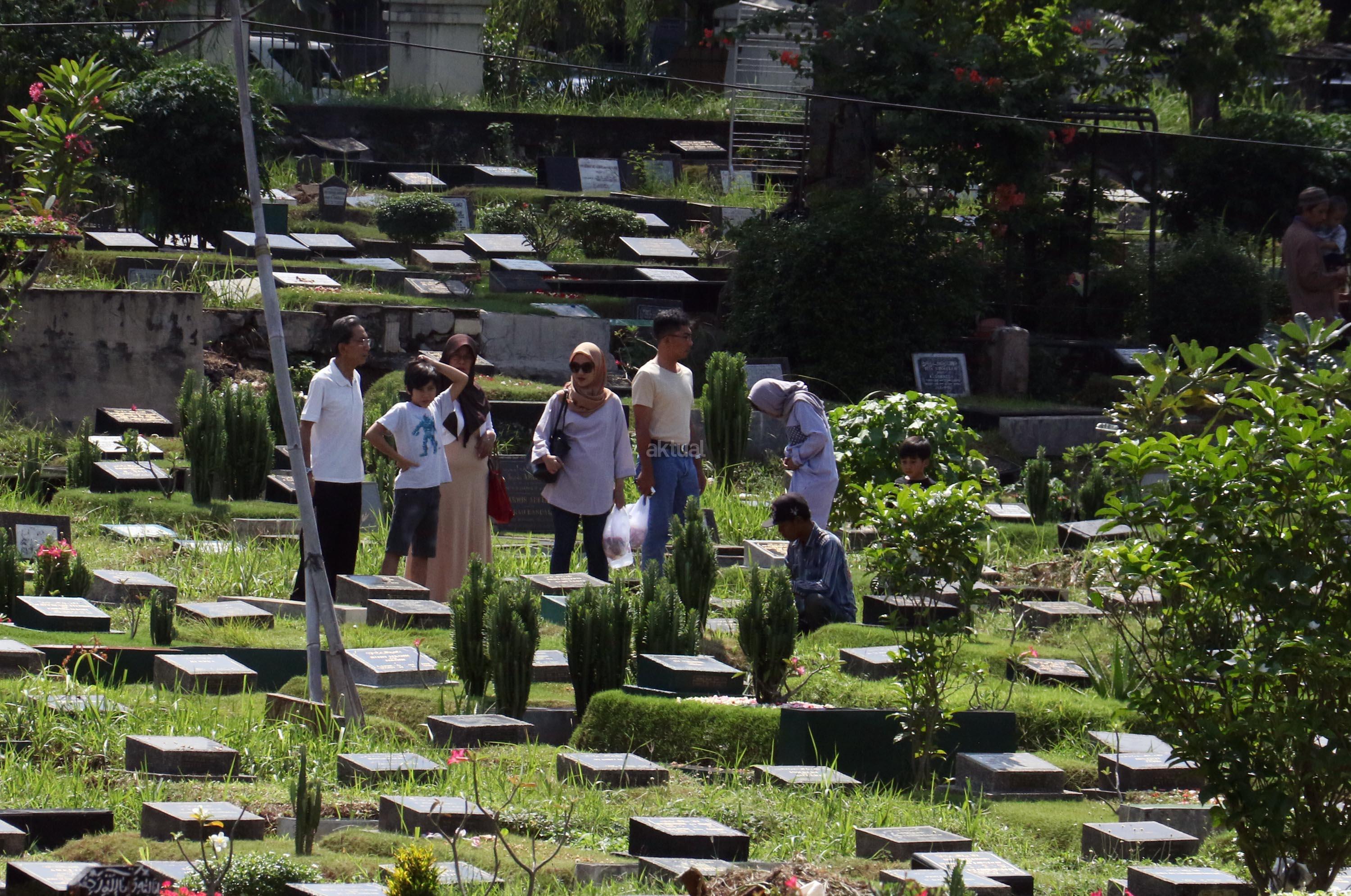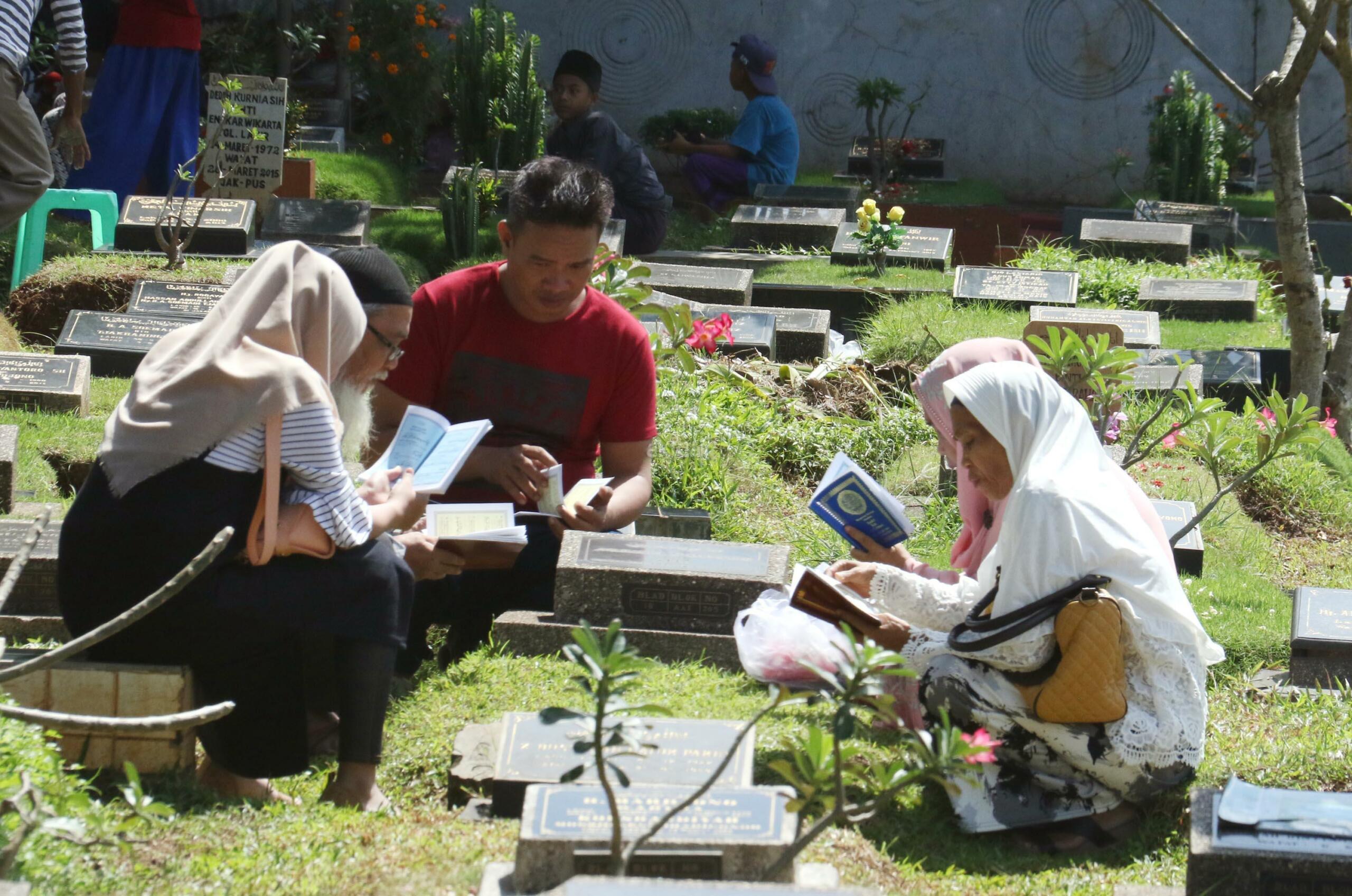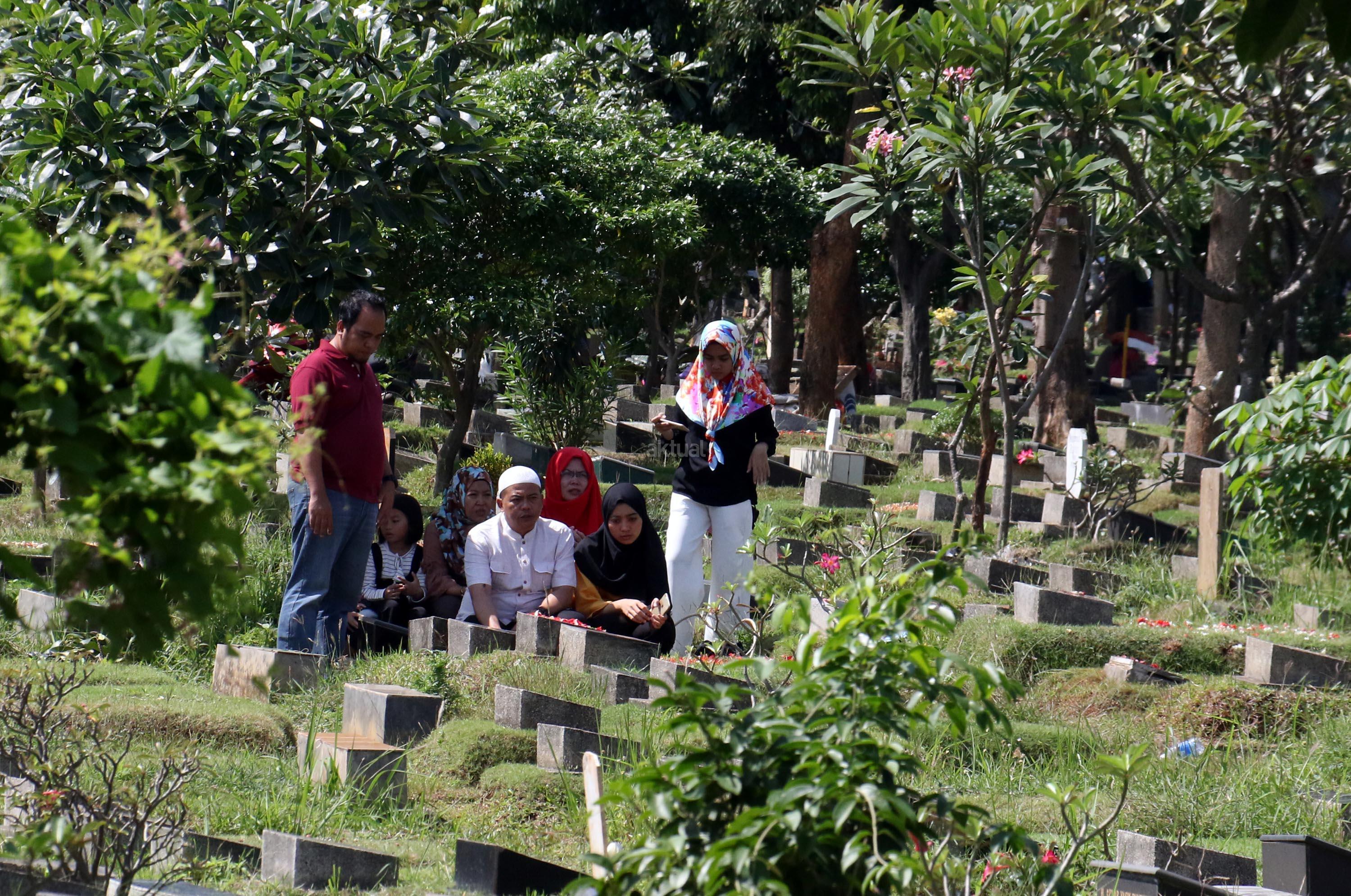 Umat Muslim berdoa saat ziarah kubur di Tempat Pemakaman Umum (TPU) Karet Bivak, Jakarta, Selasa (27/6/2017). Tradisi ziarah yang dilakukan umat muslim usai melakukan salat Idul Fitri adalah acara tahunan. AKTUAL/Munzir