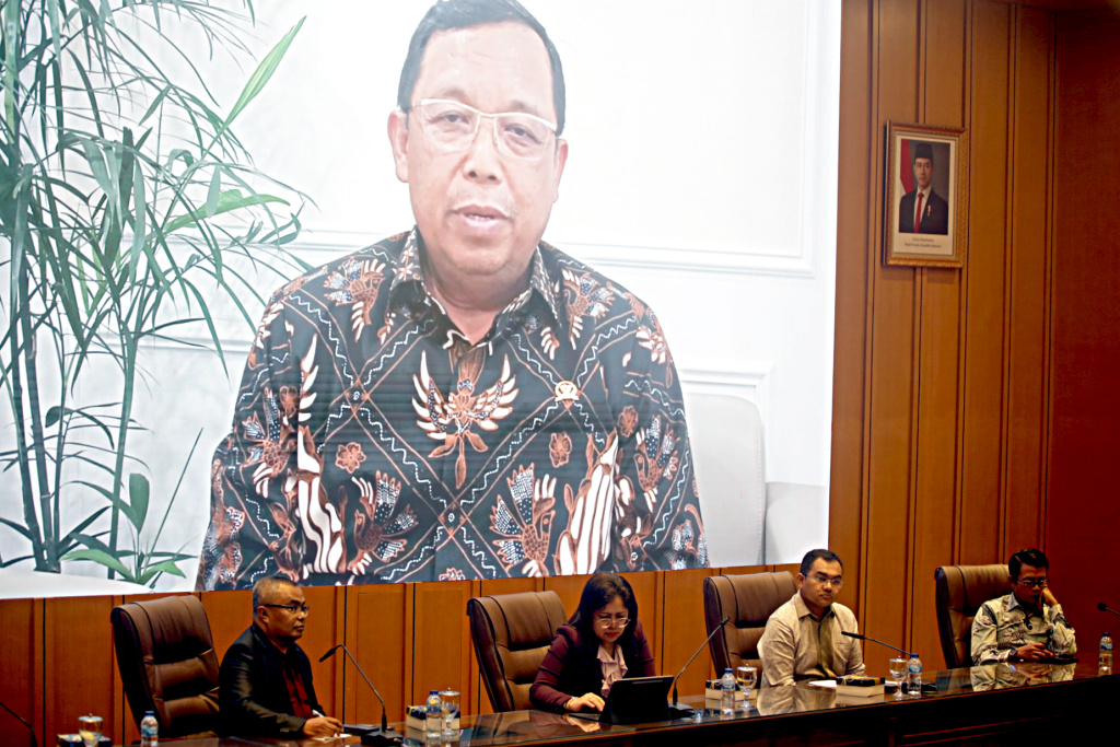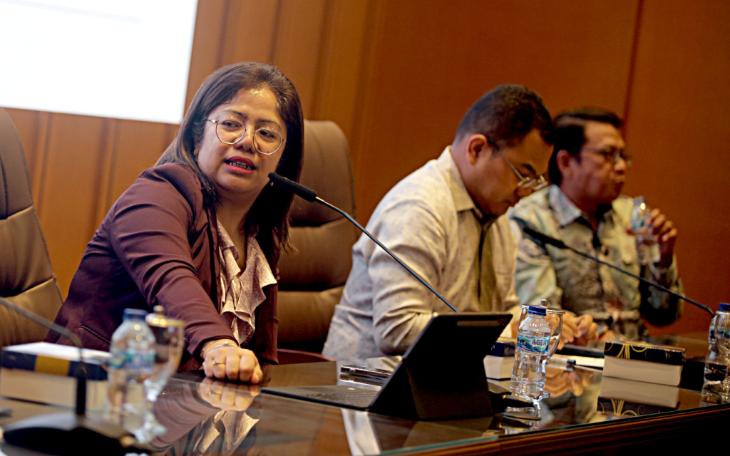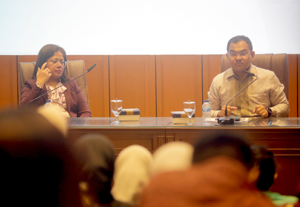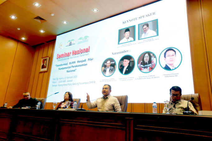 Ketua Komite II DPD Badikenita Br Sitepu dan Deputi SDM & TI Kementerian BUMN Tedi Barata dan Direktur Eksekutif Skala Survei Indonesia (SSI) Abdul Hakim menjadi pembicara dalam Seminar Nasional di Ruang Abdul Muis, Kompleks Parlemen Senayan, Jakarta, Kamis (13/2).