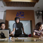 Peneliti Indonesia Corruption Watch (ICW) Lalola Easter (kanan), Aradila Caesar (kiri), serta Kurnia Ramadhana (tengah) memaparkan kajian dan hasil pemantauan data vonis tindak pidana korupsi (tipikor) mulai tingkat Pengadilan Tipikor, Pengadilan Tinggi, hingga tahap kasasi dan PK di Mahkamah Agung, di Jakarta, Sabtu (23/7). Hasil pemantauan perkara korupsi yang ditangani pengadilan pada semester pertama 2016 rata-rata vonis terdakwa korupsi hanya dua tahun satu bulan penjara, hal tersebut dianggap menguntungkan koruptor, kecenderungan atau tren hukuman dan tuntutan untuk pelaku korupsi semakin ringan dan mengurangi efek jera kepada koruptor. ANTARA FOTO/Yudhi Mahatma/ama/16