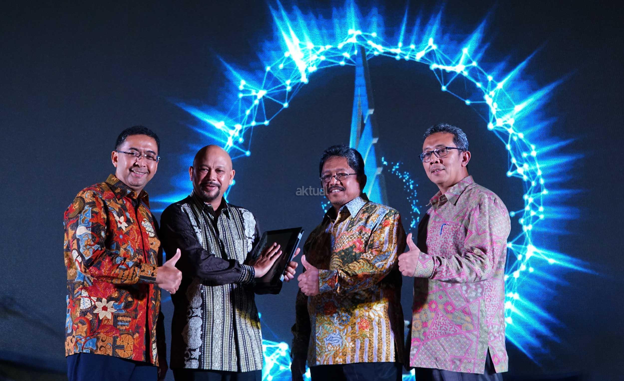 Komisaris Utama PT Asuransi Jiwa Tugu Mandiri Hammam Riza Yusuf (kedua dari kiri), Direktur Utama Tugu Mandiri Donny J Subakti (kedua dari kanan), Direktur Keuangan dan Investasi Daneth Fitrianto (kiri) dan Direktur Teknik dan pemasaran Khusnun Arief (kanan) saat meluncurkan Mobile Aplication SIPerdana (System Informasi Peserta Dana Pensiun) PT Asuransi Jiwa Tugu Mandiri di Jakarta, Rabu (28/3). Aplikasi tersebut merupakan sebagai satu-satunya system layanan informasi berbasis web di industry Dana Pensiun Indonesia yang mampu menyajikan informasi saldo dan status kepesertaan secara real time 24 jam sehari 7 hari seminggu, acara peluncuran bertepatan dengan perayaan Hari Ulang Tahun Dana Pensiun Lembaga Keuangan Tugu Mandiri yang ke-25. AKTUAL/Eko S Hilman