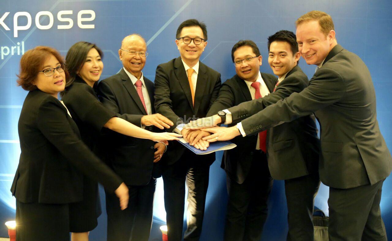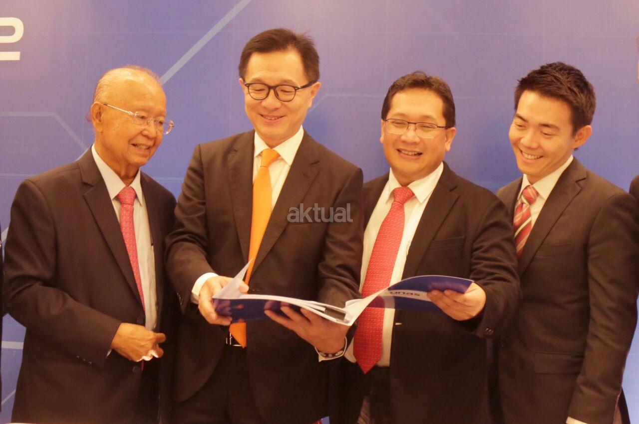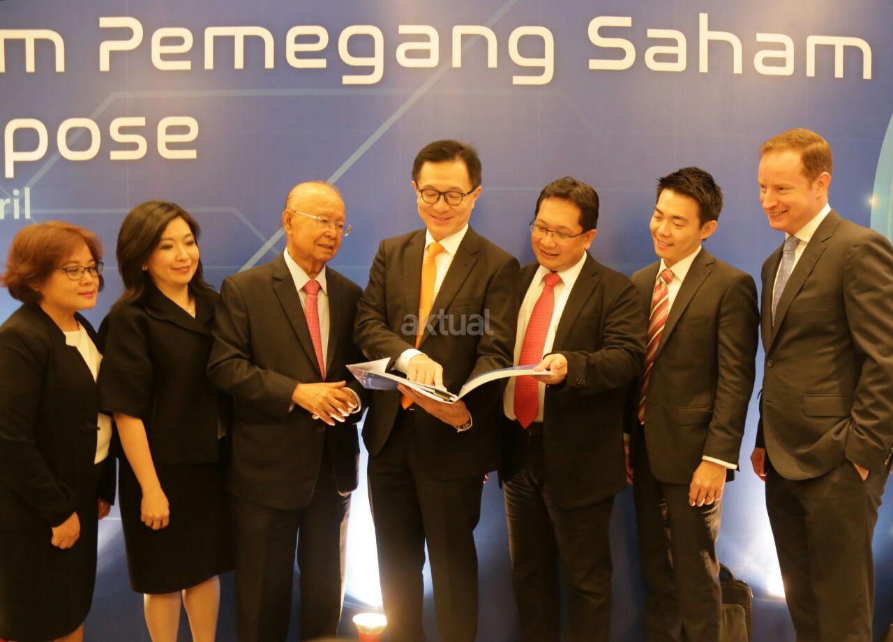 Direktur Utama PT Tunas Ridean Rico Adisurja Setiawan (tengah) berbincang dengan Direktur Tan Fony Salim, Direktur Tenny Febyana Halim, Wakil Komisaris Utama/Independen Cosmas Batubara, Direktur Nugraha Indra Permadi, Direktur Kent Teo dan Komisaris Haslam Preeston (kiri ke kanan) usai menggelar Rapat Umum Pemegang Saham Tahunan PT Tunas Ridean di Jakarta, Kamis (19/4). RUPST menyetujui penggunaan laba bersih Perseroan untuk tahun keuangan yang berakhir 31 Desember 2017 sebesar Rp 475.251.000.000 dibagikan sebagai dividen tunai sebesar Rp 139.500.000.000 atas sebesar Rp 25 per saham. AKTUAL/Tino Oktaviano