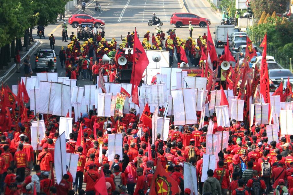 Tuntut Kesejahteraan Ribuan Buruh Long March Ke Istana