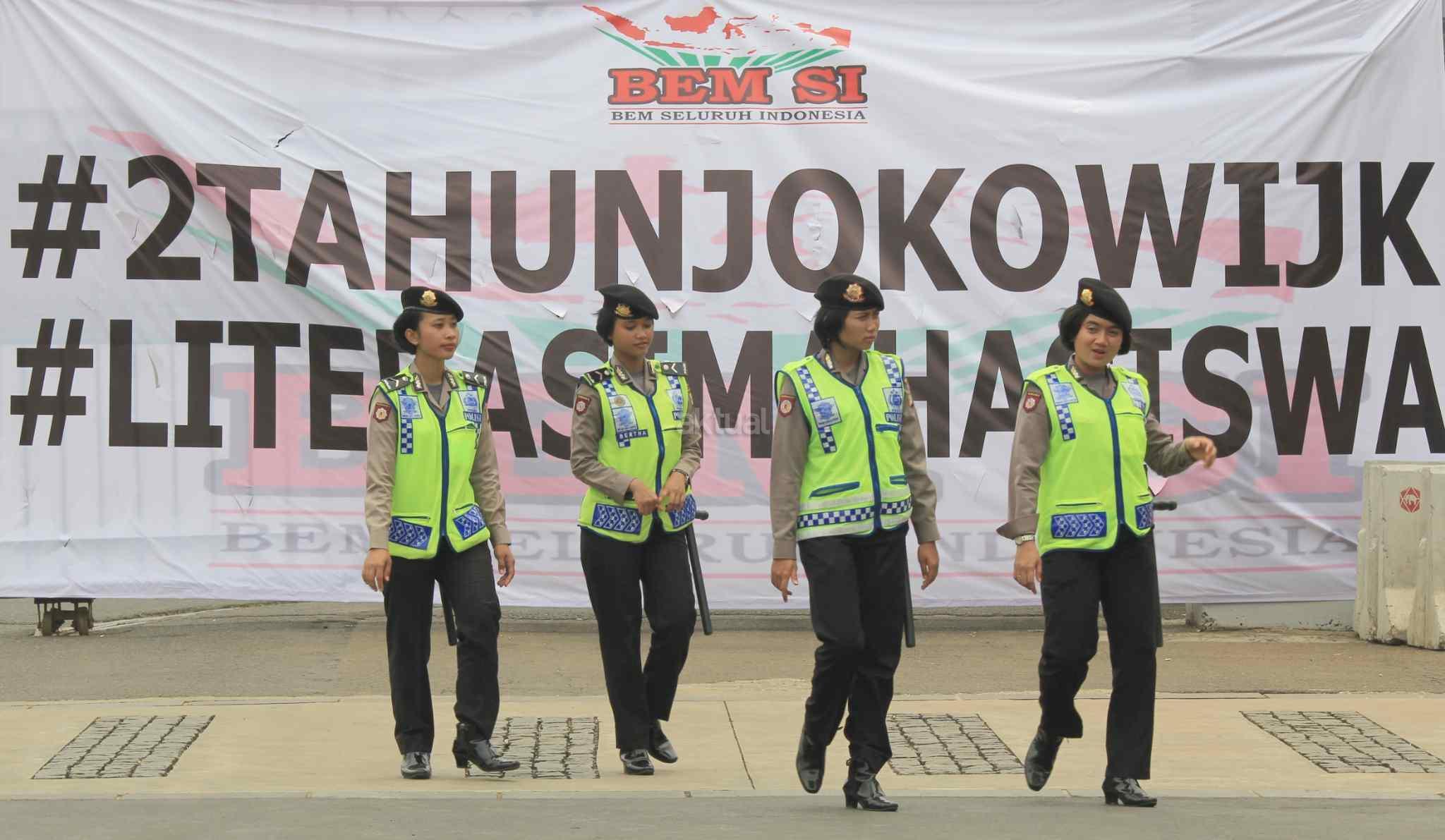 Polwan saat mengamankan jalannya aksi peringatan 2 tahun Jokowi-JK.