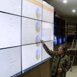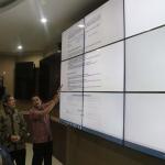 Komisioner KPU RI Hadar Gumay menunjukkan monitor raksasa di ruang IT KPU, Jakarta, Rabu (18/1/2017).KPU terus menguji coba aplikasi penghitungan suara hasil pemilihan umum khususnya untuk Pilkada serentak tahun ini. AKTUAL/Munzir