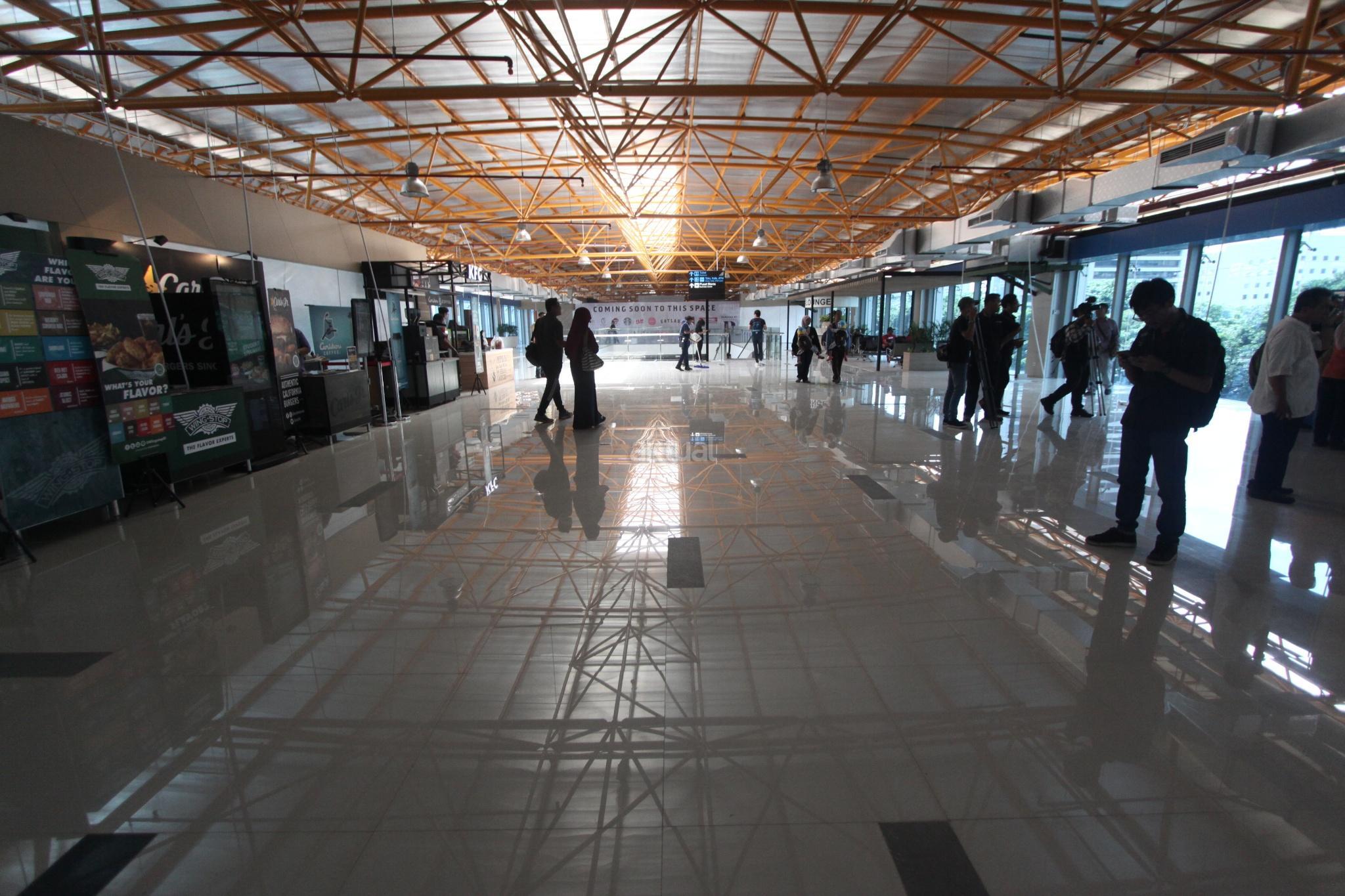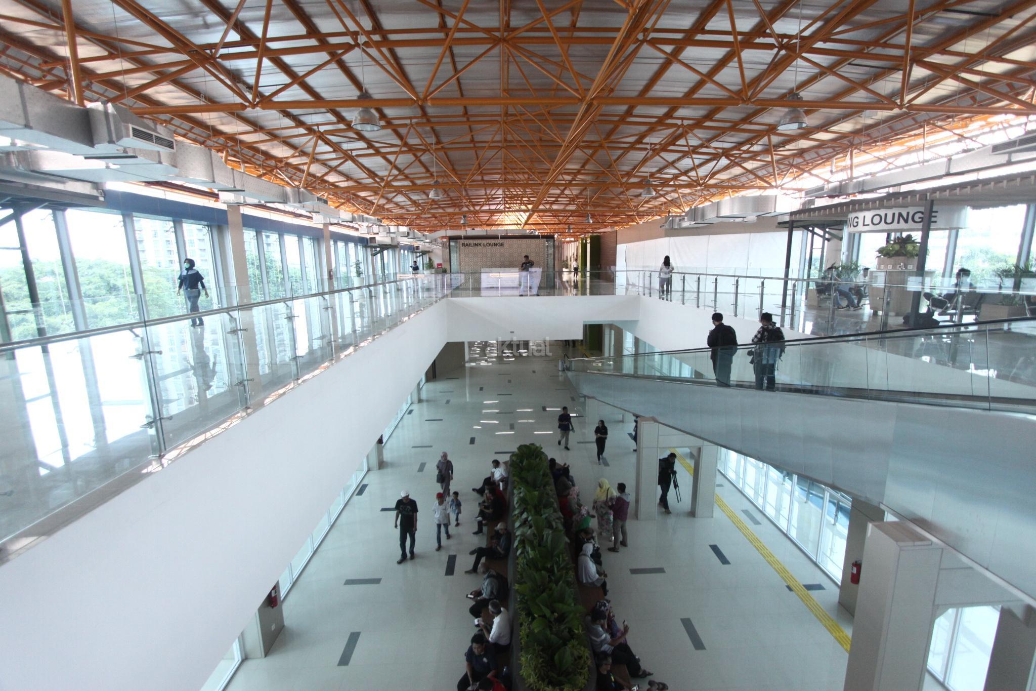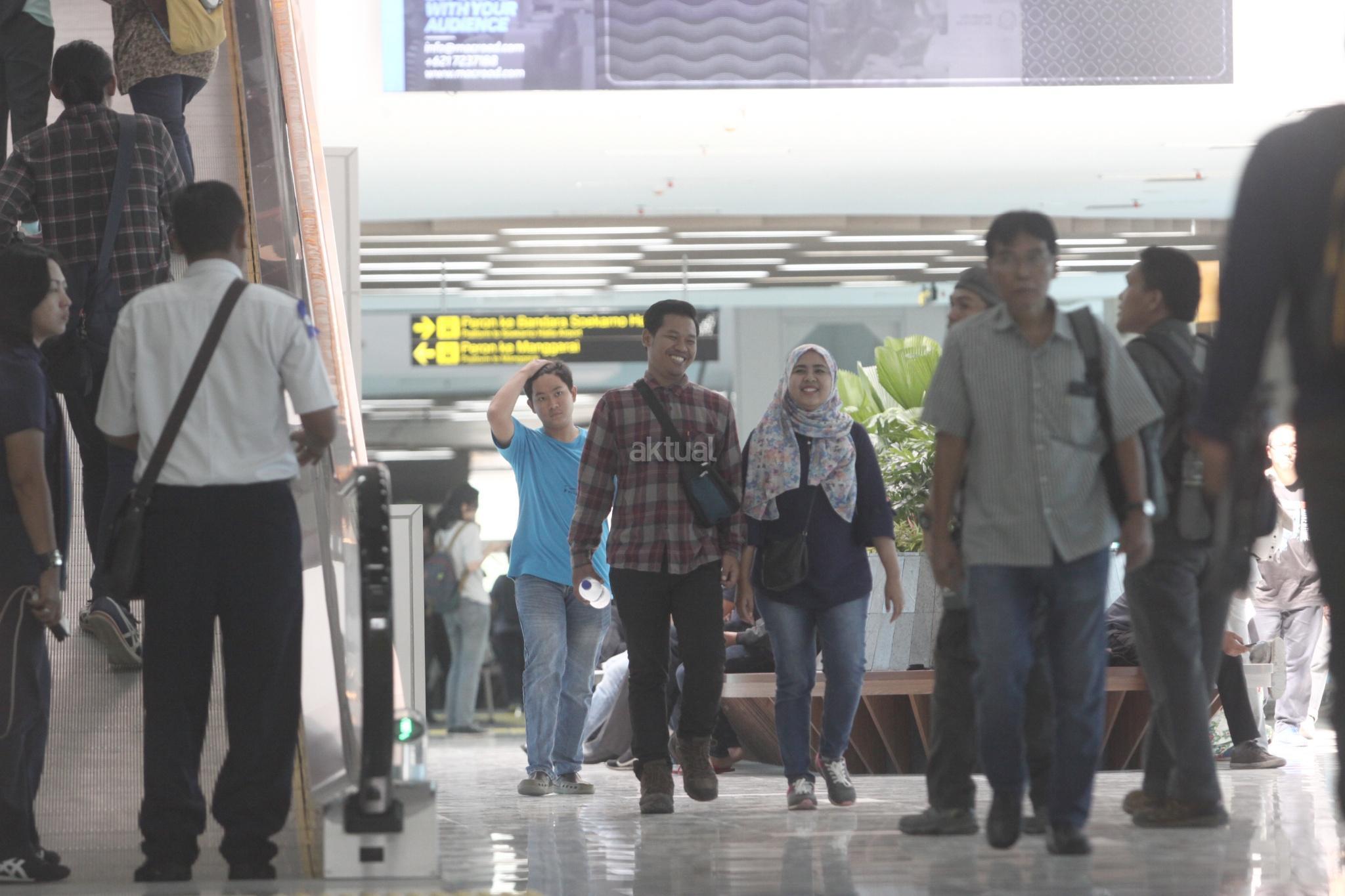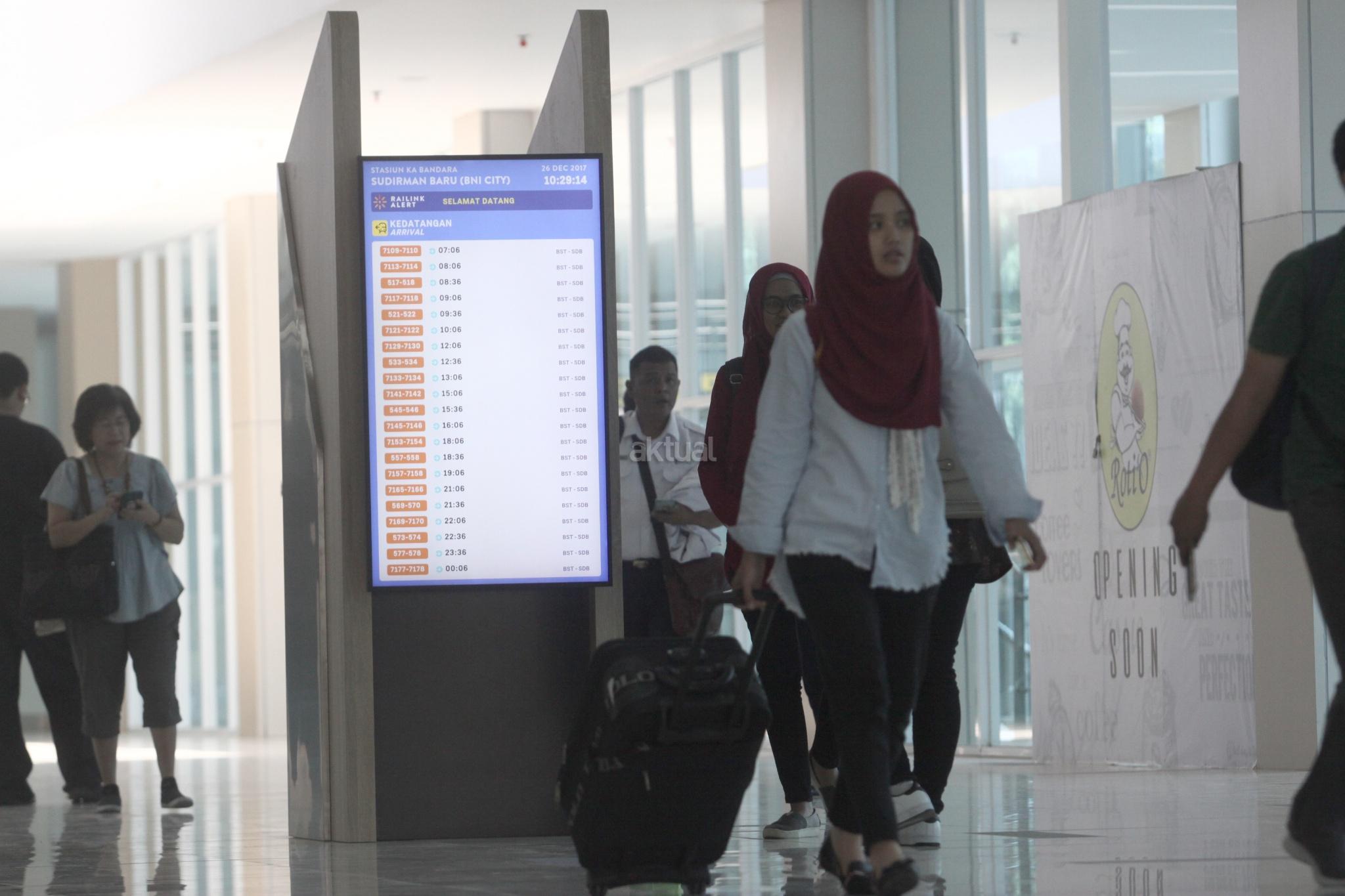 Para penumpang yang menuju lantai dua stasiun Sudirman Baru untuk membeli tiket dengan tarif Rp 30.000 berlaku mulai hari ini sampai dengan tanggal 1 Januari 2018 bagi masyarakat umum. AKTUAL/Tino Oktaviano