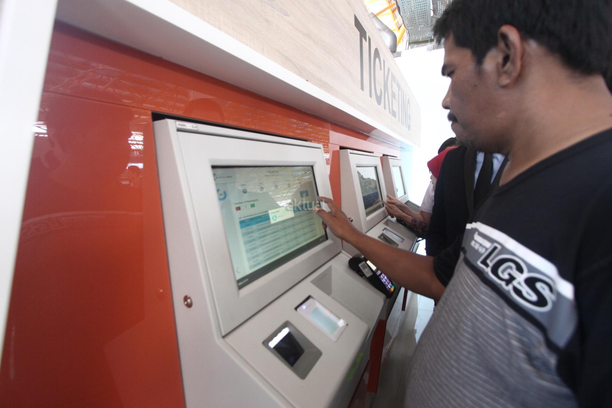 Tempat pembelian tiket yang berada di lantai dua stasiun Sudirman Baru, Jakarta yang hari ini mulai diuji coba untuk masyarakat umum dengan tujuan Bandara Soekarno-Hatta. AKTUAL/Tino Oktaviano