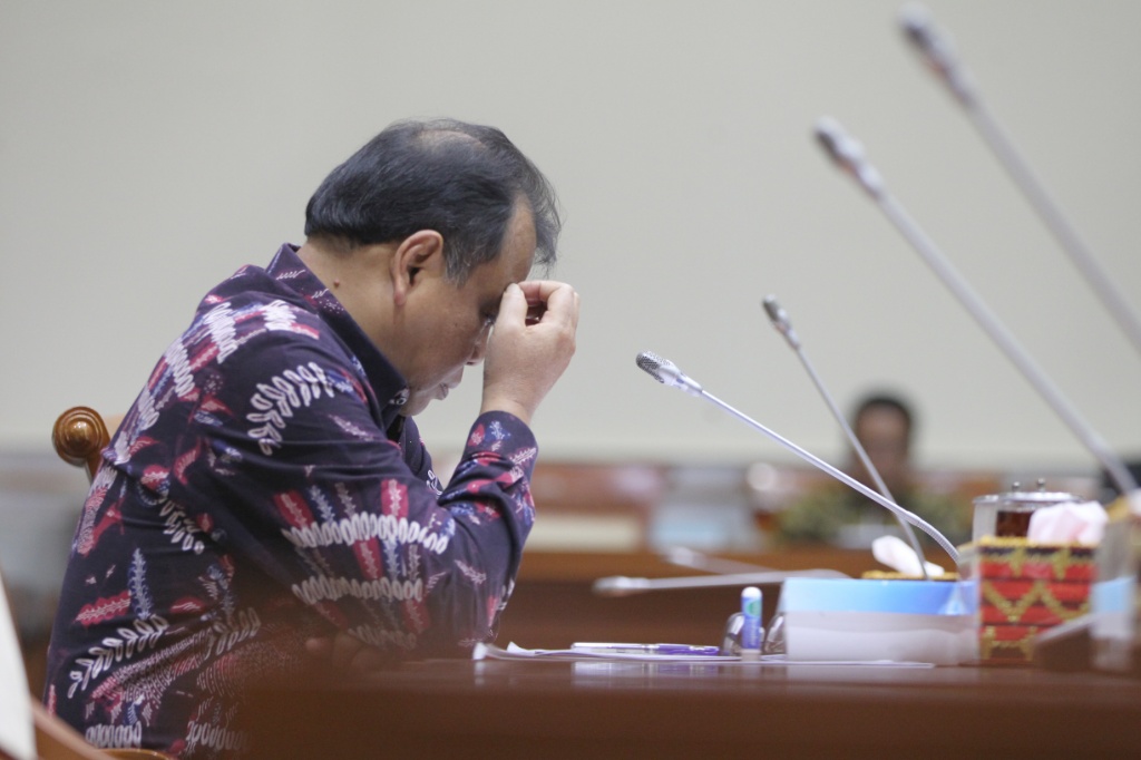 Ketua Mahkamah Konstitusi (MK) Arief Hidayat mengikuti uji kelayakan dan kepatutan hakim MK di ruang rapat Komisi III, gedung Parlemen, Senayan, Jakarta, Rabu (6/12/2017). Salah satu hakim MK yang diuji kelayakan dan kepatutannya ialah Ketua MK Arief Hidayat, Diketahui, Arief saat ini tengah menyidangkan uji materi terkait keabsahan Hak Angket Komisi Pemberantasan Korupsi (KPK). AKTUAL/Tino Oktaviano