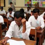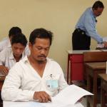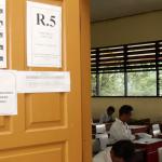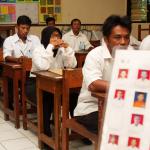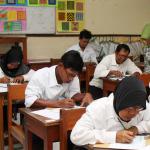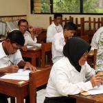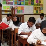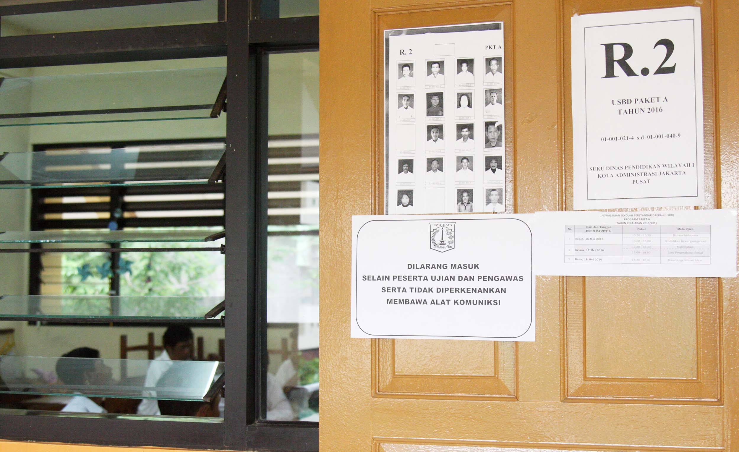 Peserta ujian mengikuti Ujian penyetaraan Paket A di Jakarta, Senin (16/05/2016). Ujian kejar Paket A digelar di Jakarta muali hari ini, Ujian Kejar Paket A adalah ujian penyetaraan dengan Sekolah Dasar (SD) dan para peserta ujian akan melaksanakan ujian hingga tanggal 18 Mei 2016.