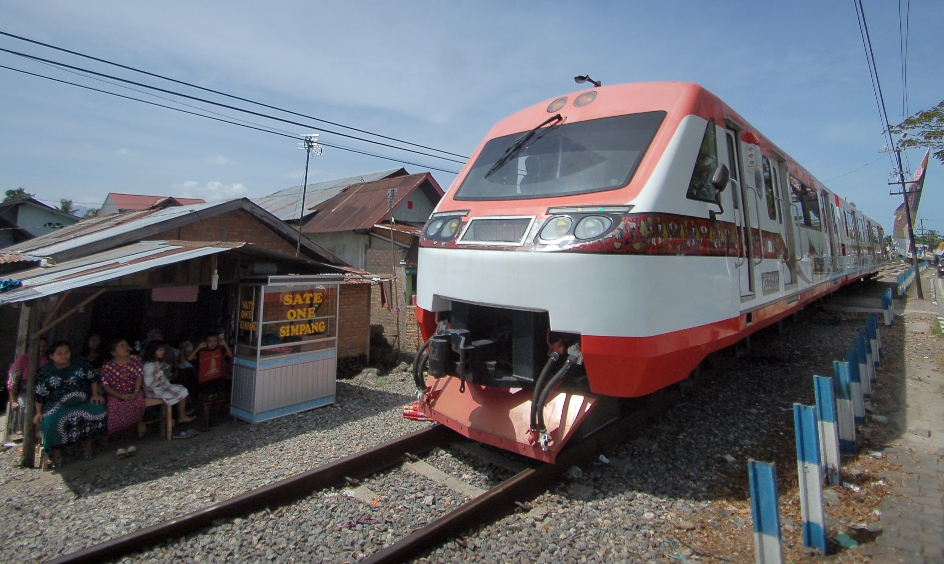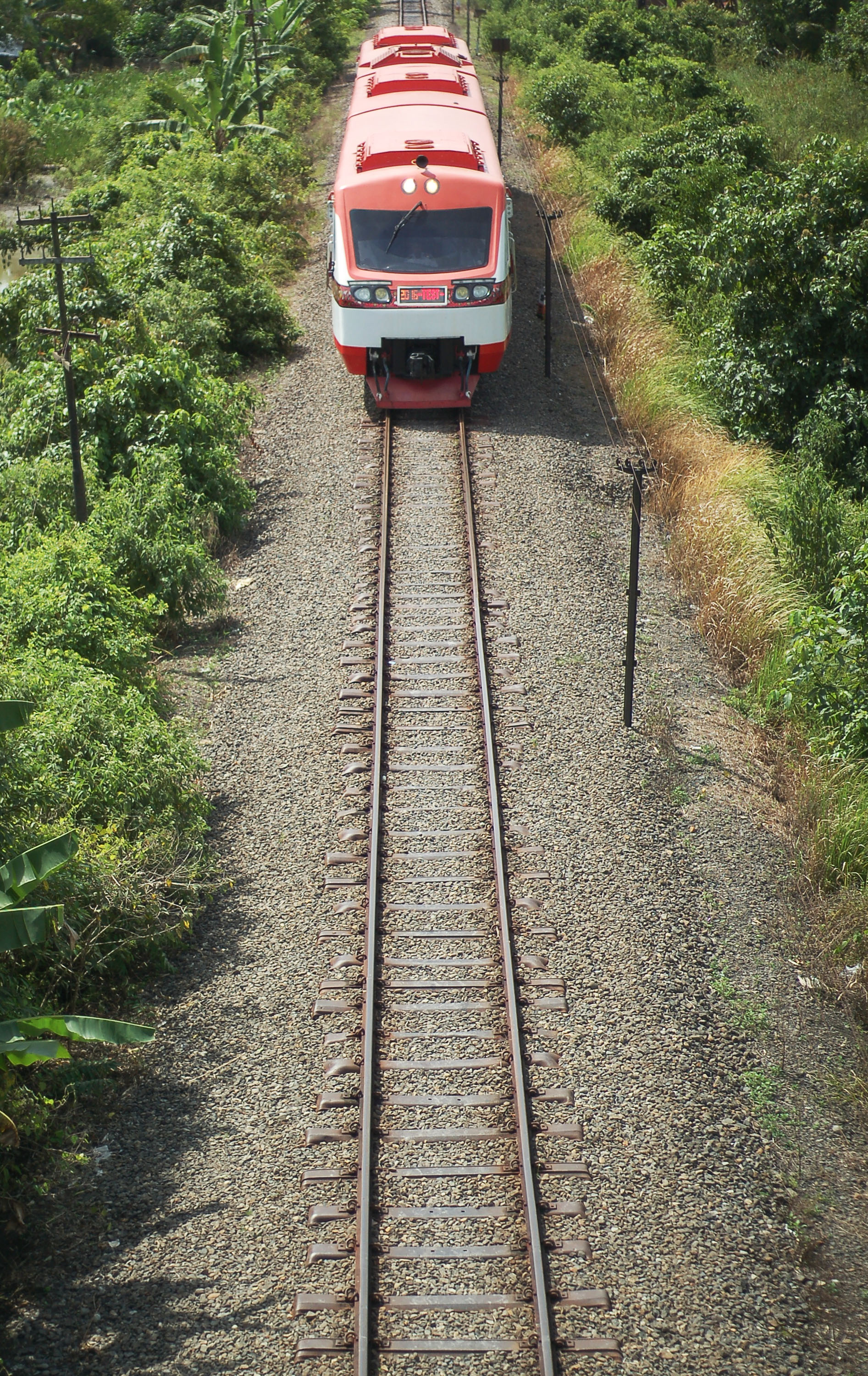 Railbus melakukan ujicoba rute Padang-Kayutanam, saat melewati kawasan Duku, Kabupaten Padangpariaman, Sumatra Barat, Selasa (12/7). PT Kereta Api Indonesia (Persero) Divre II Sumbar melakukan ujicoba railbus untuk rute transit Lubuk Alung-Kayutanam yang rencana akan dioperasikan pada Agustus 2016 mendatang. Uji rute pertama tidak sampai tujuan karena atap railbus tidak bisa melewati jembatan di kawasan Parik Malintang, Padangpariaman. ANTARA FOTO/Iggoy el Fitra/kye/16