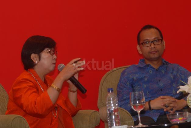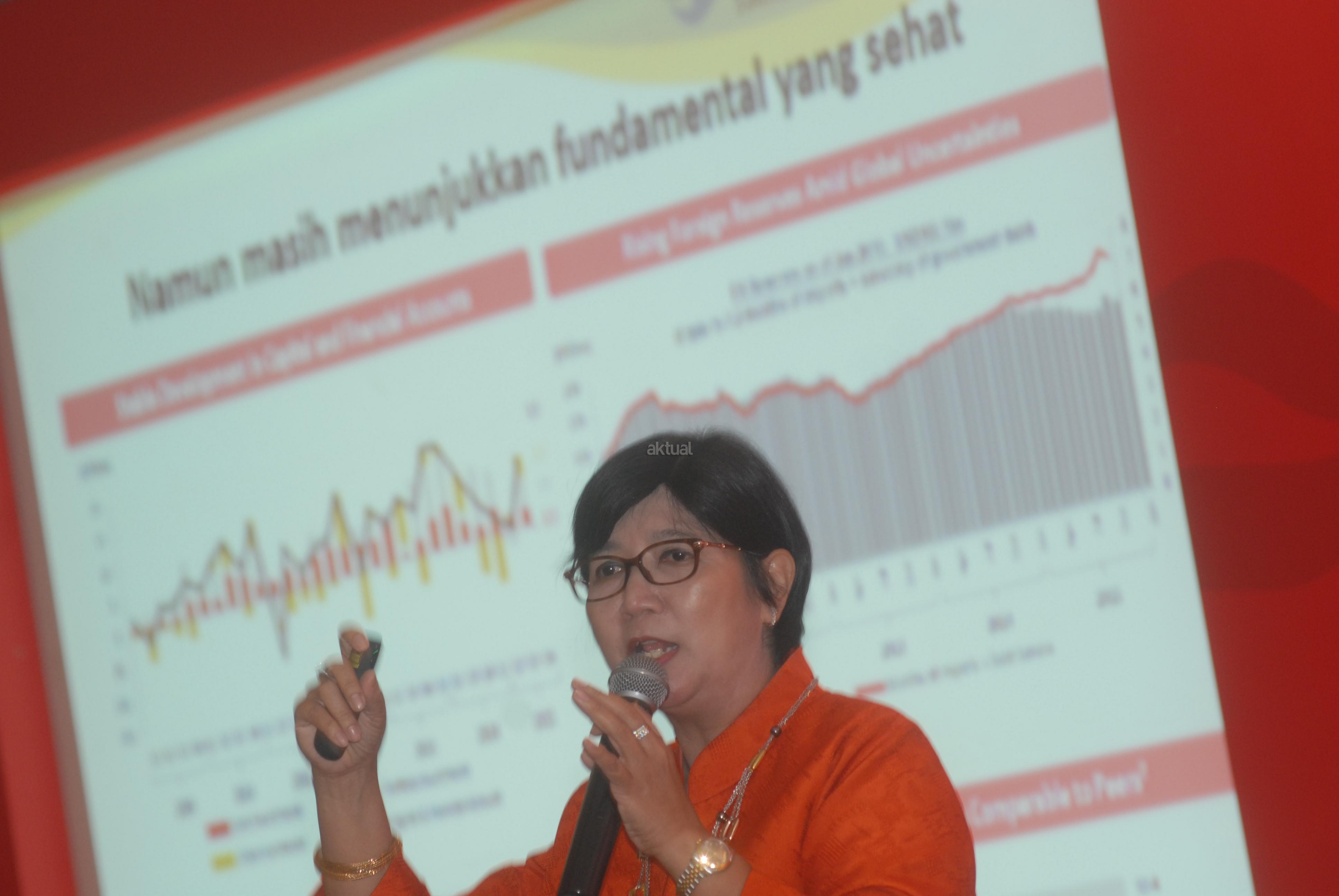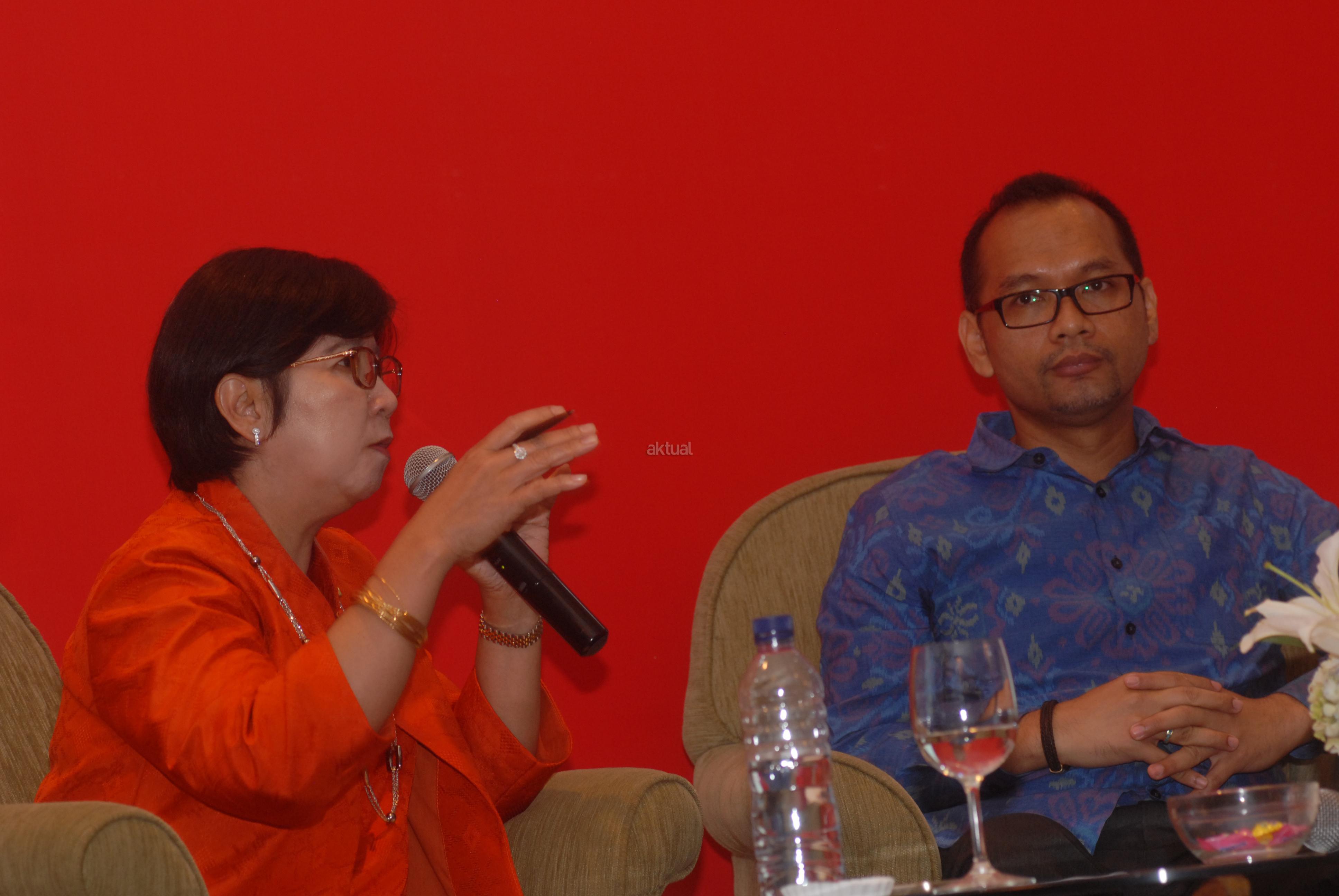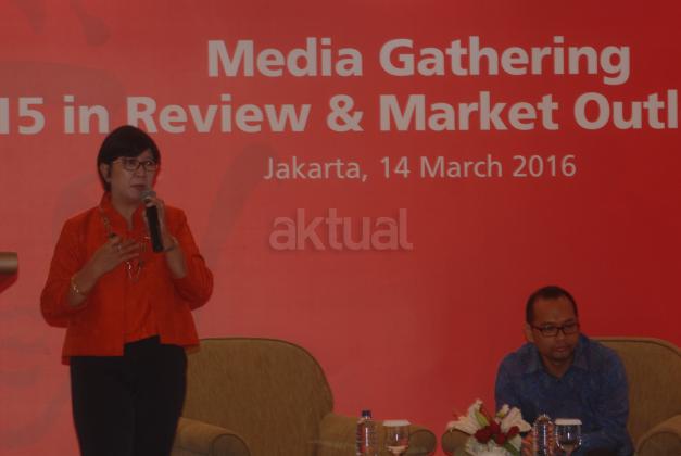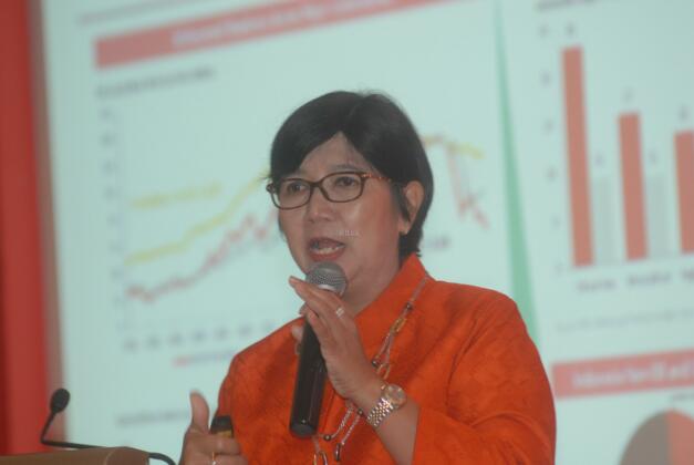 Anggota Dewan Komisioner Lembaga Penjamin Simpanan Indonesia, Destry Damayanti (kiri) didampingi Presiden Direktur Eastpring Investments Indonesia, Riki Frindos saat menyampaikan paparan ekonomi bertema "Ulasan Pasar 2015 dan Prospek Pasar 2016 di Jakarta, Senin (14/3). Menurutnya, inflasi tahunan di bulan Februari mencapai angka 4,4 persen year on year (yoy) atau deflasi sebesar 0,09 persen month to month (mtm). Inflasi ini tidak hanya dipengaruhi oleh volatile food atau makanan, namun juga kesehatan yang menjadi penyumbang inflasi setelah makanan. Aktual.com/Eko S Hilman