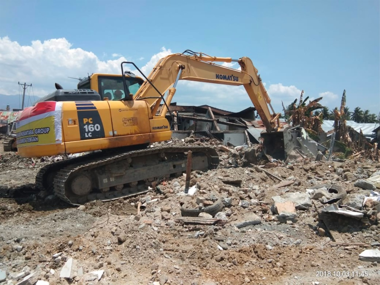 Beberapa alat berat dari United Tractors Group membantu evakuasi dan pemulihan pasca gempa dan tsunami di Palu dan Donggala Pekan lalu. Dalam penanganan bencana gempa dan tsunami di Palu dan Donggala, United Tractors Group bergerak cepat mengerahkan alat berat sekaligus menyalurkan bantuan bagi korban bencana. UT Group memulai pada tahap evakuasi dengan mendatangkan sejumlah alat berat berupa 4 unit excavator, 1 unit bulldozer dan 1 unit lowboy yang beroperasi di Kelurahan Balaroa, Palu, Sulawesi Tengah. AKTUAL/Dok United Tractors