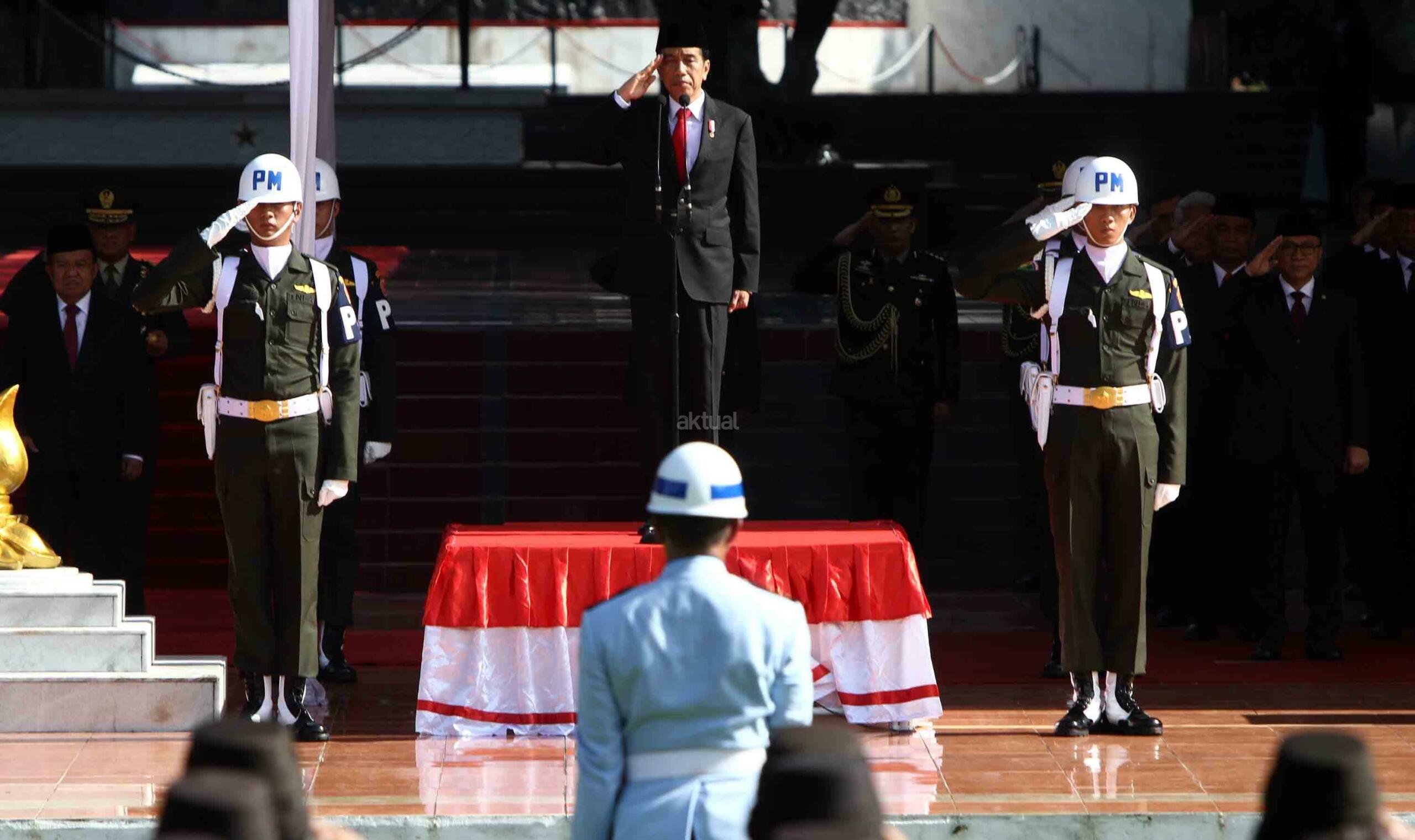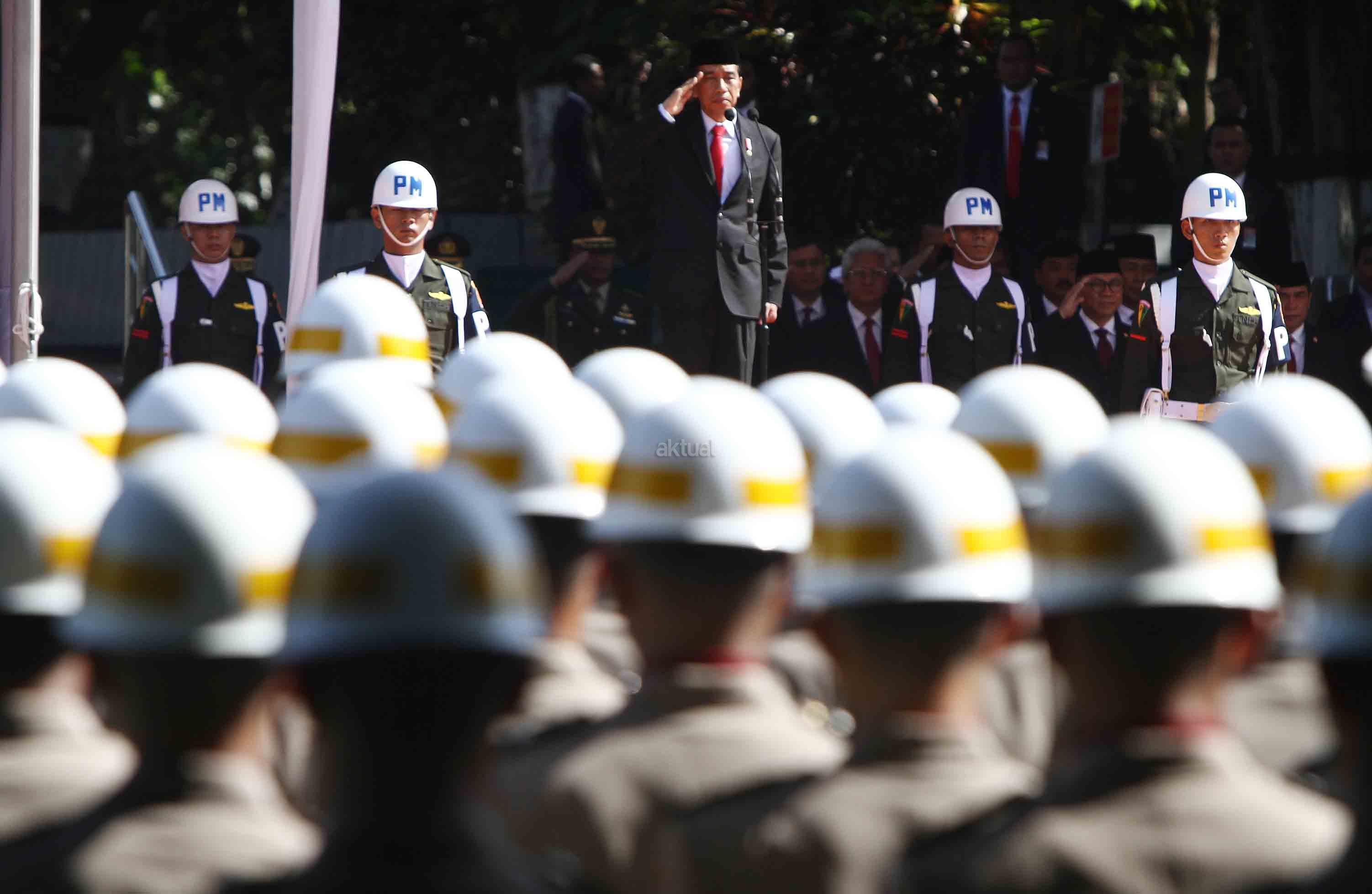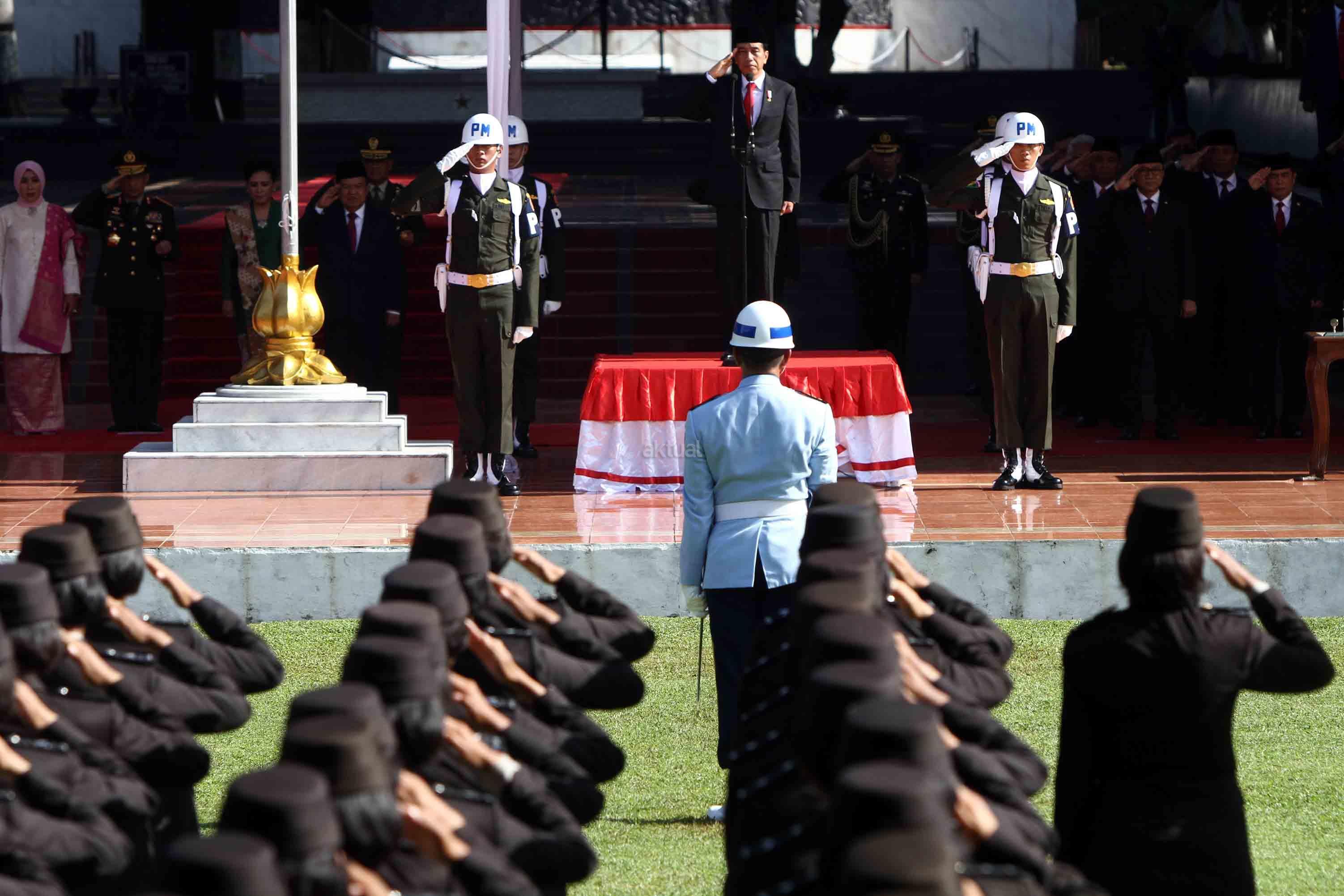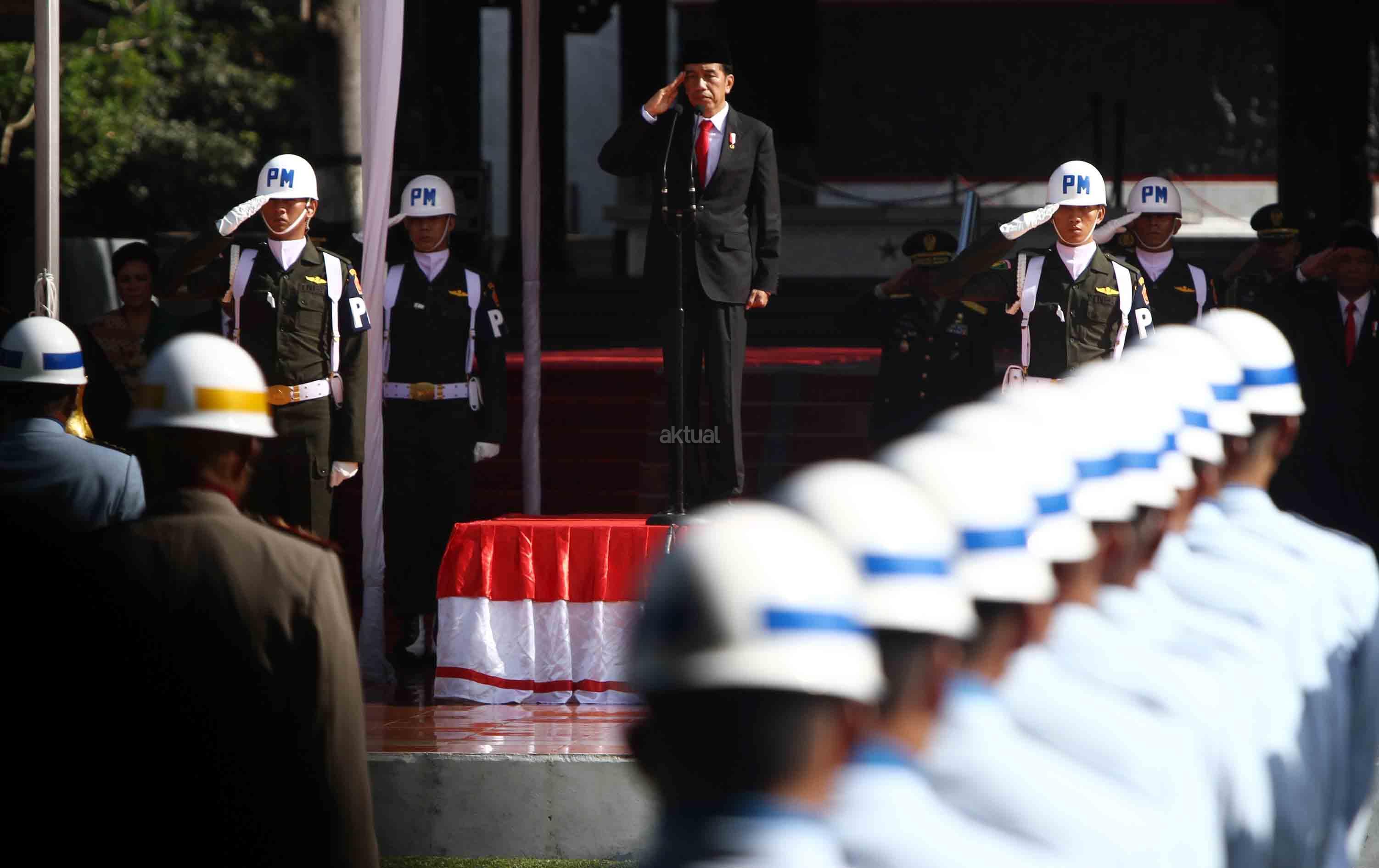Presiden Joko Widodo memimpin upacara peringatan Hari Kesaktian Pancasila. Upacara digelar di Monumen Pancasila Sakti, Lubang Buaya, Jakarta, Sabtu (1/10/2016). Hadir dalam upacara Peringatan Hari Kesaktian Pancasila tersebut, Ketua MPR Zulkifli Hasan, Ketua DPR Ade Komarudin dan jajaran pimpinan DPD serta menteri Kabinet Kerja. Aktual/Tino Oktaviano