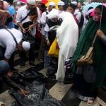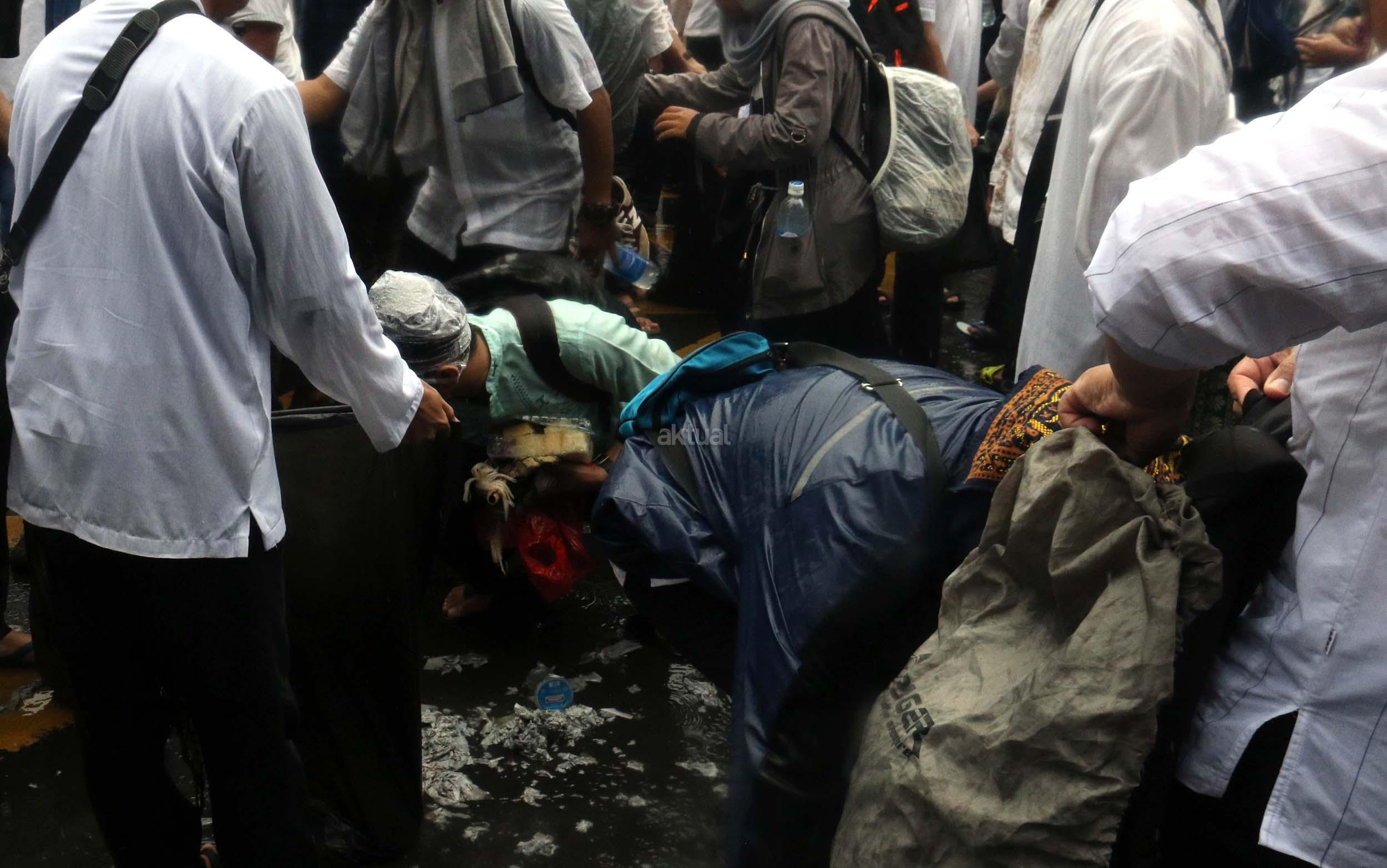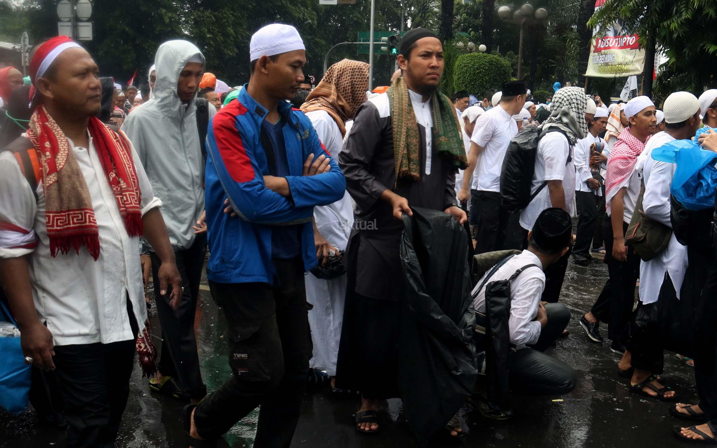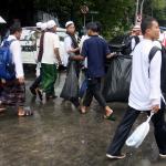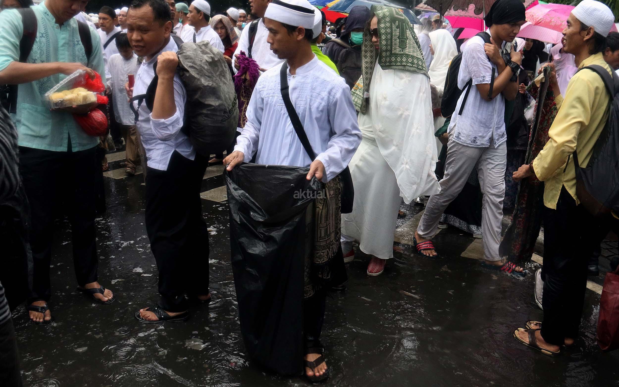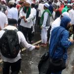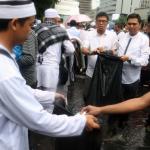 Para peserta aksi mengumpulkan sampah usai melakukan shalat Jumat berjama’ah di Jalan MH Thamrin, Jakarta, Jumat (2/12/2016).Jutaan pendemo berbondong-bondong berjalan menuju lapangan silang Monas untuk melakukan doa dan salat Jumat bersama dengan mengusung tema “Tangkap Ahok Si Penista Al Quran. AKTUAL/Munzir