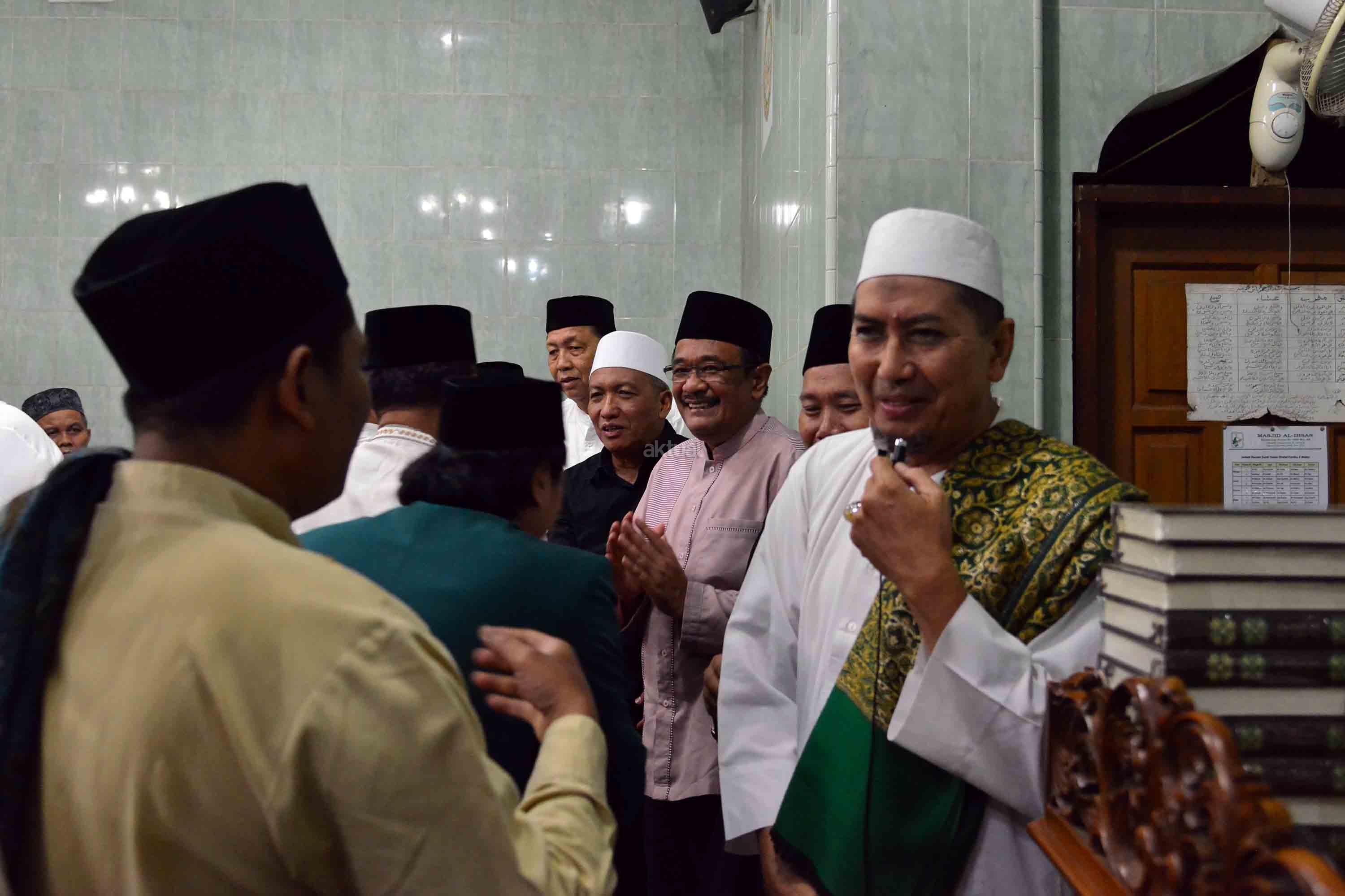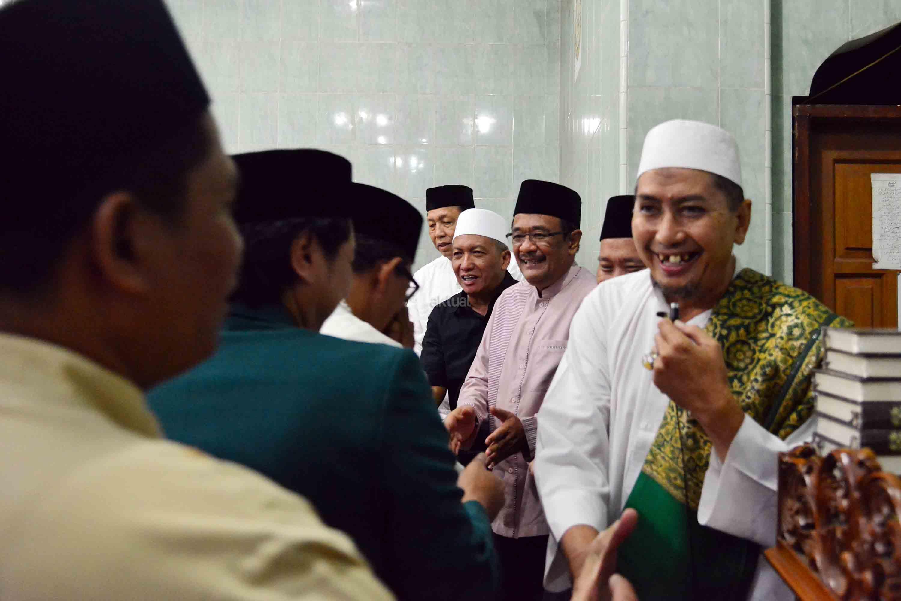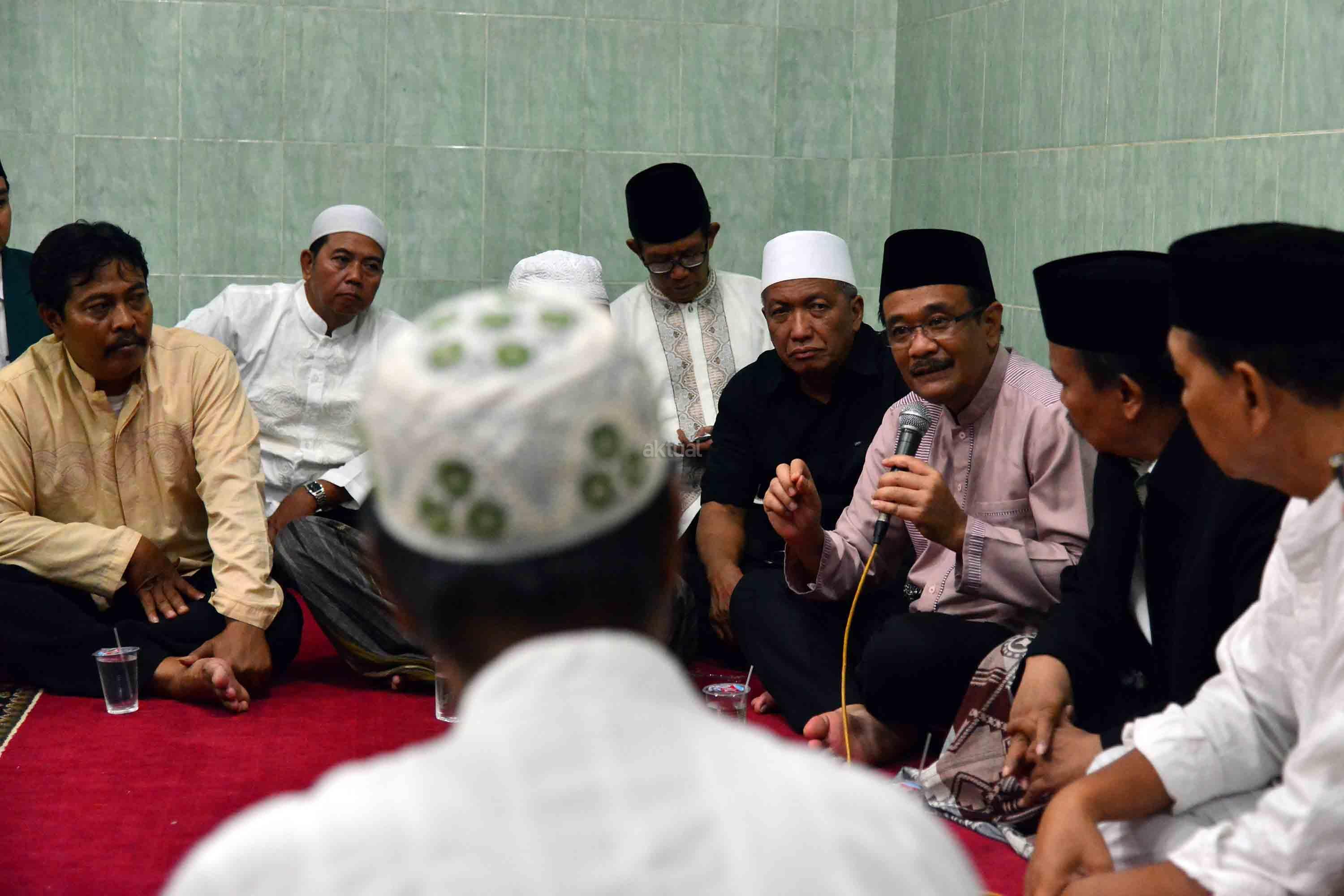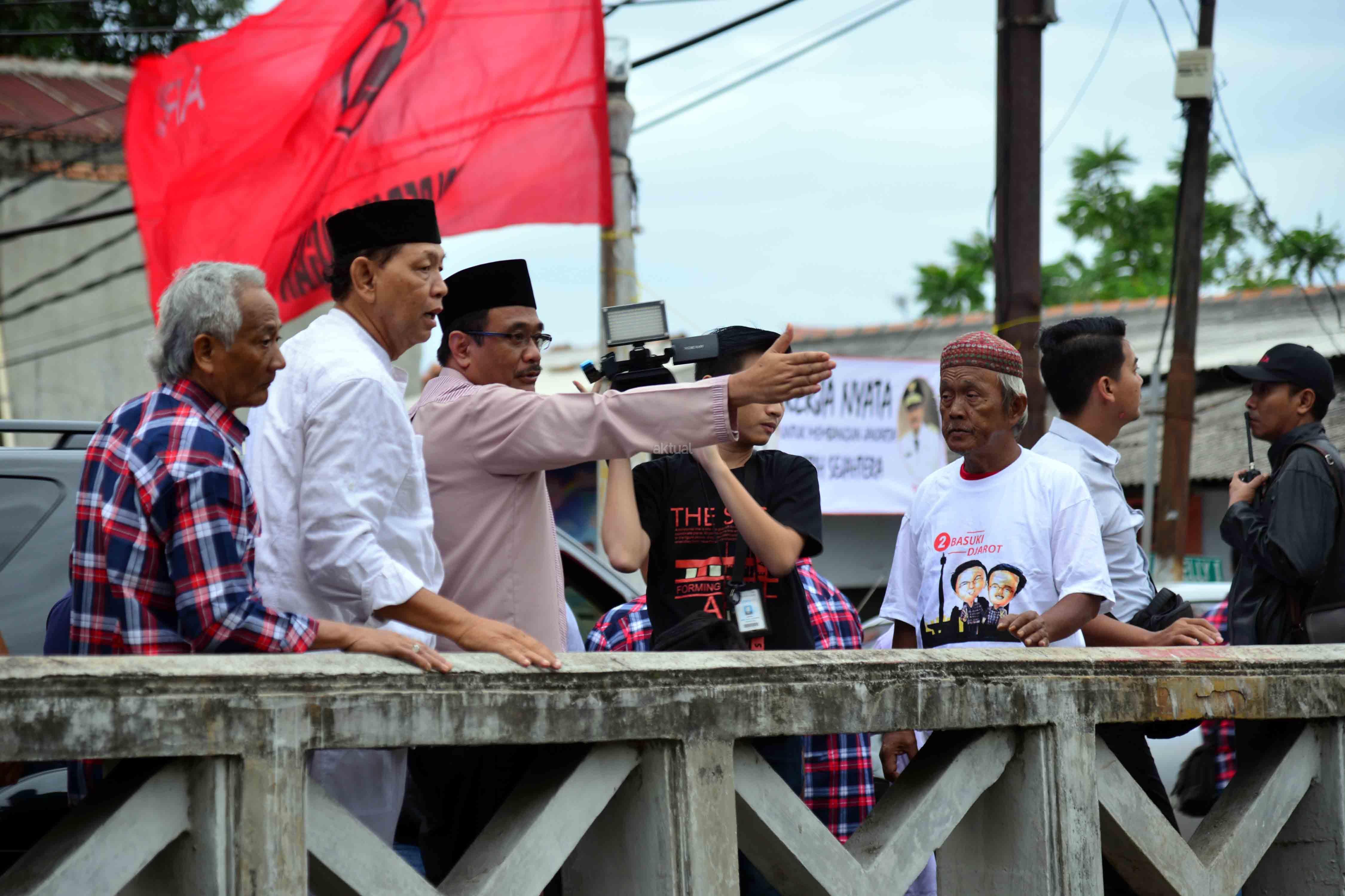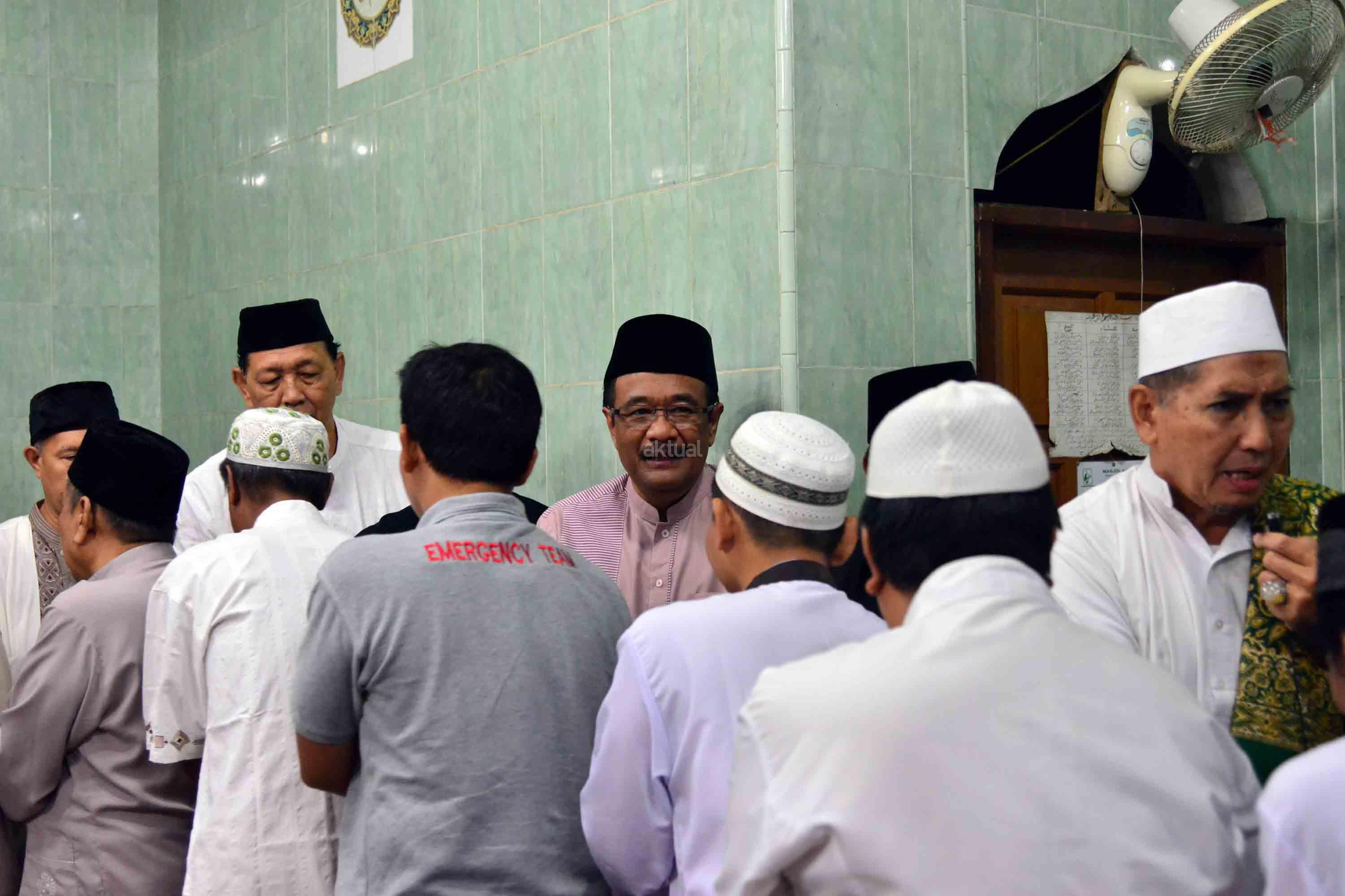 Calon Wakil Gubernur DKI Jakarta Nomor Urut Dua Djarot Saiful Hidayat bersilaturahmi dengan warga usai melakukan salat subuh berjamaan di mesjid Al Iksan, Cijantung, Jakarta, Sabtu (14/1). Djarot menyempatkan diri blusukan ke pasar kaget Belly dan menyerap aspirasi warga yang meminta agar melakukan penataan dikawasan tersebut agar tertata lebih rapih. AKTUAL/Tino OKtaviano