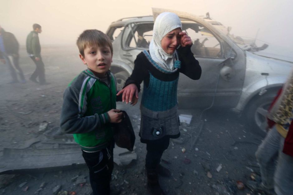 Jakarta, Aktual.com — Video dan foto yang diambil dari perang saudara Suriah ‘menyayat hati’ Netizen dunia dan umat Islam. Terekam dalam sebuah kamera, sepasang anak-anak berjalan dari puing-puing sebuah serangan udara sambil berteriak histeris sambil menangis mencari ibu mereka.