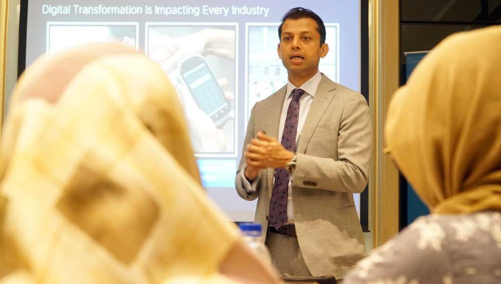Vice Presiden And Managing Director SEAK, Sanjay K Deshmukh saat memberikan penjelasan dan pemaparan terkait sejumlah inovasi mutakhir pada media briefing di Jakarta, Selasa (15/10).