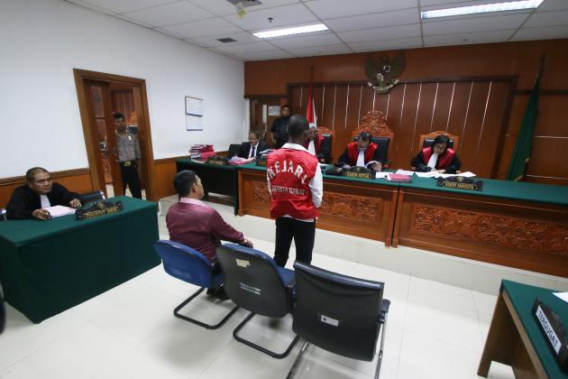 Terdakwa kasus narkotika sabu seberat 6,3 kg Arinze Petrus Eneh menjalani sidang vonis di PN Jakarta Barat, Jakarta, Rabu (18/5). Majelis Hakim Pengadilan Negeri Jakarta Barat menjatuhkan vonis 20 tahun penjara kepada Arinze Petrus yang sebelumnya dituntut hukuman mati oleh Jaksa Penuntut Umum. ANTARA FOTO/Rivan Awal Lingga/kye/16