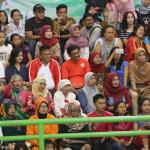 Wakil Gubernur DKI Jakarta Djarot Saiful Hidayat didampingi Ketua DPRD DKI Jakarta Prasetyo Edi Marsudi memberikak semangak kepada tim Basket Putri usai bertanding di GOR Cikutra, Bandung, Jawa Barat, Selasa (27/9). Tim Basket Putri DKI Jakarta berhasil memenangkan pertandingan melawan tim Jawa Barat dalam rangkaian PON XIX Jawa Barat. AKTUAL/TINO OKTAVIANO