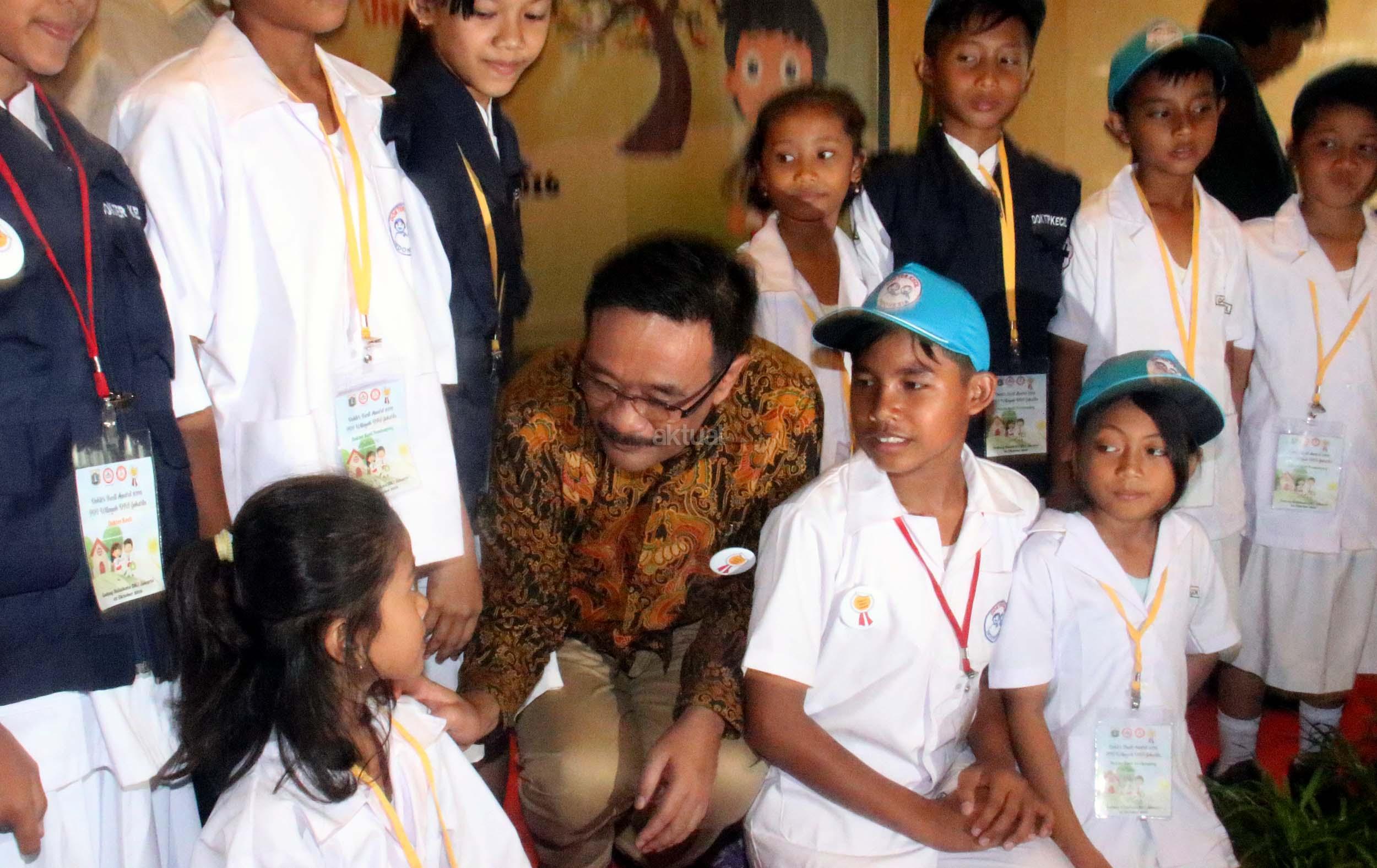 Wakil Gubernur DKI Jakarta Djarot Saiful Hidayat berbincang bersama para dokter kecil se-DKI saat penganugerahan Dokter Kecil Award 2016 di Balai Kota DKI, Jakarta, Minggu (2/10/2016). Dalam sambutannya Djarot mengharapkan para dokter cilik menjadi pelopor penggerak hidup sehat, baik di sekolah, rumah maupun di lingkungannya masing-masing. Aktual/Munzir