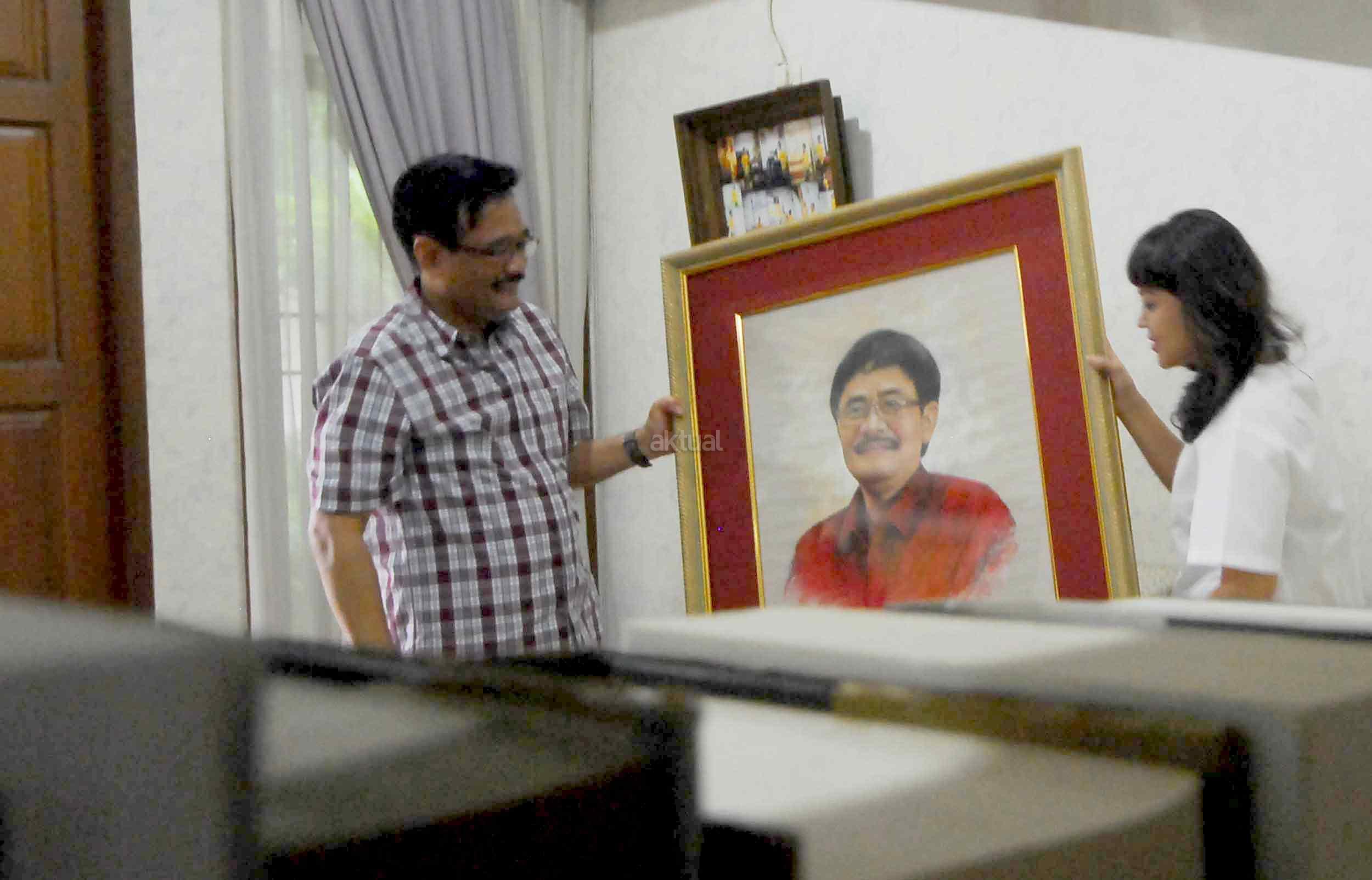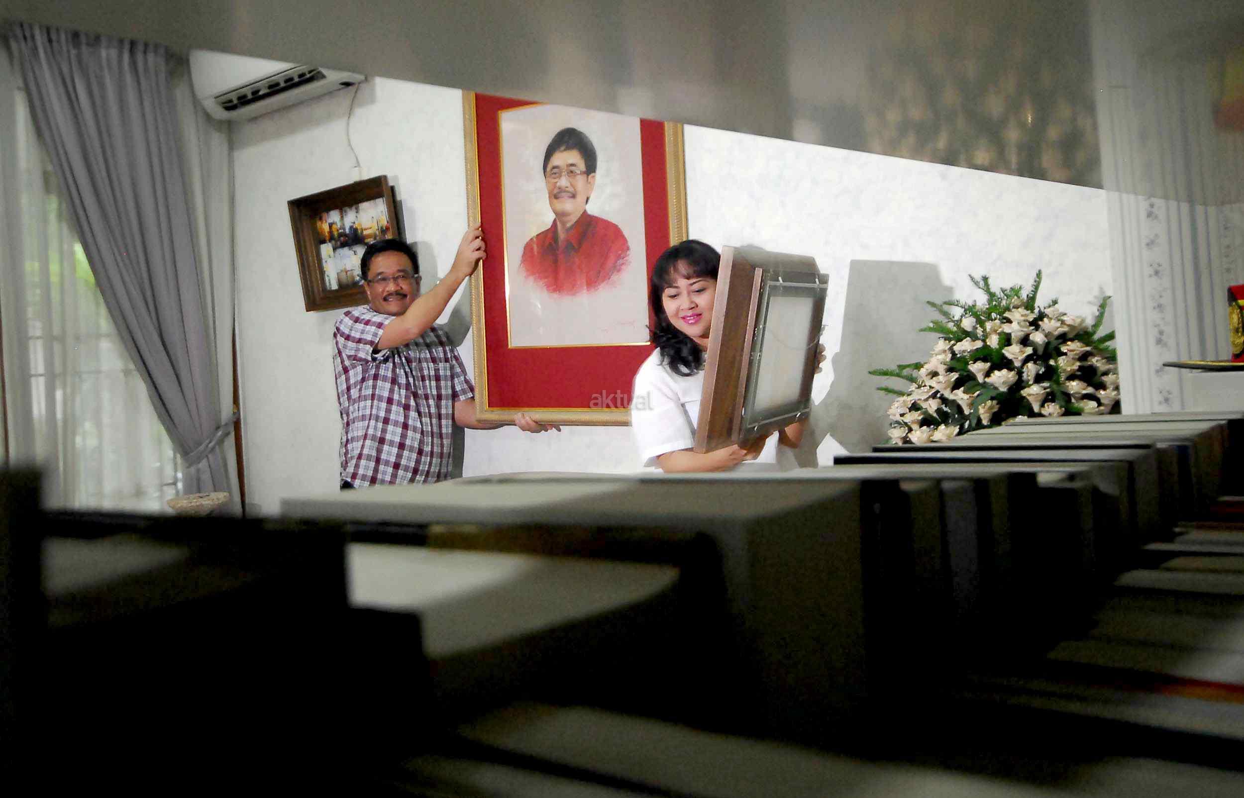 Wakil Gubernur DKI Jakarta Djarot Saiful Hidayat bersama sang istri, Happy Farida menurunkan foto keluarga yang dipajang di rumah dinas di kawasan Jalan Besakih, Kuningan, Jakarta, Kamis (27/10/2016). Djarot mulai mengosongkan rumah dinas sebelum menjalani cuti panjang sejak 28 Oktober 2016 hingga 11 Februari 2017 untuk melakukan kampanye sebagai pasangan petahana Cagub-Cawagub DKI Jakarta.