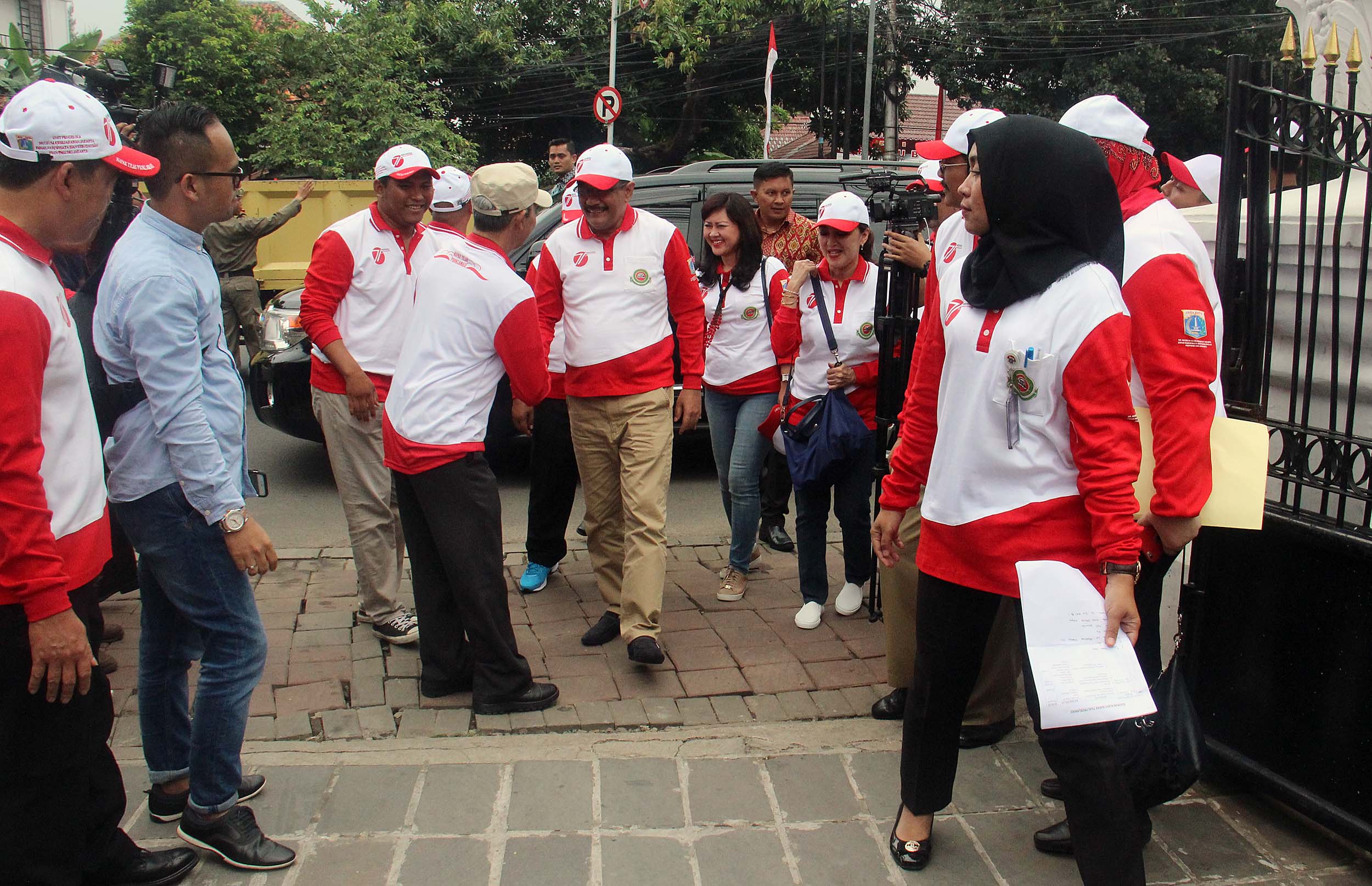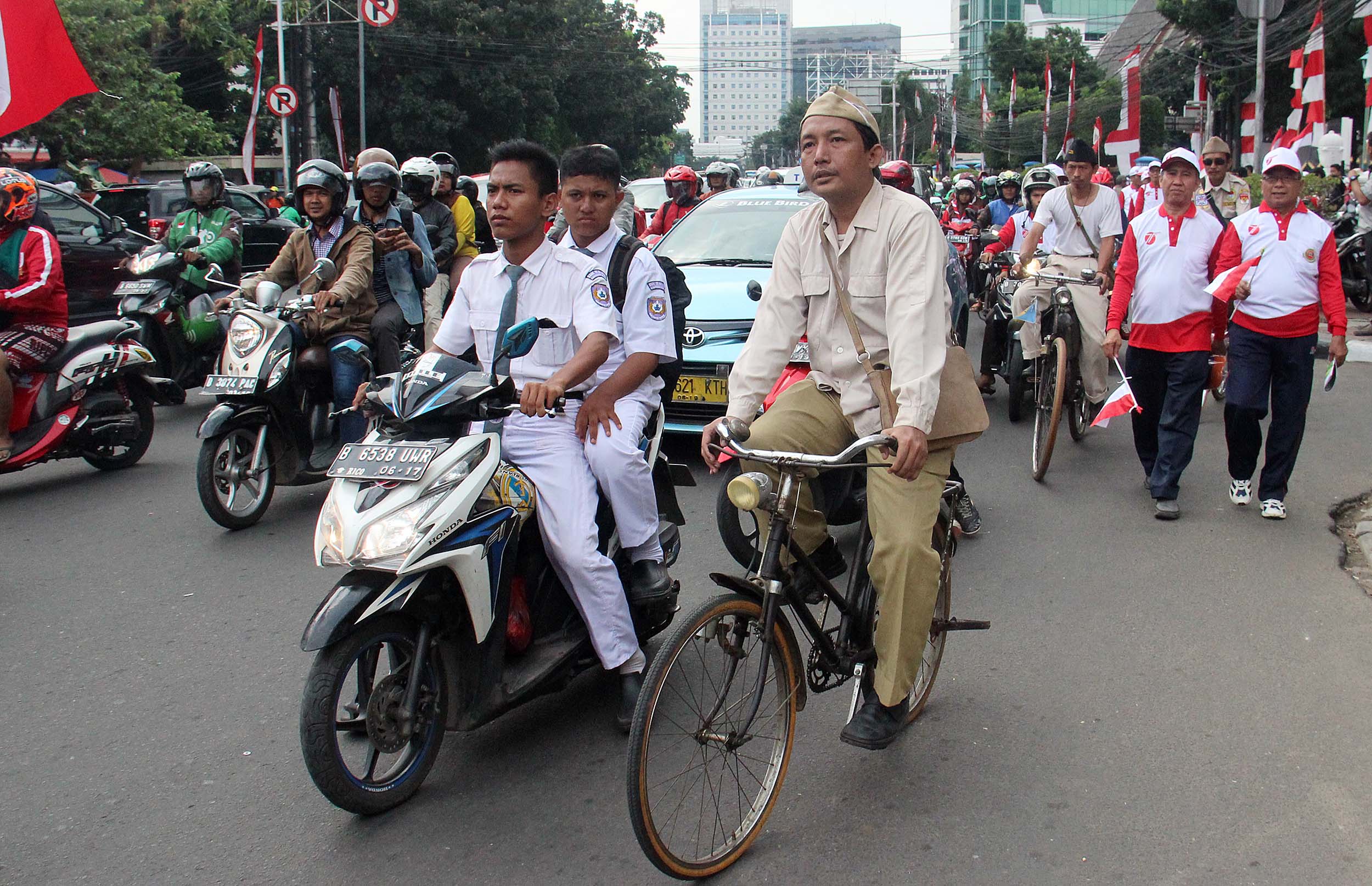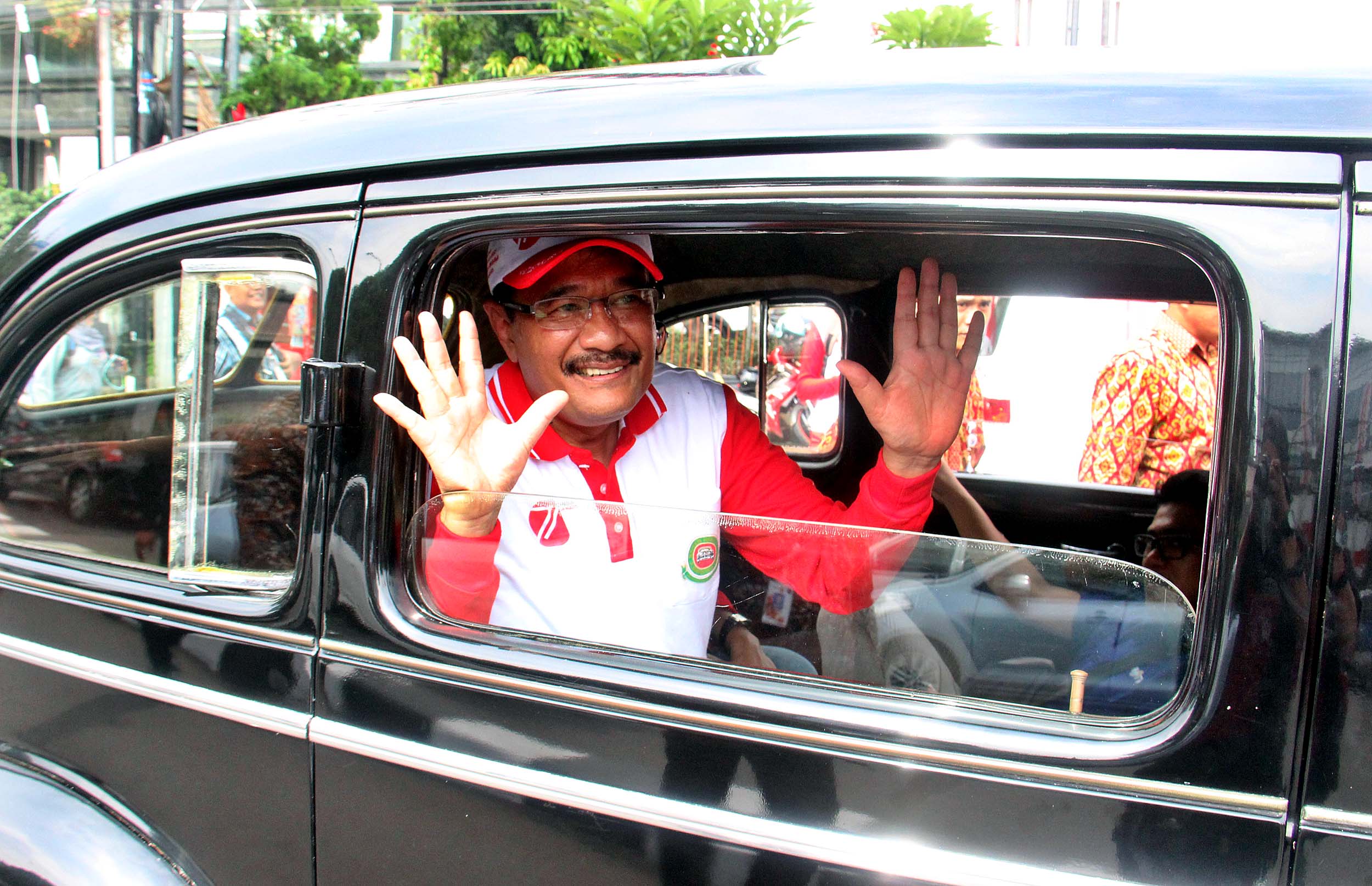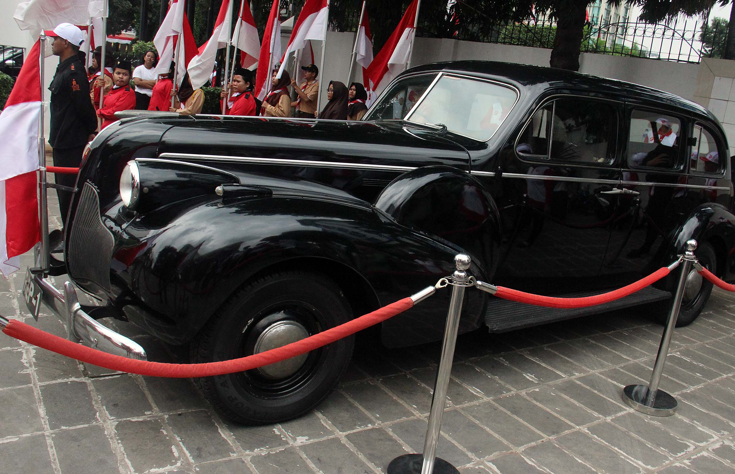Wakil Gubernur DKI Jakarta Djarot Saiful Hidayat di dampingi sang istri naik mobil kepresidenan pertama di Jakarta, Selasa (15/8/2016). Djarot beserta istri menaiki mobil dinas Presiden RI pertama Soekarno, yaitu mobil REP 1 dan mengikuti jalur napak tilas bersama para peserta dari elemen masyarakat, pelajar, mahasiswa, wirawati dan komunitas museum.