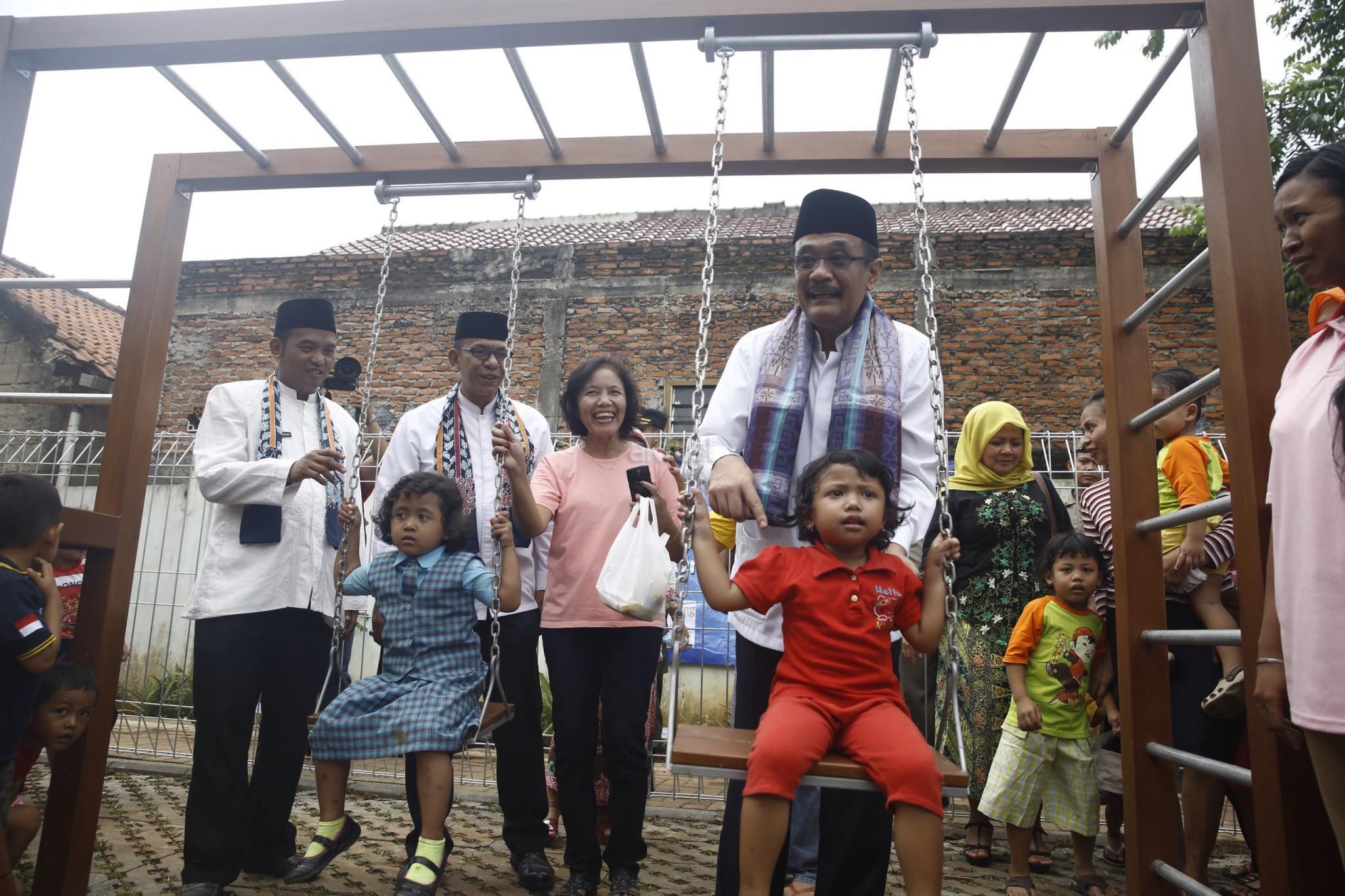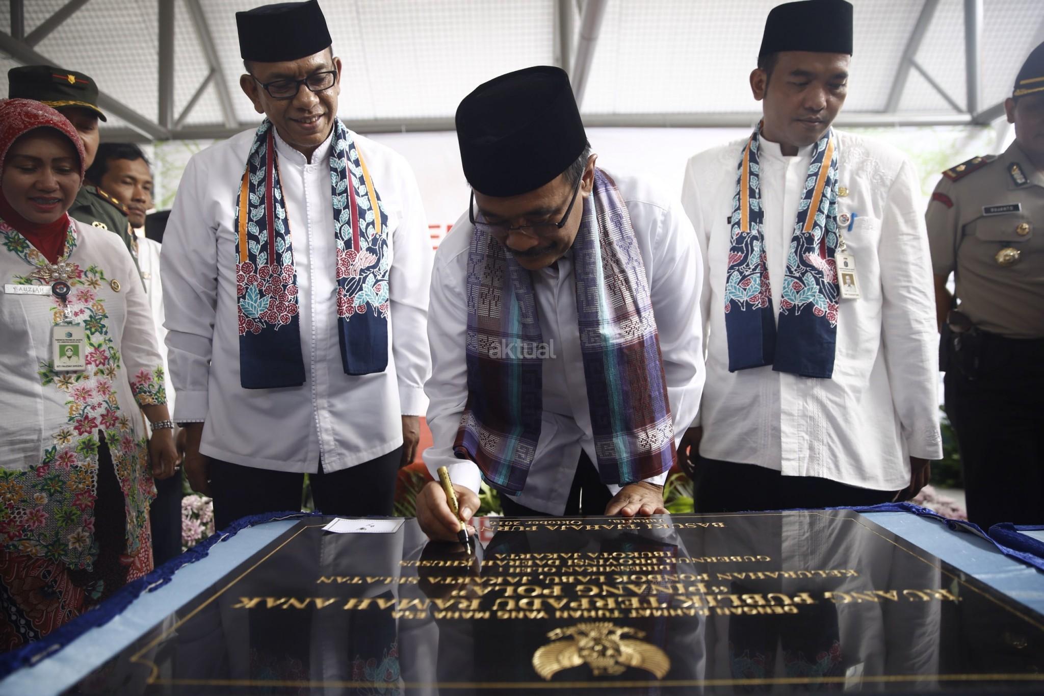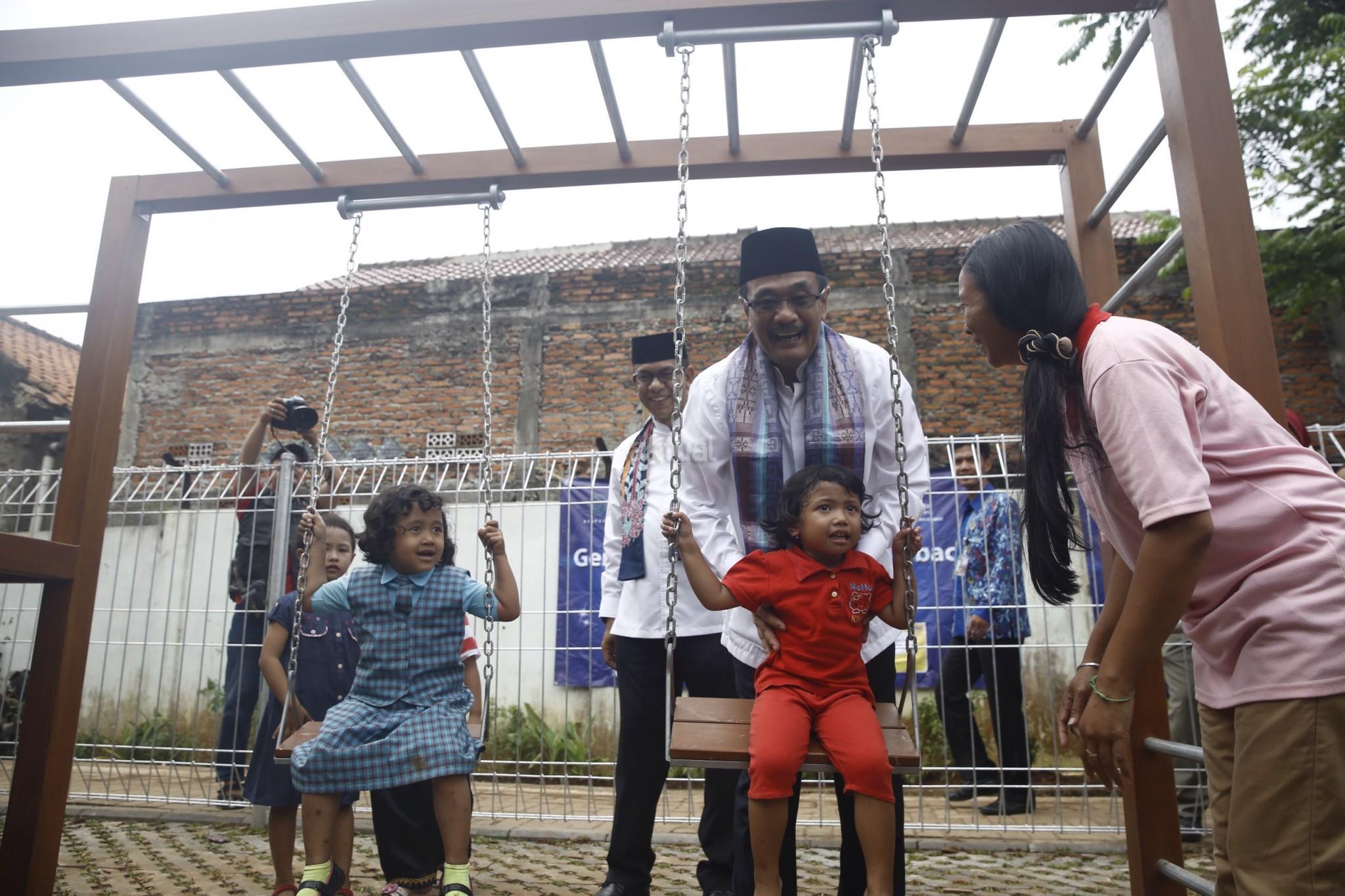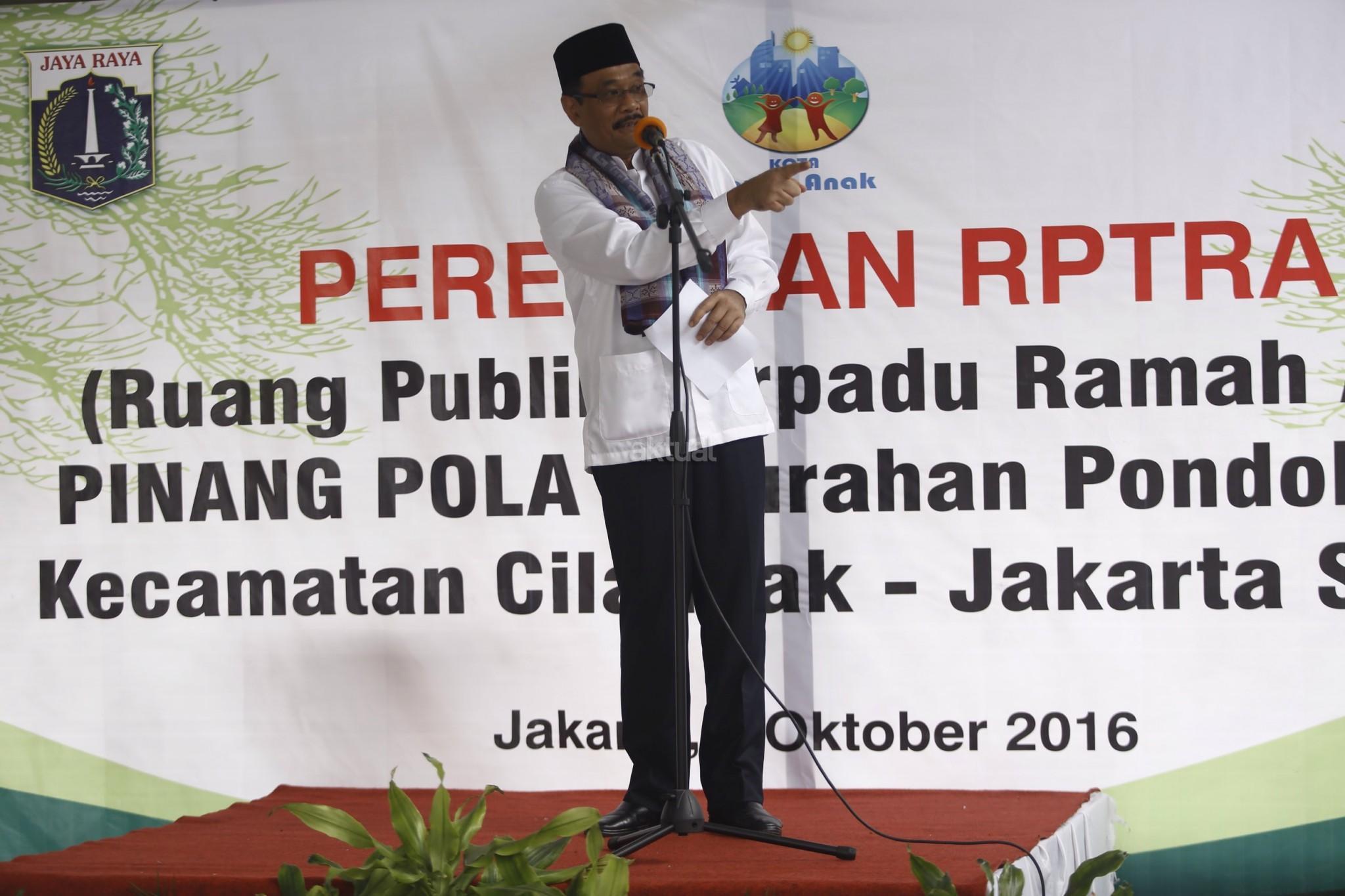 Wakil Gubernur DKI Jakarta, Djarot Saiful Hidayat meresmikan Ruang Publik Terpadu Ramah Anak (RPTRA) Pinang Pulo, Jakarta Selatan, Kamis (13/10/2016). Menurut Djarot, Pemerintah Provinsi (Pemprov) DKI Jakarta ingin setiap kelurahan di Jakarta memiliki minimal satu RPTRA. Pembangunan RPTRA bertujuan untuk membangun ruang terbuka bagi masyarakat di tengah-tengah kesibukannya. RPTRA ini dibangun dengan dana APBD DKI Jakarta tanpa CSR dari perusahaan. AKTUAL/Tino Oktaviano