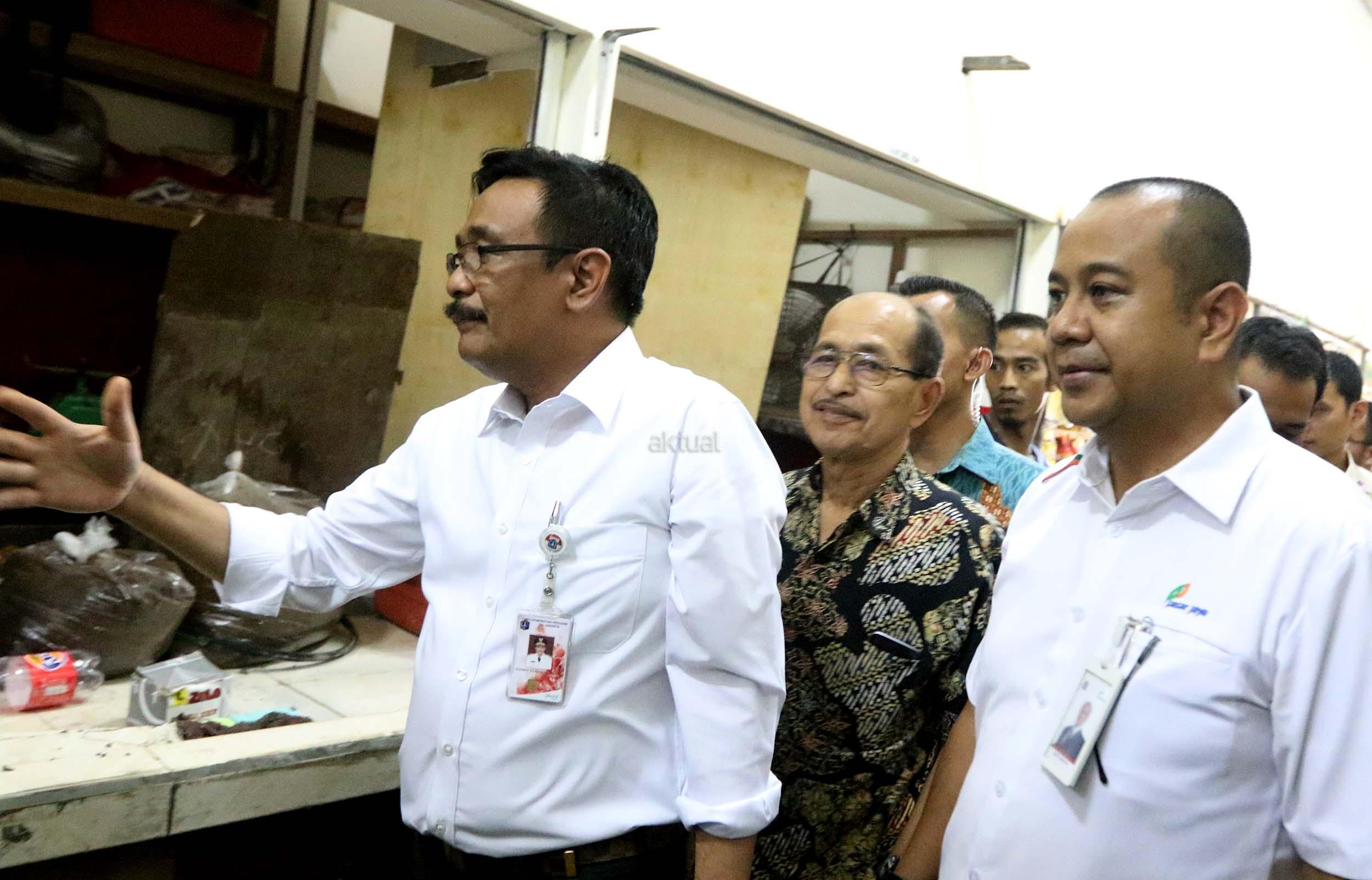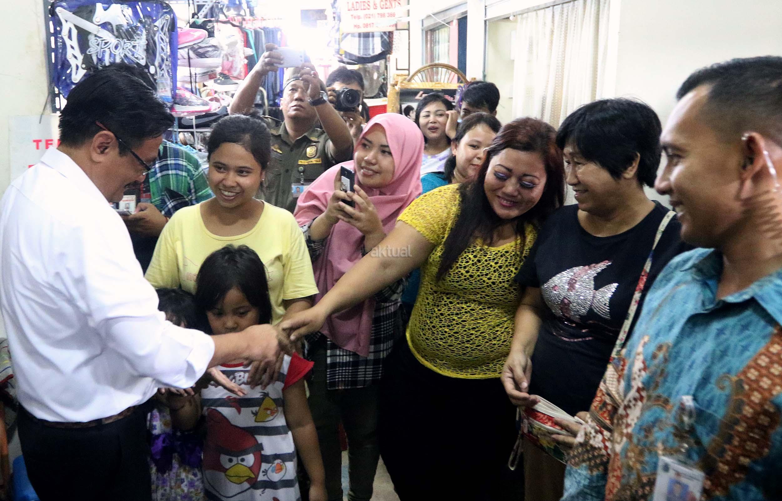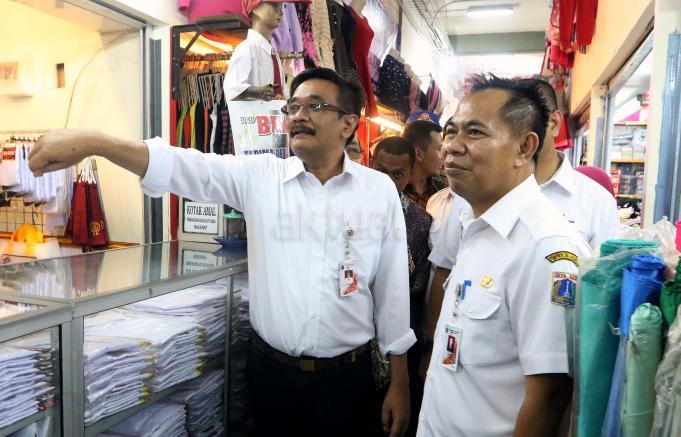Wagub Djarot blusukan ke Pasar Rumput. Djarot meninjau tempat penampungan sementara (TPS) Pasar Rumput dan memantau lokasi pasar lama yang tengah direvitalisasi. AKTUAL/Munzir