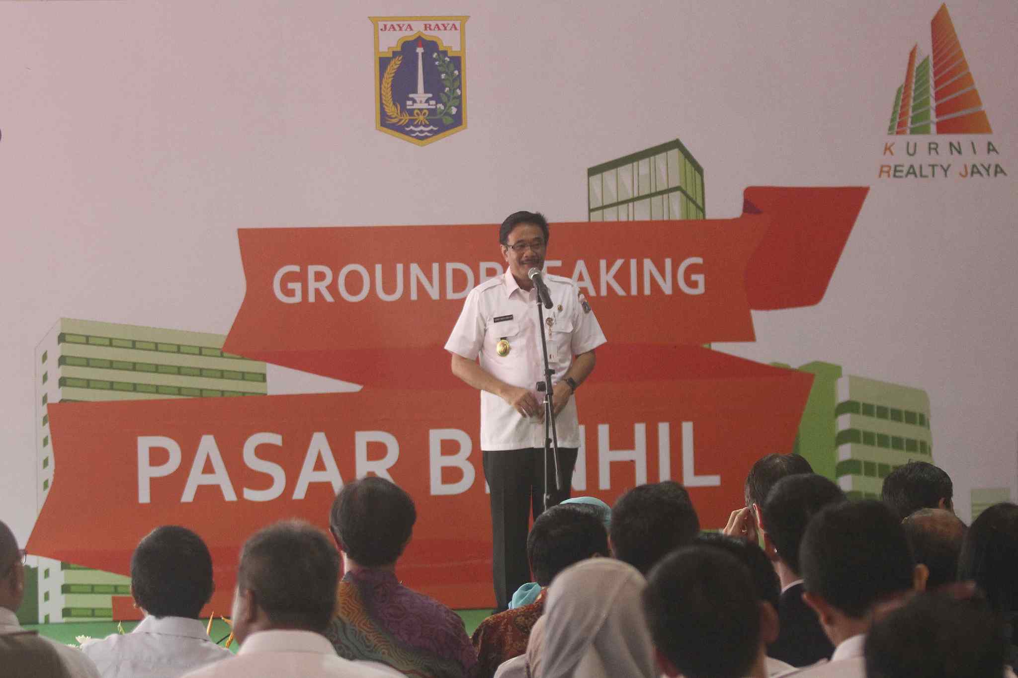 Wakil Gubernur DKI Djarot Saiful Hidayat meresmikan groundbreaking proyek revitalisasi Pasar Bendungan Hilir (Benhil), Jakarta Pusat, Rabu (26/10). Pasar Benhil akan diubah menjadi Benhil Central, dibangun dengan area seluas 150.000 meter persegi. Memiliki kapasitas 1.200 tempat usaha setinggi 45 lantai. Tujuh lantai akan dibangun untuk pasar tradisional, 14 lantai untuk perhotelan, dan sisanya untuk perkantoran. AKTUAL/Tino Oktaviano