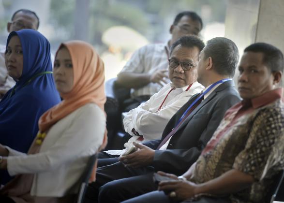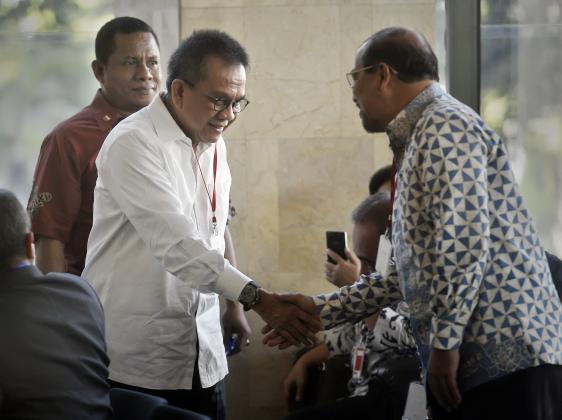 Wakil Ketua DPRD DKI Mohammad Taufik memenuhi panggilan penyidik KPK untuk diperiksa sebagai saksi dalam perkara dugaan pemberian hadiah terkait pembahasan Raperda mengenai rencana tata ruang kawasan strategis Pantai Utara Jakarta dengan tersangka M Sanusi, Jakarta, Senin (18/4). Mohammad Taufik yang juga menjabat sebagai Ketua Badan Legislasi Daerah DPRD DKI dimintai keterangan penyidik mengenai mekanisme pembahasan rancangan peraturan daerah di DPRD DKI. ANTARA FOTO/Yudhi Mahatma/foc/16.