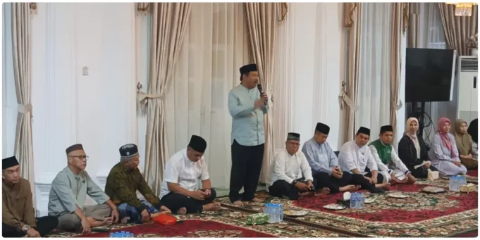 Suasana kekeluargaan tampak kental saat para pejabat teras ini membaur dalam rangkaian tausiah keagamaan.