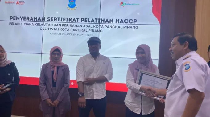 Pangkalpinang, aktual.com – Pemerintah Kota Pangkalpinang menyerahkan secara langsung sertifikat Hazard Analysis and Critical Control Point (HACCP) kepada sembilan pelaku usaha kelautan dan perikanan asal Kota Pangkalpinang.
