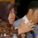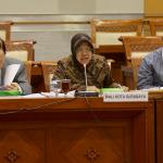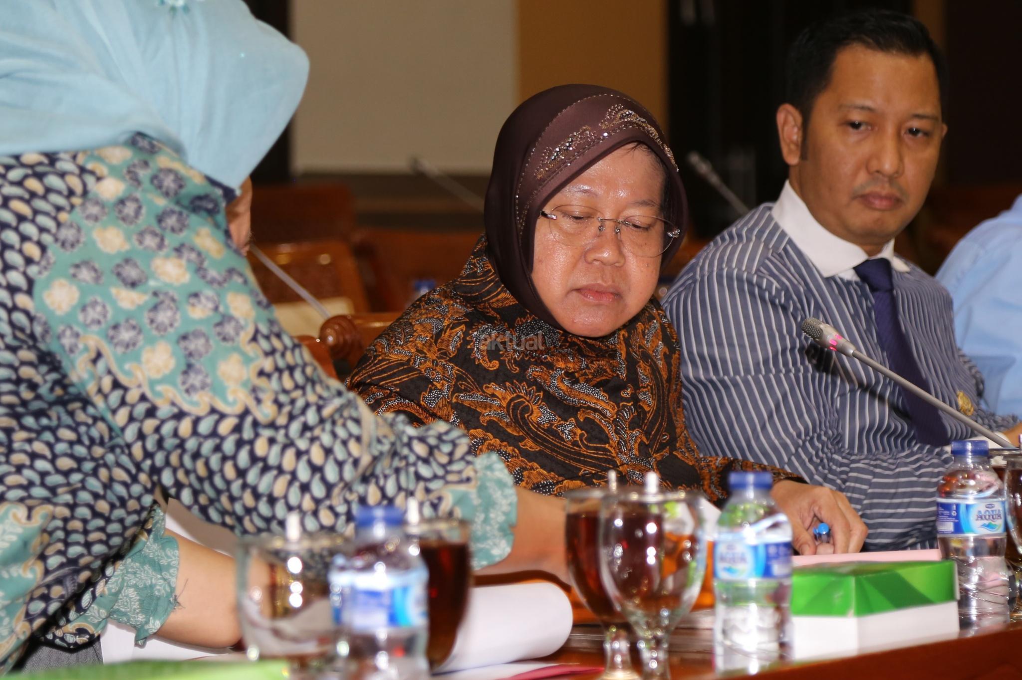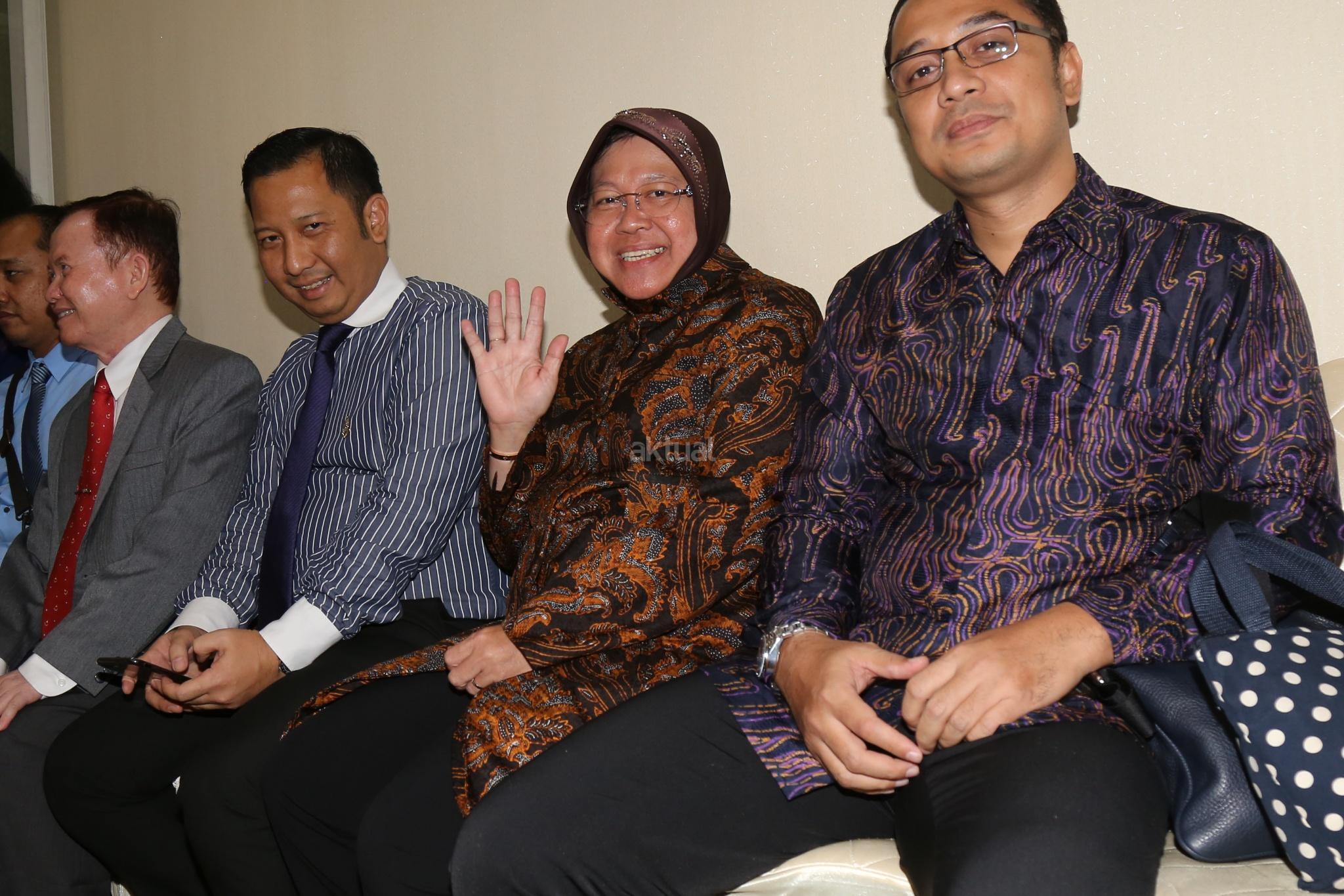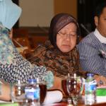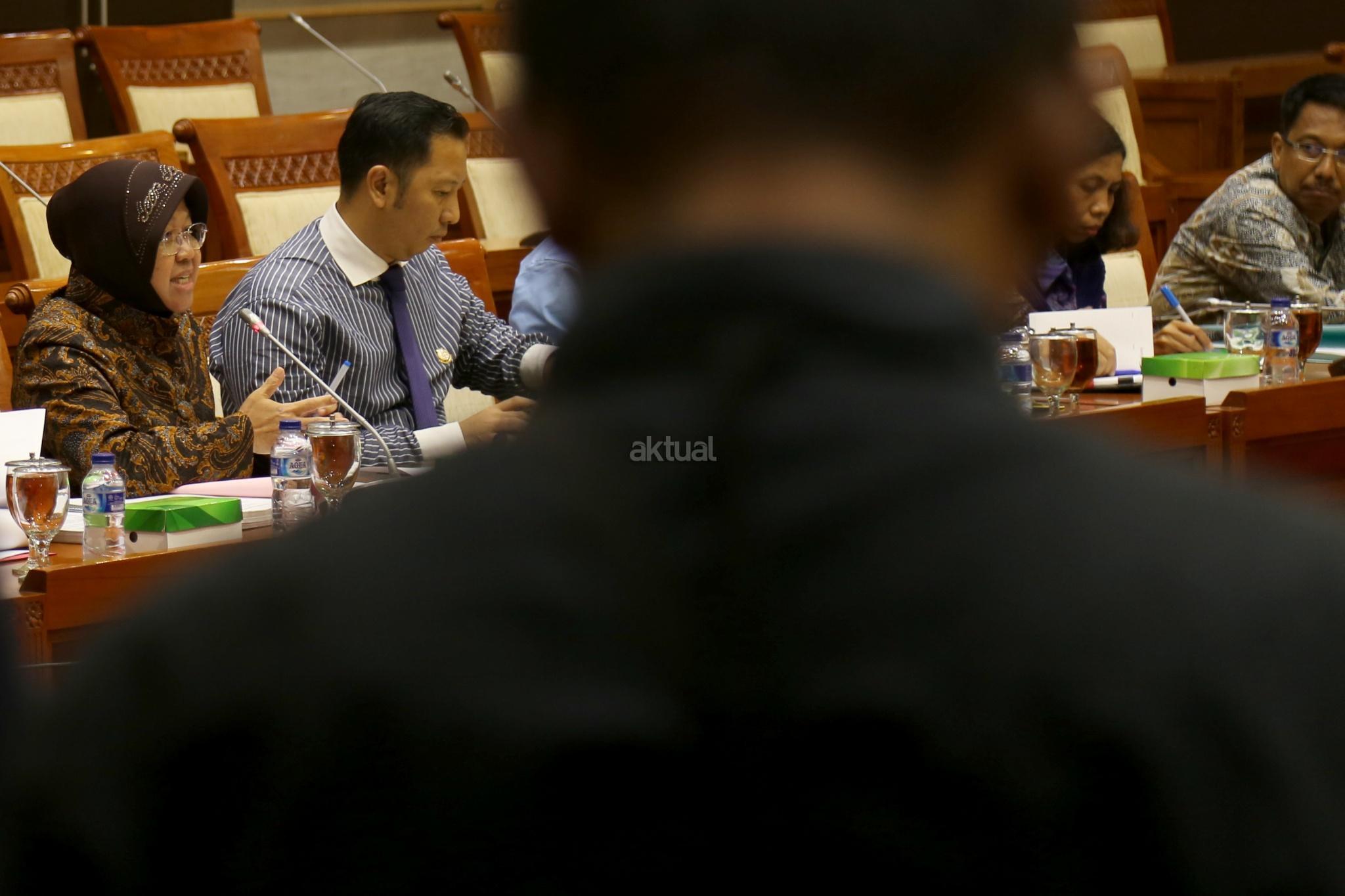 Walikota Surabaya Tri Rismaharini bersiap melakukan Rapat dengar Pendapat dengan Komisi III DPR, Jakarta, Selasa (29/11). Komisi III meminta penjalasan tentang perkembangan pembangunan pasar Turi Surabaya ke Risma. AKTUAL/Tino Oktaviano