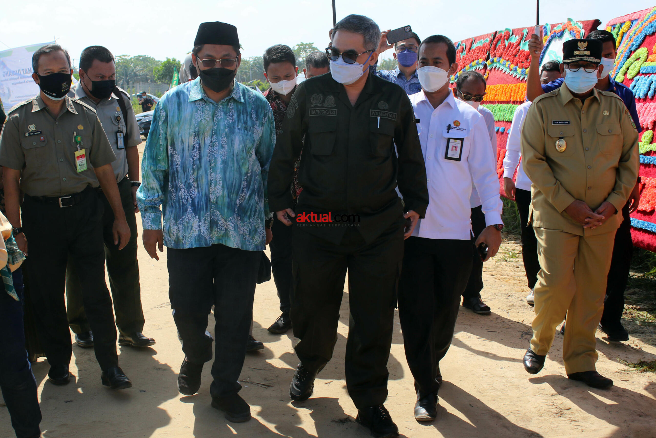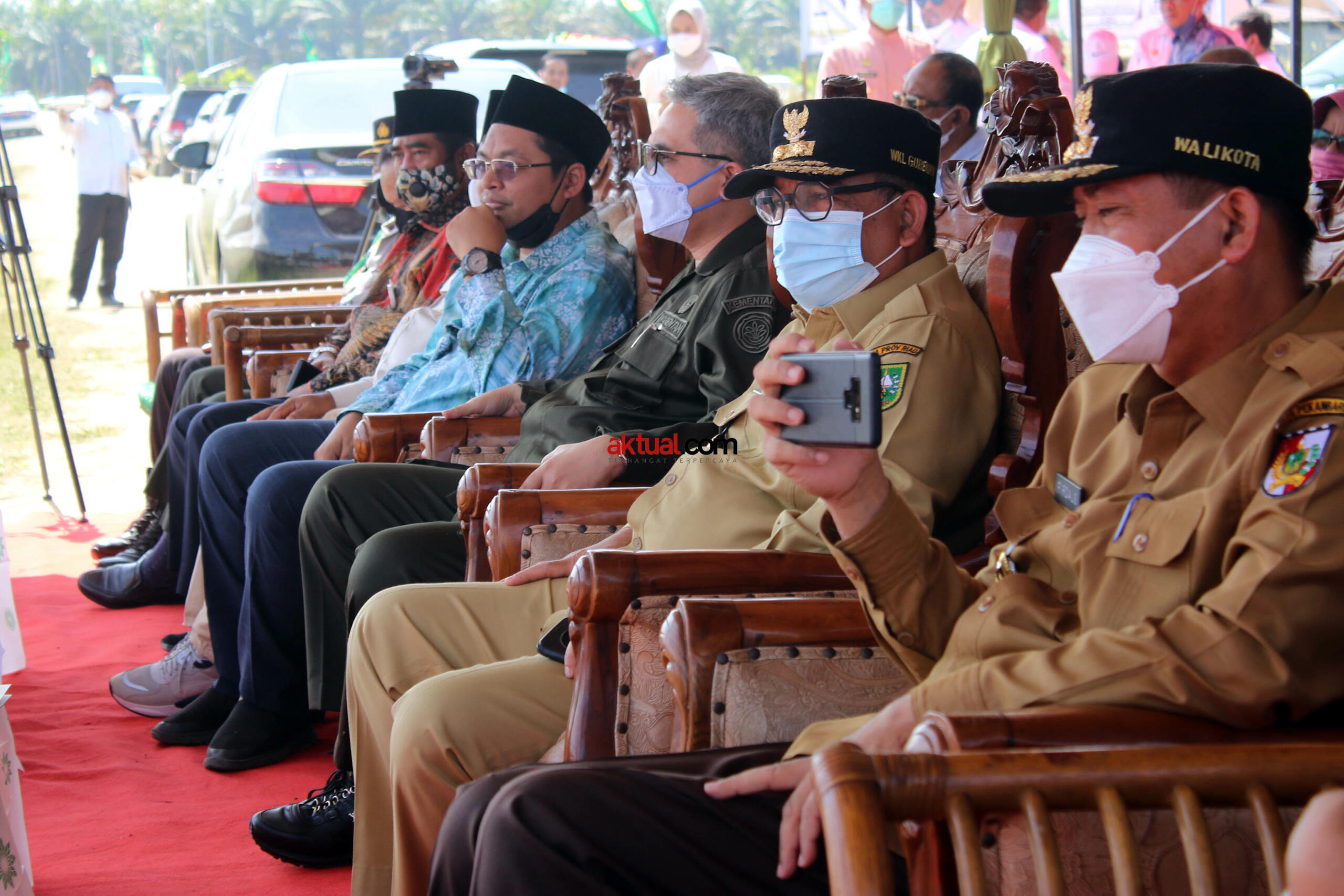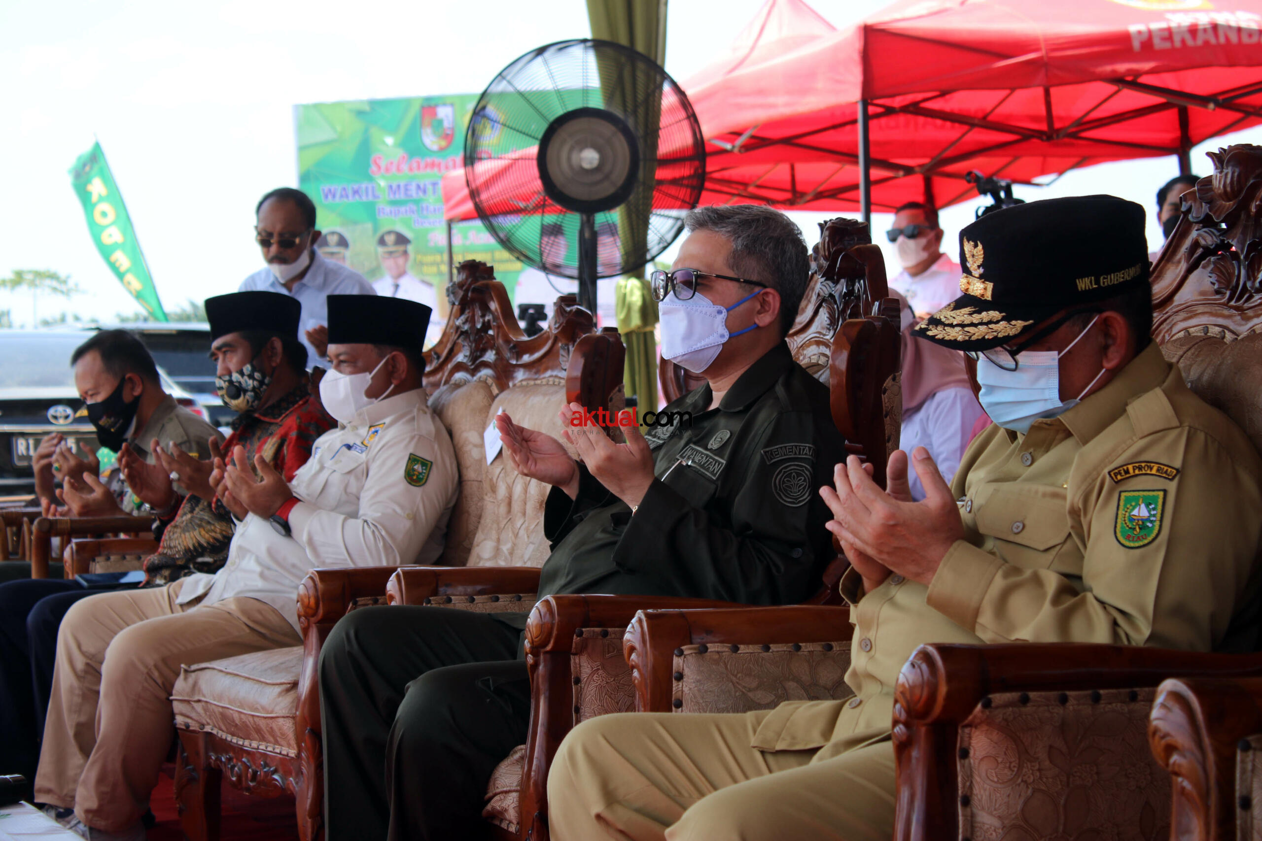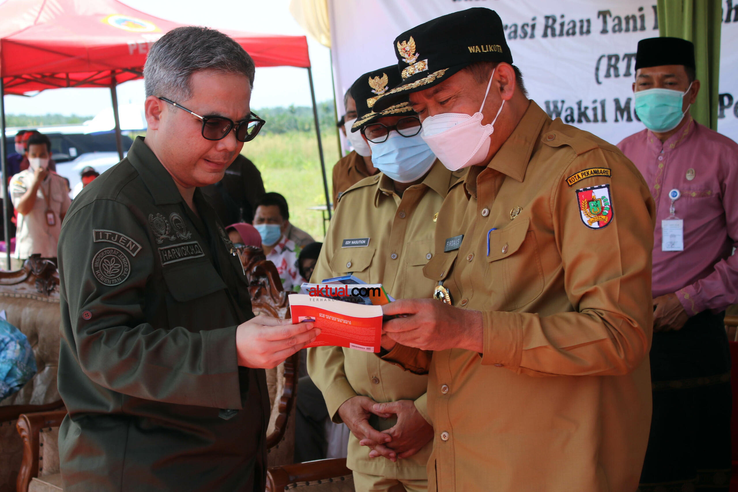 Wakil Menteri Pertanian (Wamentan) Harvick Hasnul Qolbi didampingi Wakil Gubernur Pekanbaru, Edy Afrizal Natar Nasution, juga Walikota Pekanbaru, Firdaus dalam Kegiatan Panen Jagung dan Penerapan Mekanisasi Pertanian yang diselenggarakan Koperasi Riau Tani Berkah Sejahtera (RTBS) di kawasan Agrowisata, Pekanbaru, Riau, Senin (21/6) siang. Foto: Warnoto/Aktual.com