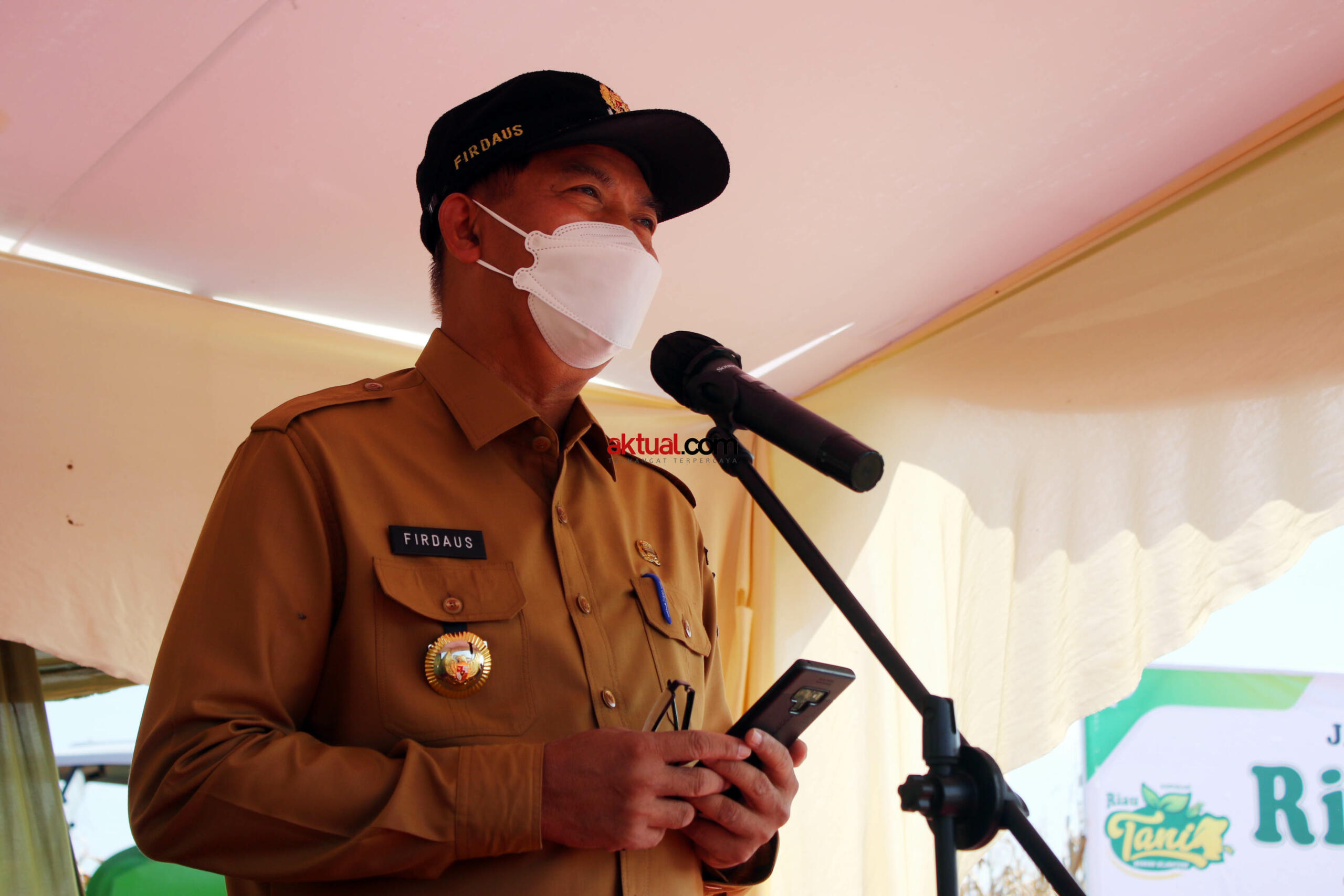 Pidato sambutan Walikota Pekanbaru, Firdaus dalam Kegiatan Panen Jagung dan Penerapan Mekanisasi Pertanian yang diselenggarakan Koperasi Riau Tani Berkah Sejahtera (RTBS) di kawasan Agrowisata, Pekanbaru, Riau, Senin (21/6) siang. Foto: Warnoto/Aktual.com