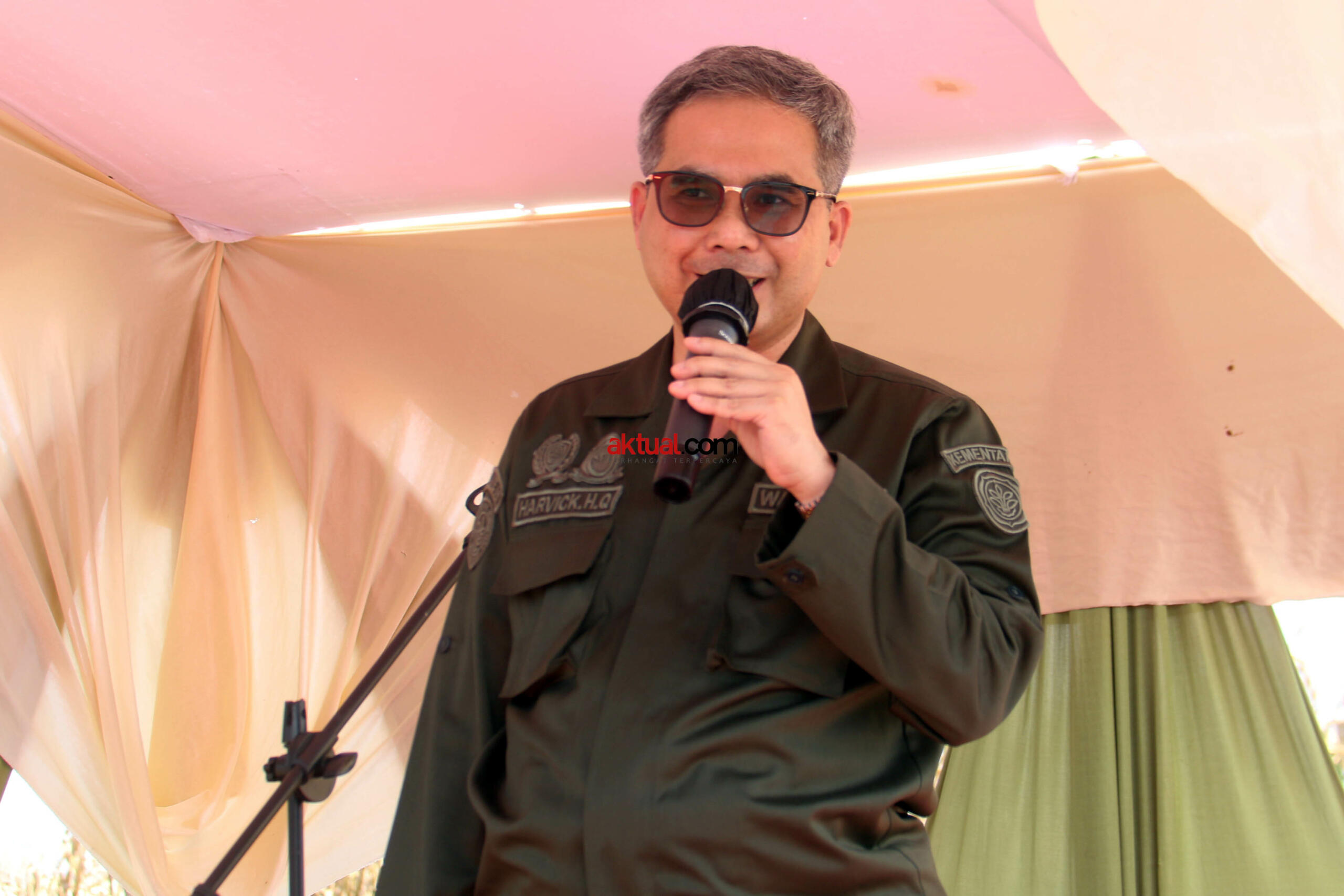 Pidato sambutan Wakil Menteri Pertanian (Wamentan) Harvick Hasnul Qolbi dalam Kegiatan Panen Jagung dan Penerapan Mekanisasi Pertanian yang diselenggarakan Koperasi Riau Tani Berkah Sejahtera (RTBS) di kawasan Agrowisata, Pekanbaru, Riau, Senin (21/6) siang. Foto: Warnoto/Aktual.com