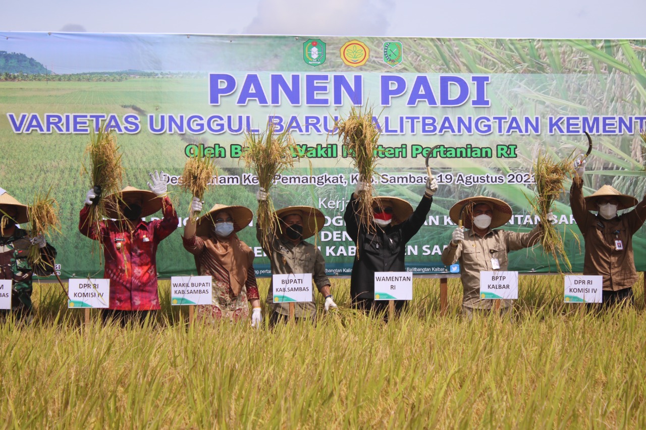 Wakil Menteri Pertanian, Harvick Hasnul Qolbi bersama Bupati Sambas melakukan Panen Raya Padi Varitas Unggul Inpari 35 dan 37 di Desa Lanom, Kecamatan Pemangkat, Kabupaten Sambas, Kalimantan Barat. Panen Raya ini juga dihadiri Anggota Komisi IV DPR-RI, Maria LestariArtikel ini ditulis oleh:
