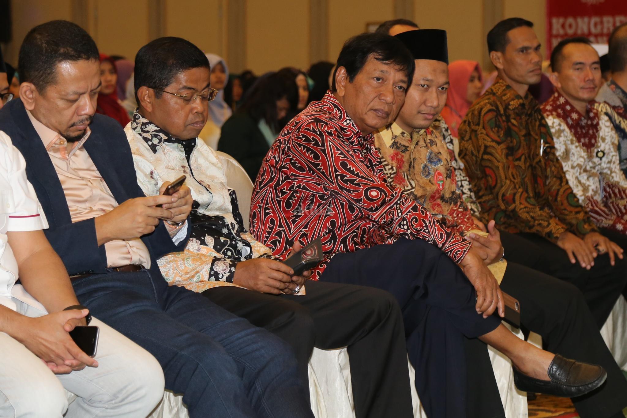 Tokoh Malari, Hariman Siregar saat mengikuti pembukan Kongres I Keluarga Alumni Kesatuan Aksi Mahasiswa Muslim Indonesia (KA KAMMI) di Kartika Chadra, Jakarta, Sabtu (12/11). Kongres I dibuka oleh Wakil Presiden Jusuf Kalla Dengan memberikan Pidato Kebangsaan ‘Gerakan Islam dan Cita-cita Kepahlawanan Indonesia’. AKTUAL/Tino Oktaviano