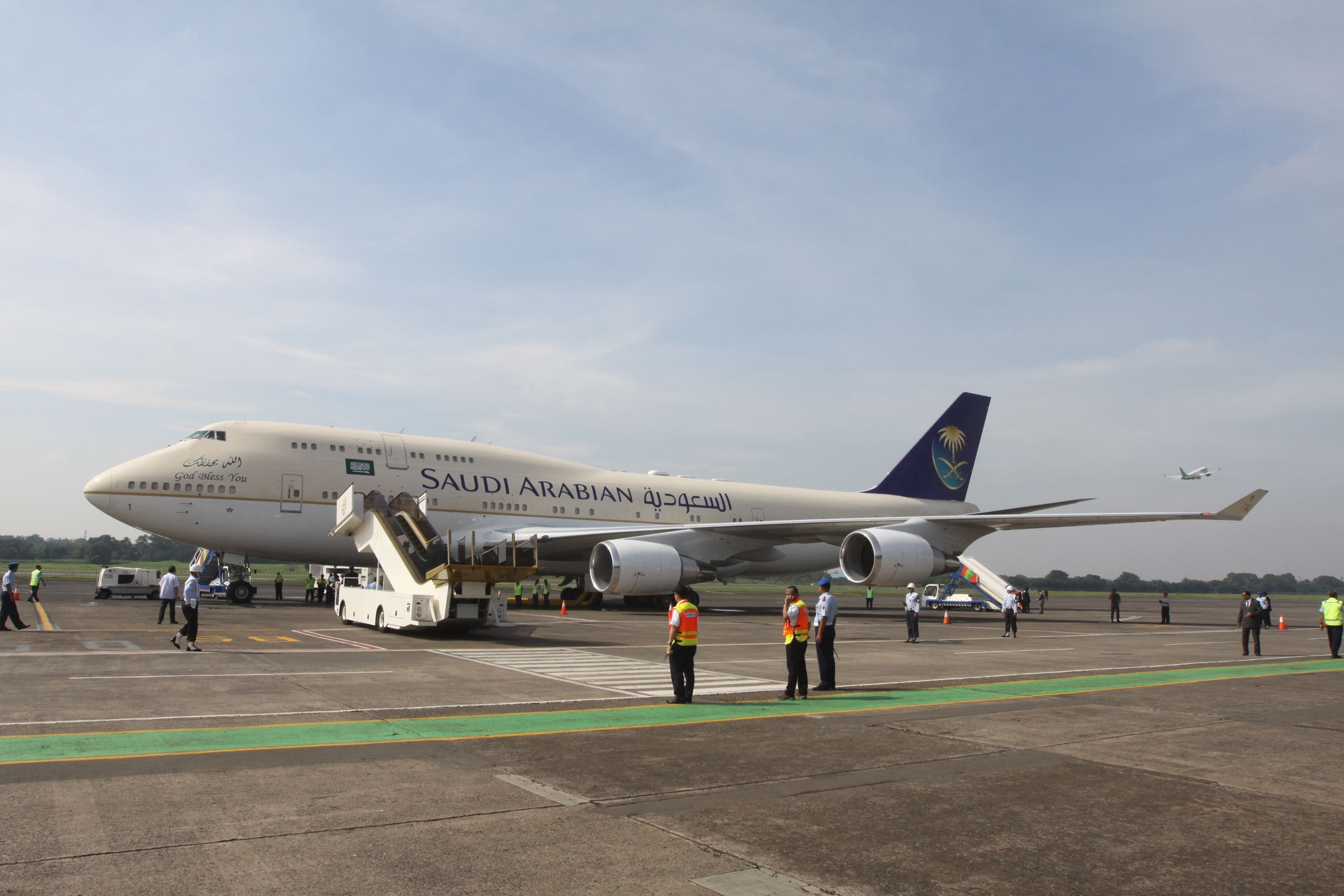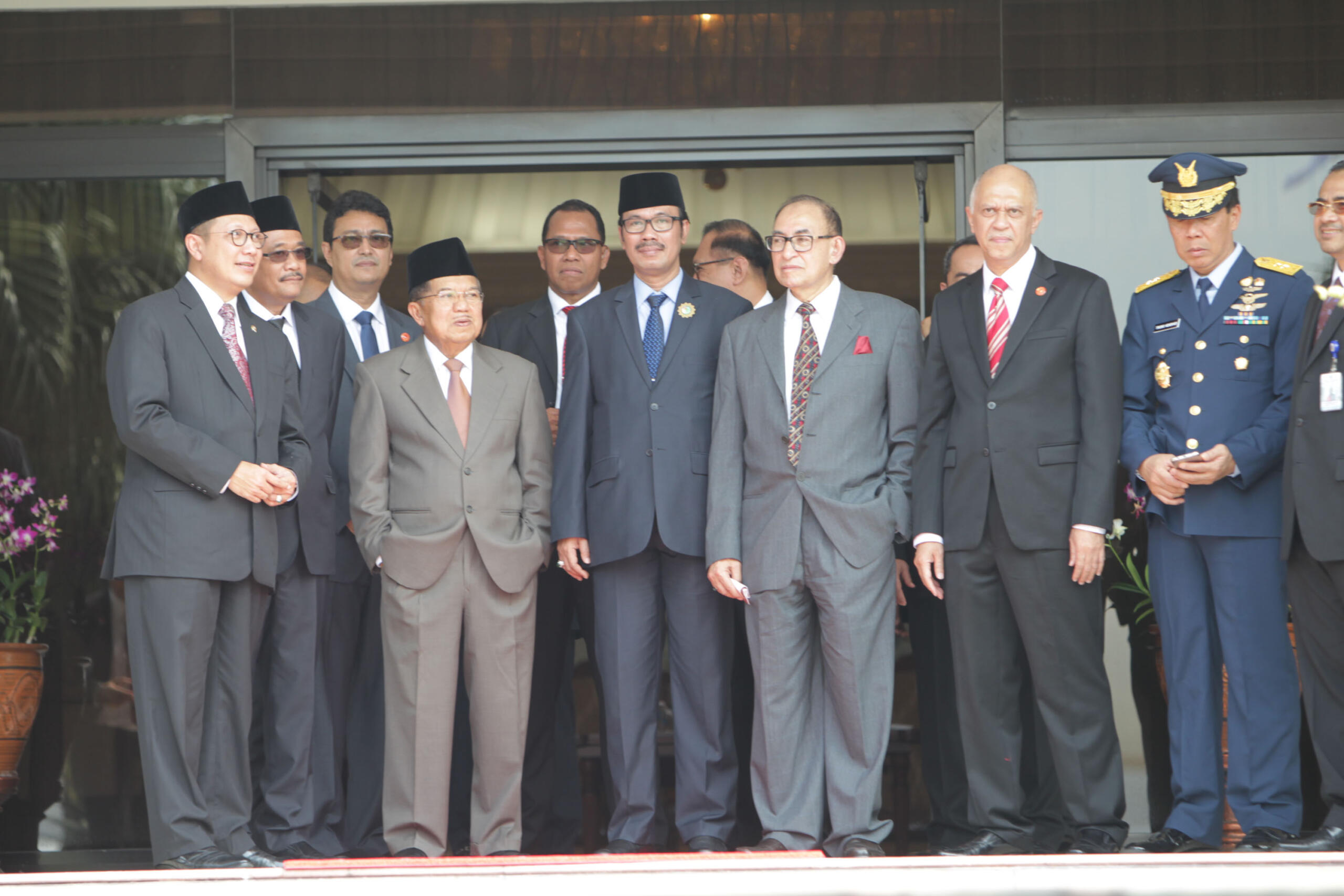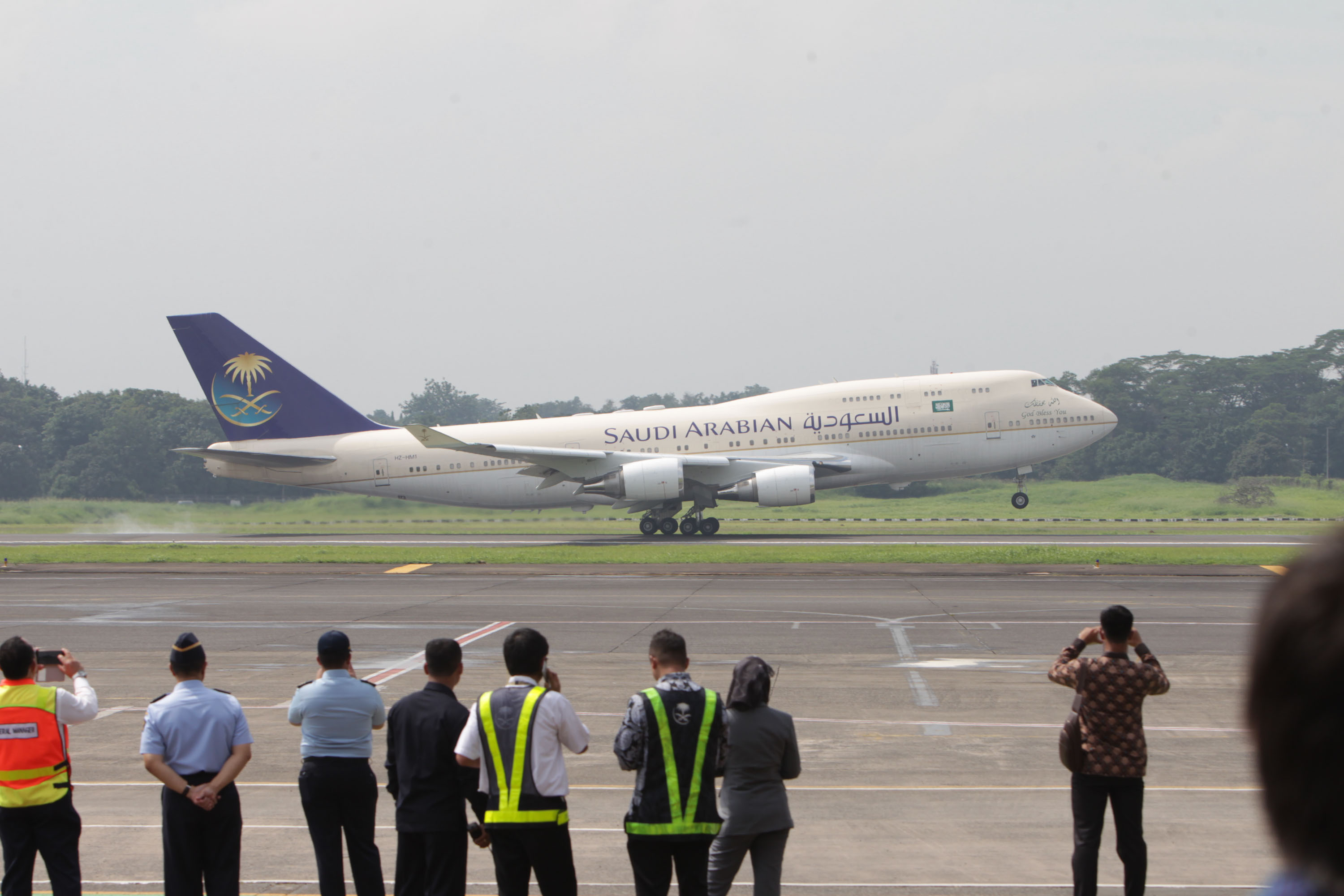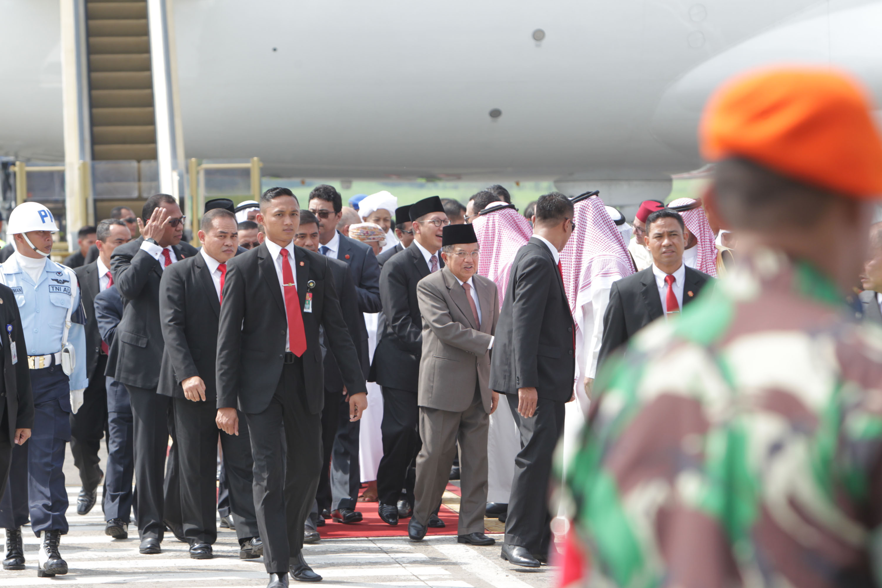 Raja Arab Saudi Salman bin Abdulaziz Al-Saud melambaikan tangan saat meninggalkan Indonesia dan bertolak menuju Brunei Darussalam di Bandara Halim Perdanakusumah, Jakarta Timur, Sabtu (4/3/2017). Kepergian rombongan Raja Salman diantar oleh Wakil Presiden Jusuf Kalla, Menteri Agama Lukman Hakim Saifuddin, dan Wakil Gubernur DKI Jakarta Djarot Saiful Hidayat. Sore nanti setelah kunjungan kenegaraan ke Brunei Darussalam, Raja Salman akan kembali ke Indonesia untuk berlibur selama enam hari di Bali. AKTUAL/Tino Oktaviano