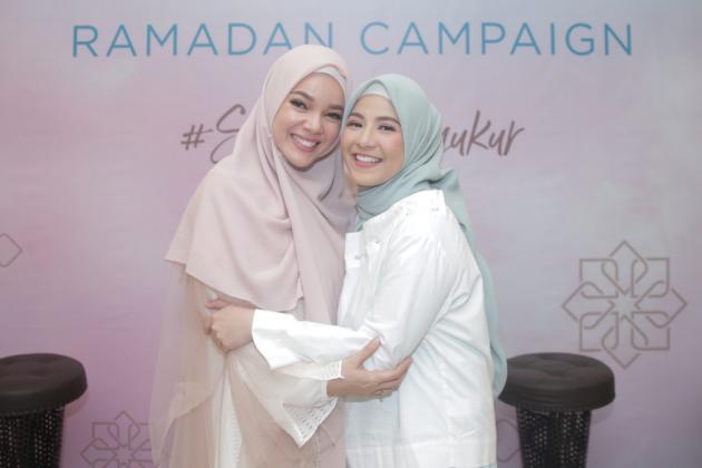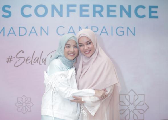 Dua Brand Ambassador Wardah Dewi Sandra berpose usai konferensi pers menyambut Ramadan 2019 di Jakarta, Jumat (3/5/2019). AKTUAL/Dok Wardah