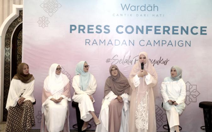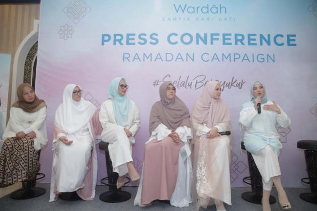 Senior Brand Manager Wardah Rifina Afandi bersama Brand Ambassador Wardah Dewi Sandra, Brand Ambassador Wardah Natasha Rizky, Founder The Little Hijabi Bunda Galuh Sukmara dan Founder Thisable Enterprise Angkie Yudistia saat konferensi pers menyambut Ramadan 2019 di Jakarta, Jumat (3/5/2019). Wardah menggelar program Ramadan Cantik Dari Hati yang bertujuan untuk membantu setiap wanita memancarkan cahaya cantik hatinya. Tidak hanya untuk perubahan diri sendiri tetapi juga membawa makna positif bagi lingkungan. Telah diselenggarakan selama 4 tahun, setiap tahunnya Wardah hadir dengan kampanye yang berbeda dimana tahun ini adalah #SELALUBERSYUKUR. AKTUAL/Dok Wardah