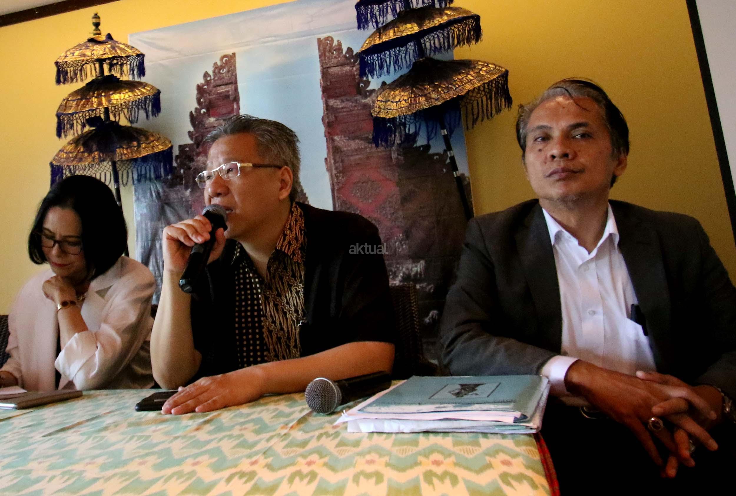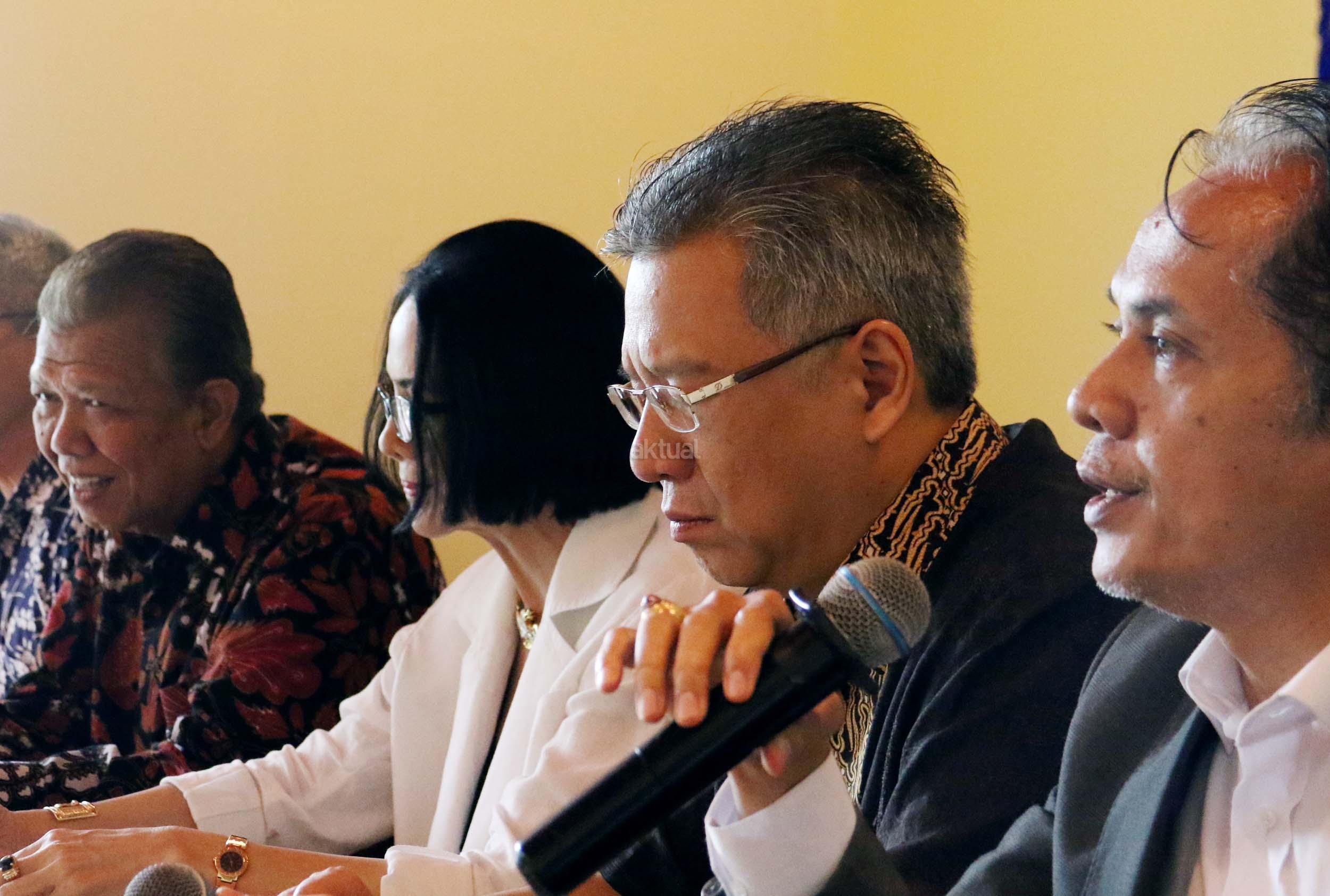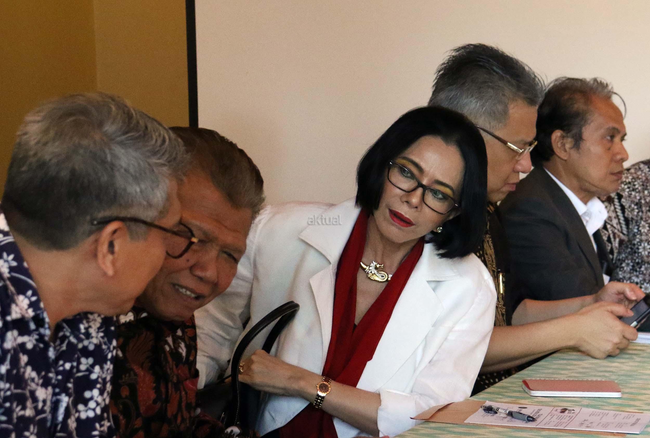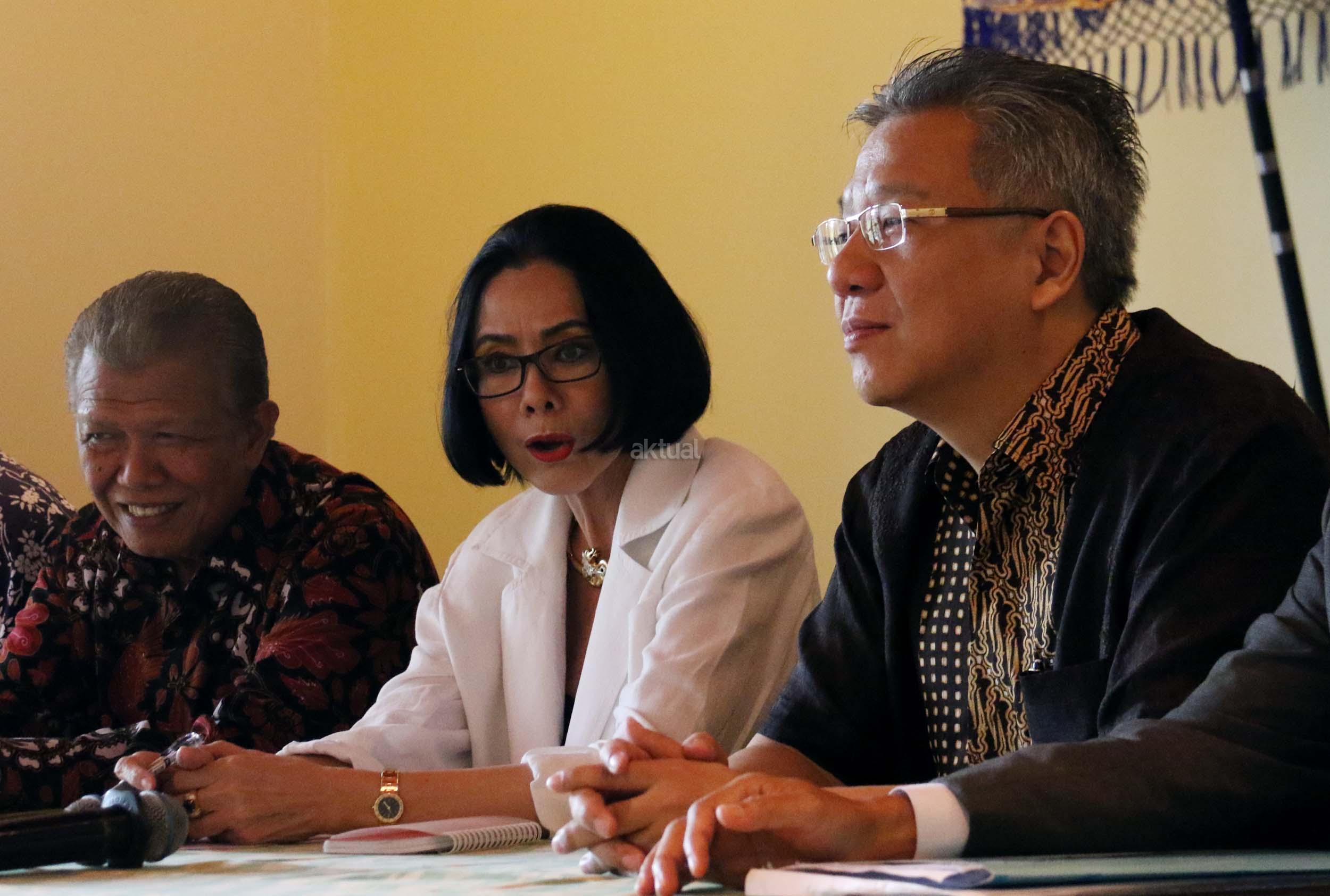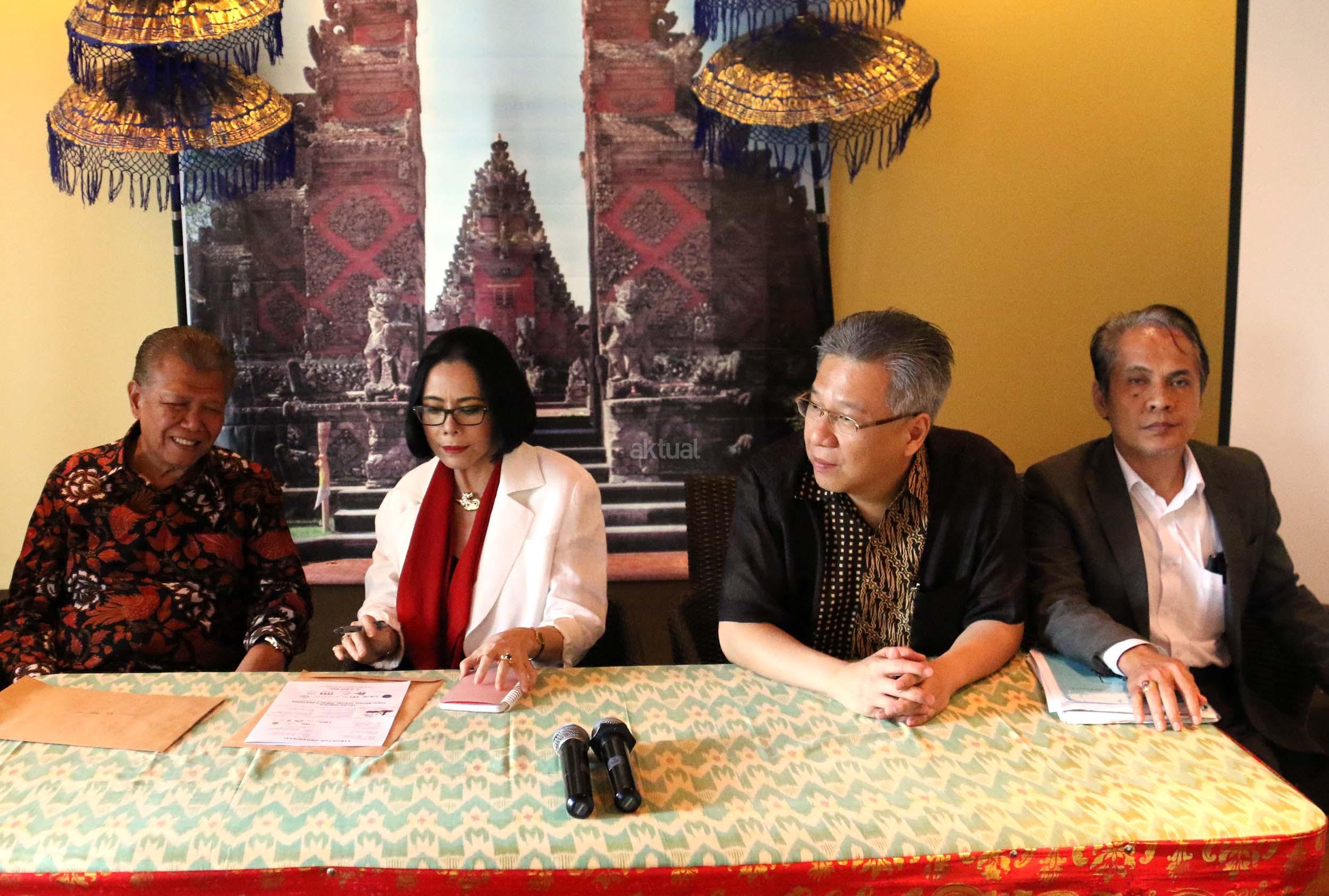Kiri-kanan ; Dewan Kehormatan Yayasan Bina Bangsa Unggul Unggul Marzuki Usman, Dewan Kehormatan Yayasan Bina Bangsa Unggul Poppy Dharsono, Pengurus Yayasan International Garment Training Centre Kenny Wirya dan Penasehat Hukum Happy Sihombing saat memberikan keterangan mengenai penggelapan uang hasil penjualan aset yayasan international garment training centre (IGTC) di Jakarta. Rabu (22/3/2017). Penggelapan uang sejumlah Rp 6 Miliar oleh warga negara asing kepada yayasan bina bangsa unggul yang merupakam lembaga pelayanan sosial yang berdiri sebagai fasilitator untuk menjembatani berbagai lembaga pelayanan sosial dengan pemerintah, pebisnis dan masyarakat menuju Indonesia yang lebih baik. AKTUAL/Munzir