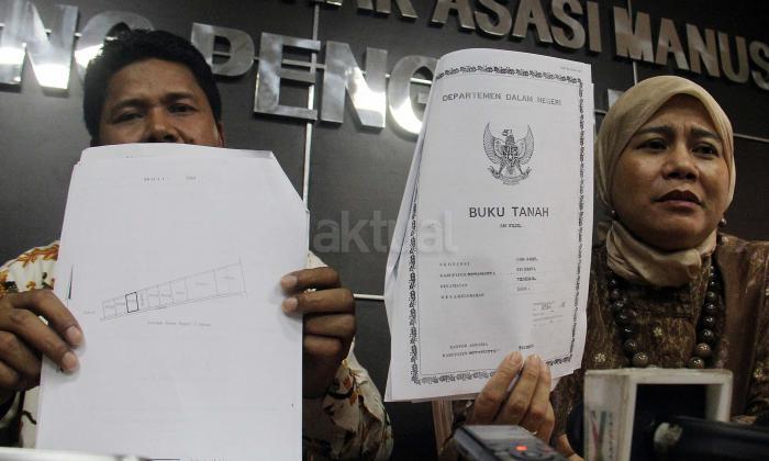 Dua anggota Komisioner Komnas HAM Imadudin Rahmat, Komisioner Komnas HAM Imadudin Roichatul Aswidah menunjukan kepemilikan tanah secara legal warga Dadap, Kosambi Tangerang. di kantor Komnas HAM, Jakarta, Minggu (23/5/2016). Komnas HAM mengaku akan mengambil sejumlah tindakan. Selain mengirimkan surat kepada Pemkab dan Bupati Tangerang, Komnas HAM juga meminta klarifikasi dan penjelasan dari Pemkab.