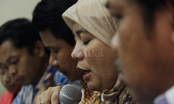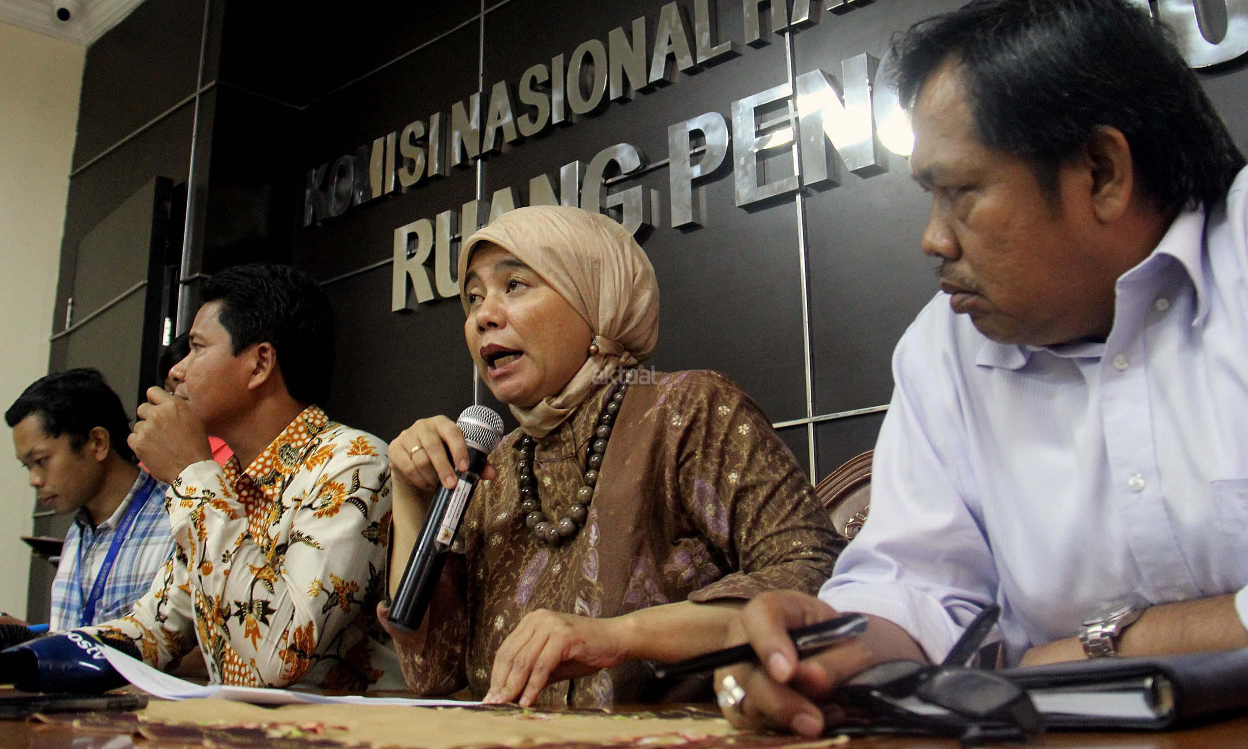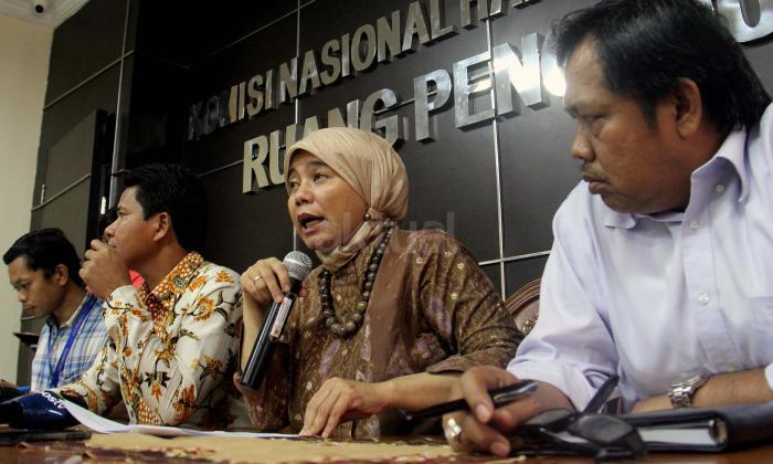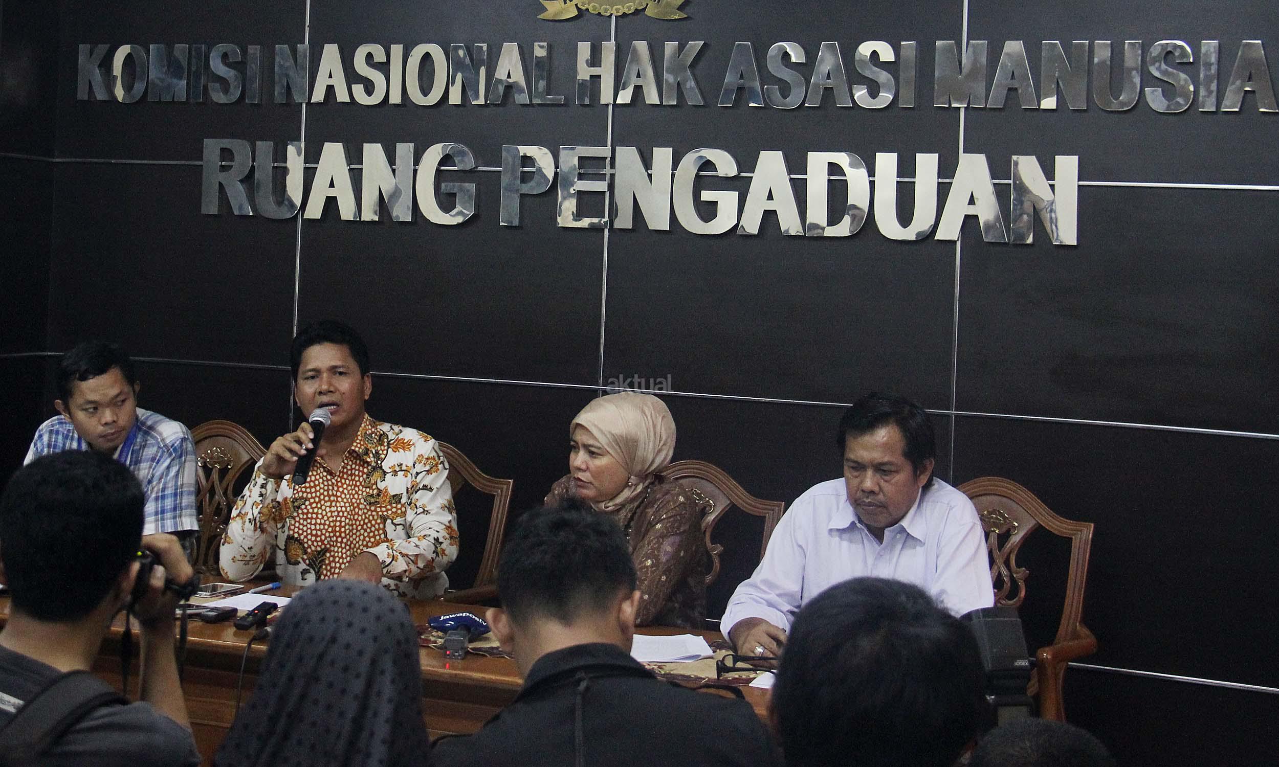 (Kiri-kanan); Pengacara warga dari LBH Jakarta Tigor Hutapea, Komisioner Komnas HAM Imadudin Rahmat, Komisioner Komnas HAM Imadudin Roichatul Aswidah, dan Kepala Biro Dukungan Penegakan HAM Komnas HAM Johan Efendi memberikan keterangan pers di Kantor Komnas HAM, Jakarta, Senin (23/5/2016). Komisi Nasional Hak Asasi Manusia (Komnas HAM) menerima aduan warga Dadap, Tangerang, aduan tersebut terkait rencana penggusuran oleh Pemkab Tangerang.