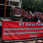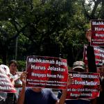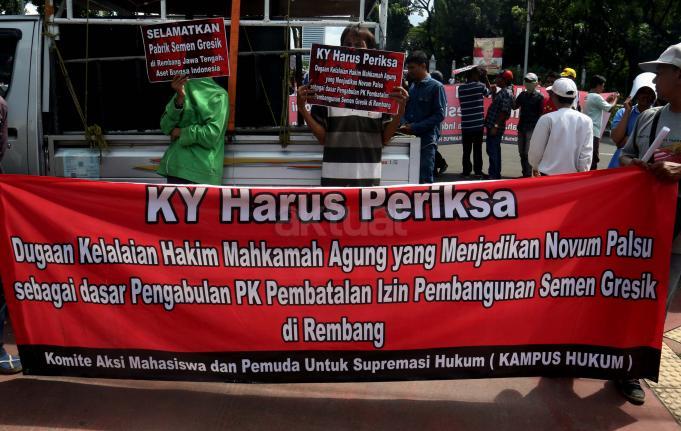 Puluhan orang mengatasnamakan dirinya Komite Aksi Mahasiswa dan Pemuda untuk Supremasi Hukum (Kampus Hukum) berunjuk rasa di Gedung Mahkamah Agung (MA), Jakarta, Kamis (15/12/2016). Mereka menuntut MA untuk memberikan penjelasan terkait Novum yang diduga palsu yang dijadikan dasar pengabulan peninjauan kembali atas izin pembangunan pabrik Semen Gresik di Rembang, Jawa Tengah. AKTUAL/Munzir