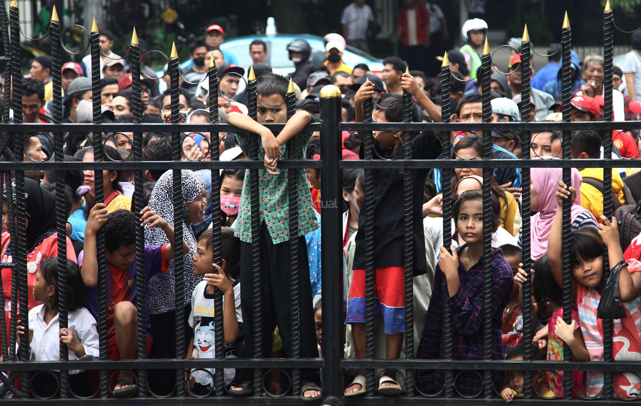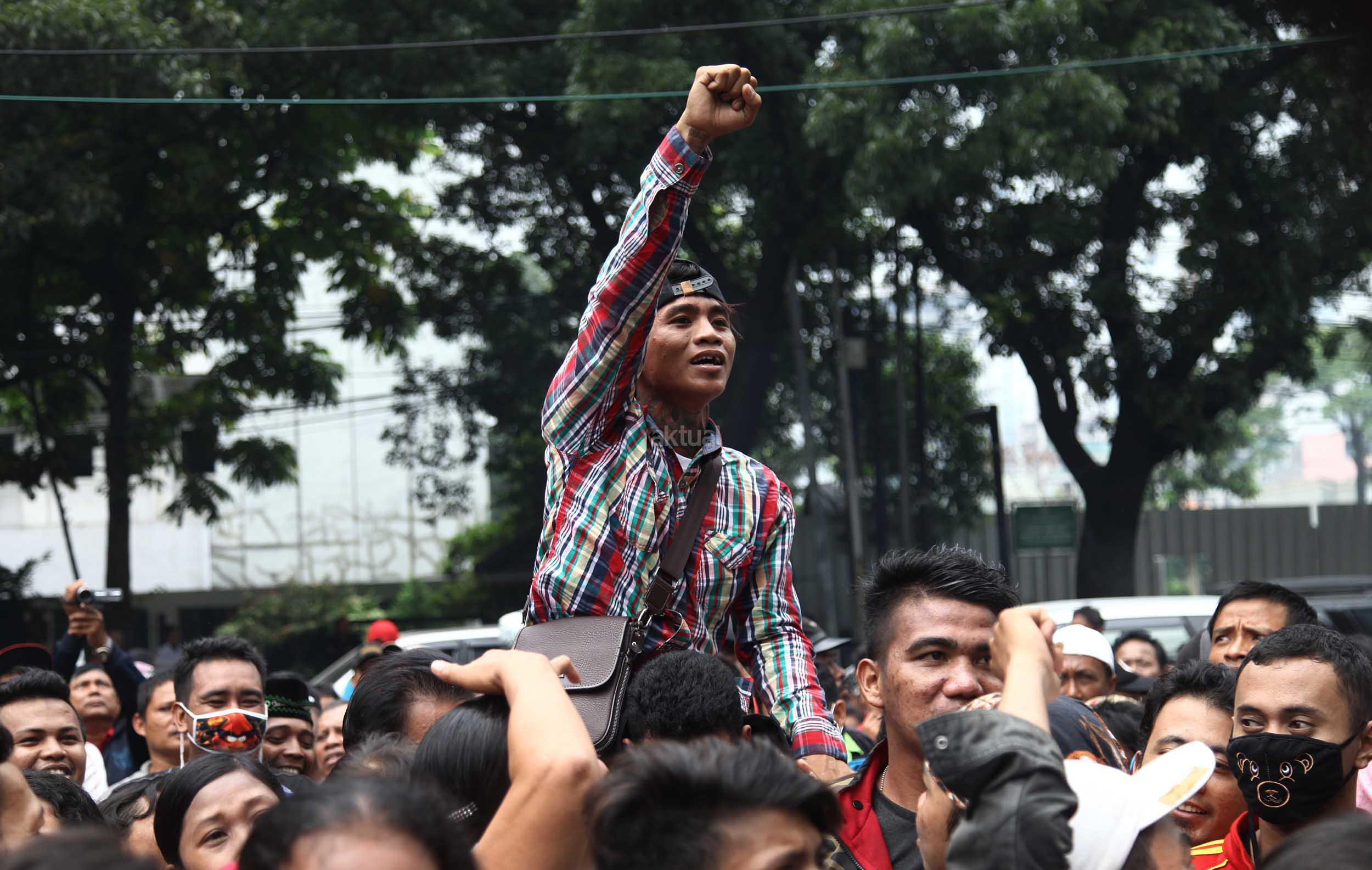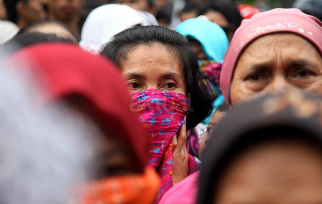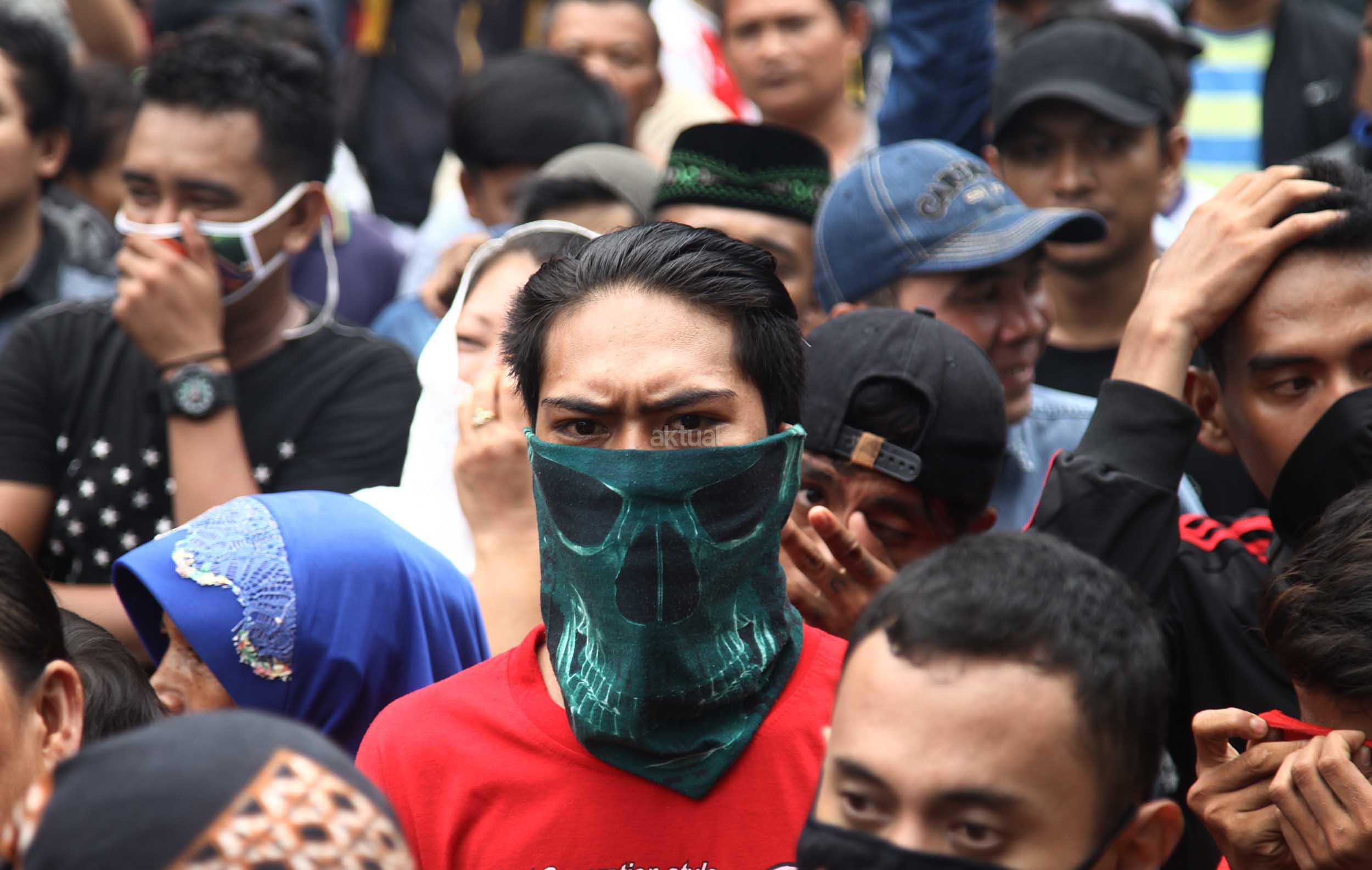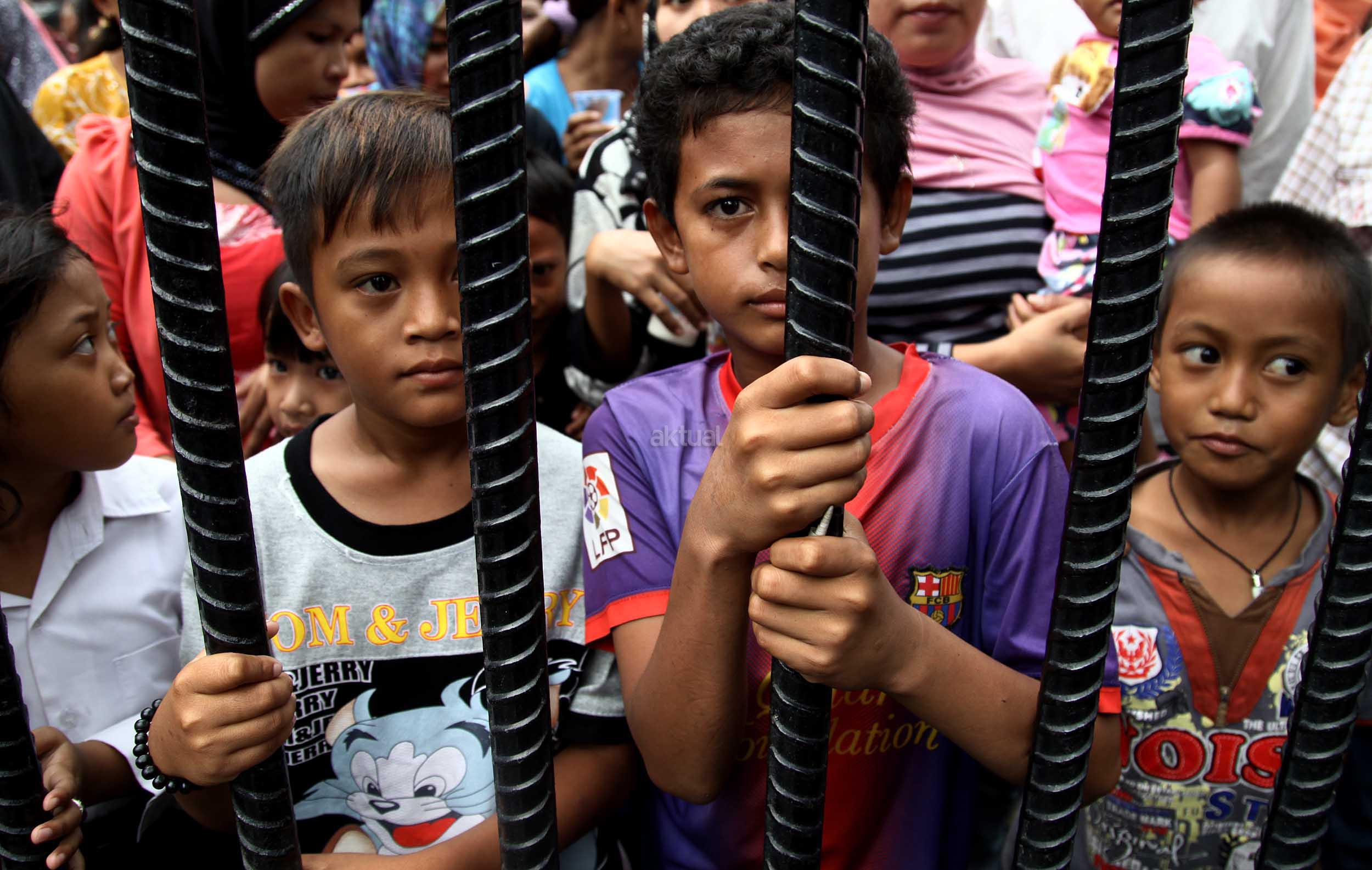 Ratusan warga Kalijodo melakukan aksi demontrasi depan kantor DPRD DKI,Jalan Kebon Sirih, Jakarta Pusat, Jumat (19/2/2016). Dalam aksinya ratusan warga Kalijodo menuntut ganti rugi lahan dan bangunan yang telah mereka tinggali berpuluh tahun itu yang hendak disulap Ahok untuk ruang terbuka hijau sesuai peruntukannya.