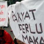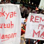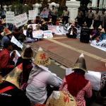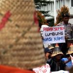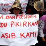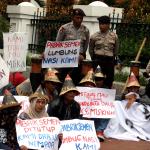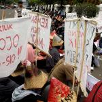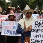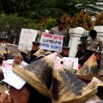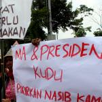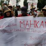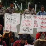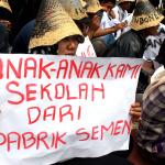 Sejumlah warga rembang yang tergabung dalam Forum Warga Rembang Bangkit berunjuk rasa di depan Mahkamah Agung, Jakarta, Kamis (27/10/2016). Dalam aksinya mereka memohon keadilan dan solusi atas putusan Mahkamah Agung tentang pembatalan izin lingkungan PT Semen Indonesia. Putusan tersebut membuat resah ribuan warga desa – desa diseputar pabrik yang telah bekerja dan merasakan manfaat kehadiran pabrik semen PT Indonesia di Rembang Jawa Tengah, sehingga kehilangan pekerjaan dan mata pencaharian.
