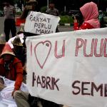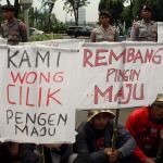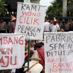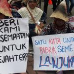 Dalam aksinya mereka memohon keadilan dan solusi atas putusan Mahkamah Agung tentang pembatalan izin lingkungan PT Semen Indonesia. Putusan tersebut membuat resah ribuan warga desa - desa diseputar pabrik yang telah bekerja dan merasakan manfaat kehadiran pabrik semen PT Indonesia di Rembangm Jawa Tengah, sehingga kehilangan pekerjaan dan mata pencaharian. AKTUAL/Munzir