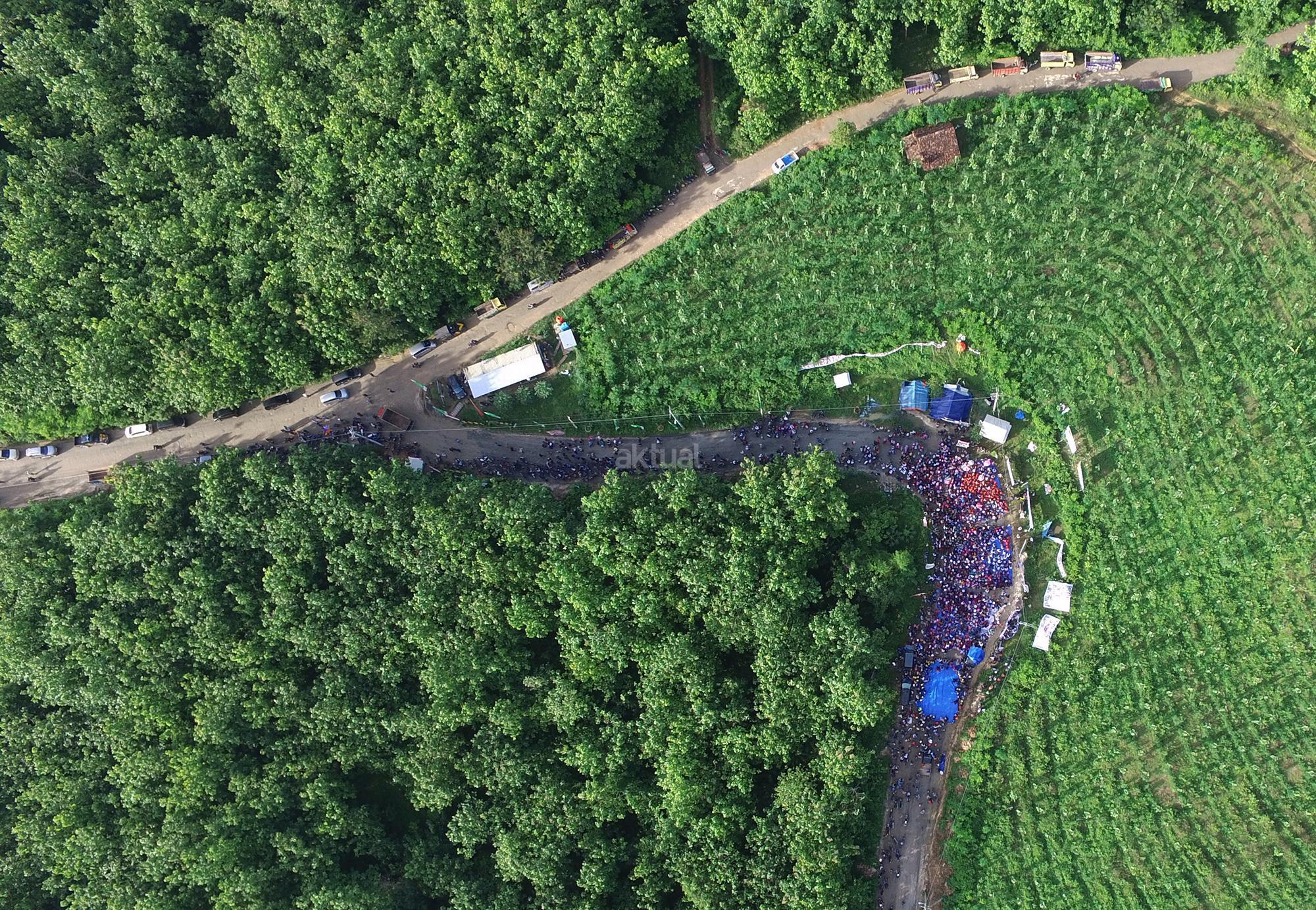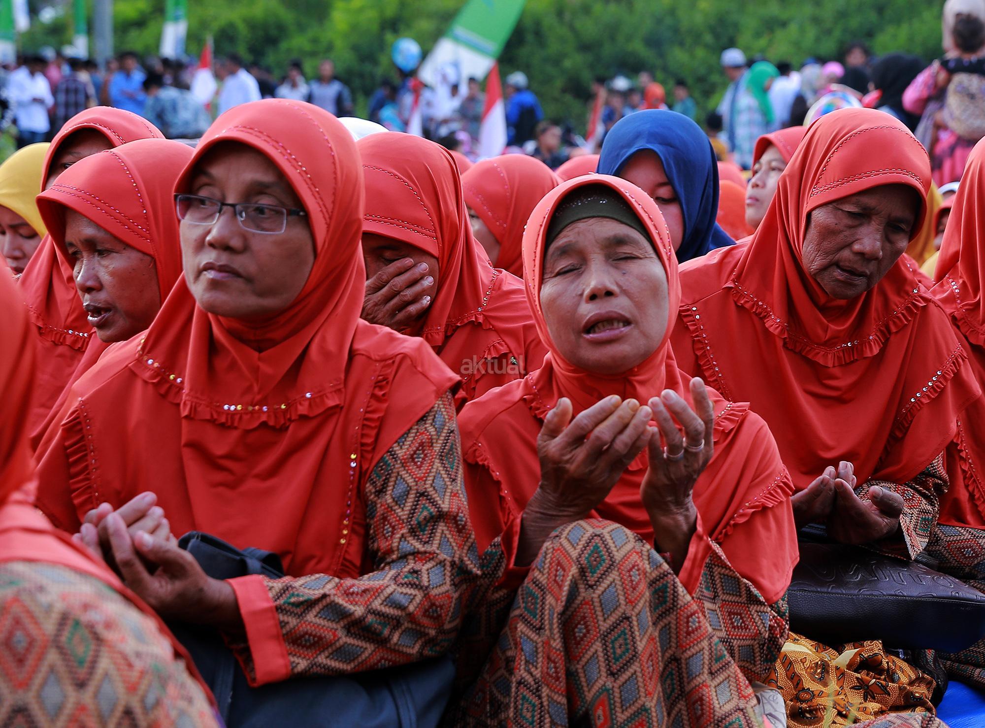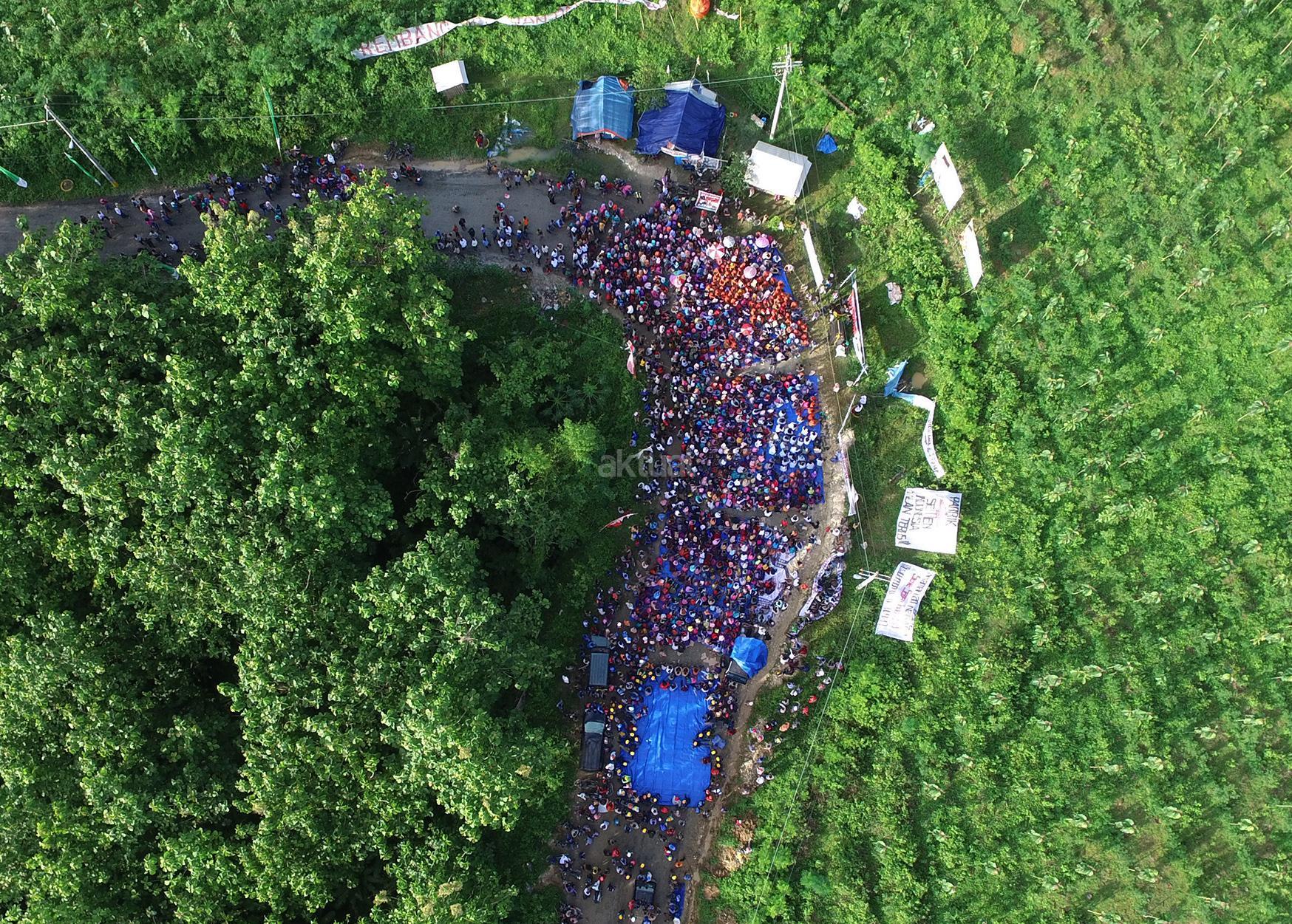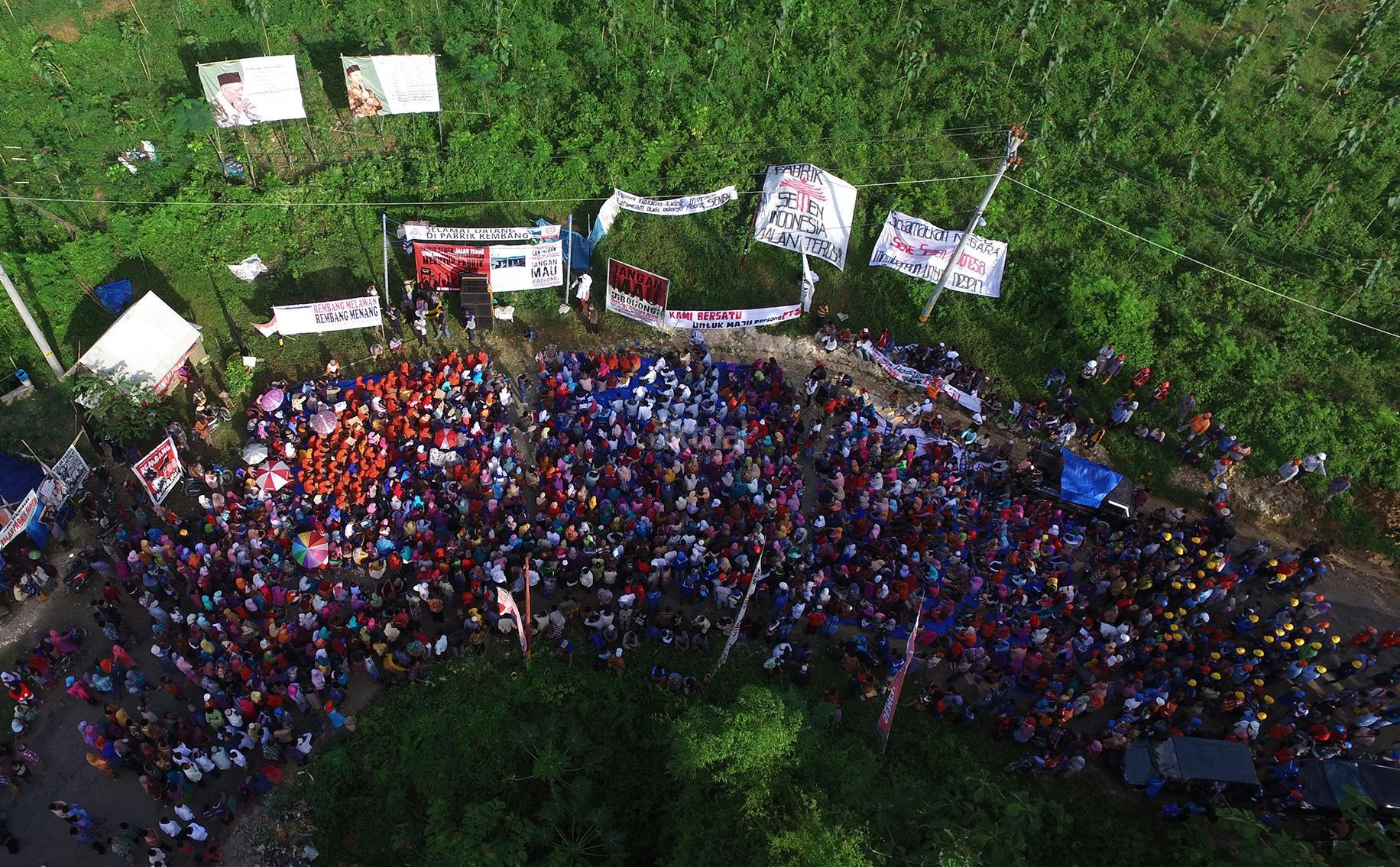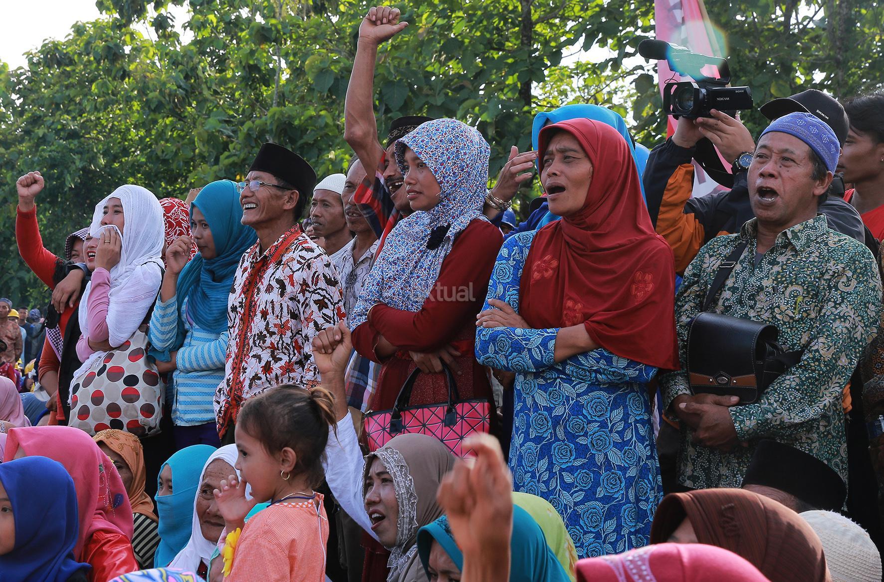 4000 warga yang tinggal di Kecamatan Gunem dan Bulu Kabupaten Rembang menggelar acara doa bersama dan istighosah di pintu masuk menuju pabrik PT Semen Indonesia di Desa Kadiwono Kec Bulu Kab Rembang Rabu (7/12). Doa dan istigosah tersebut merupakan salah satu bentuk dukungan warga agar pembangunan pabrik Semen Indonesia di Rembang tetap berjalan. Ribuan warga yang mengikuti aksi tersebut berasal dari Desa Kadiwono, Tegaldowo, Timbrangan, Pasucen dan Kajar. AKTUAL/Humas Semen Indonesia
