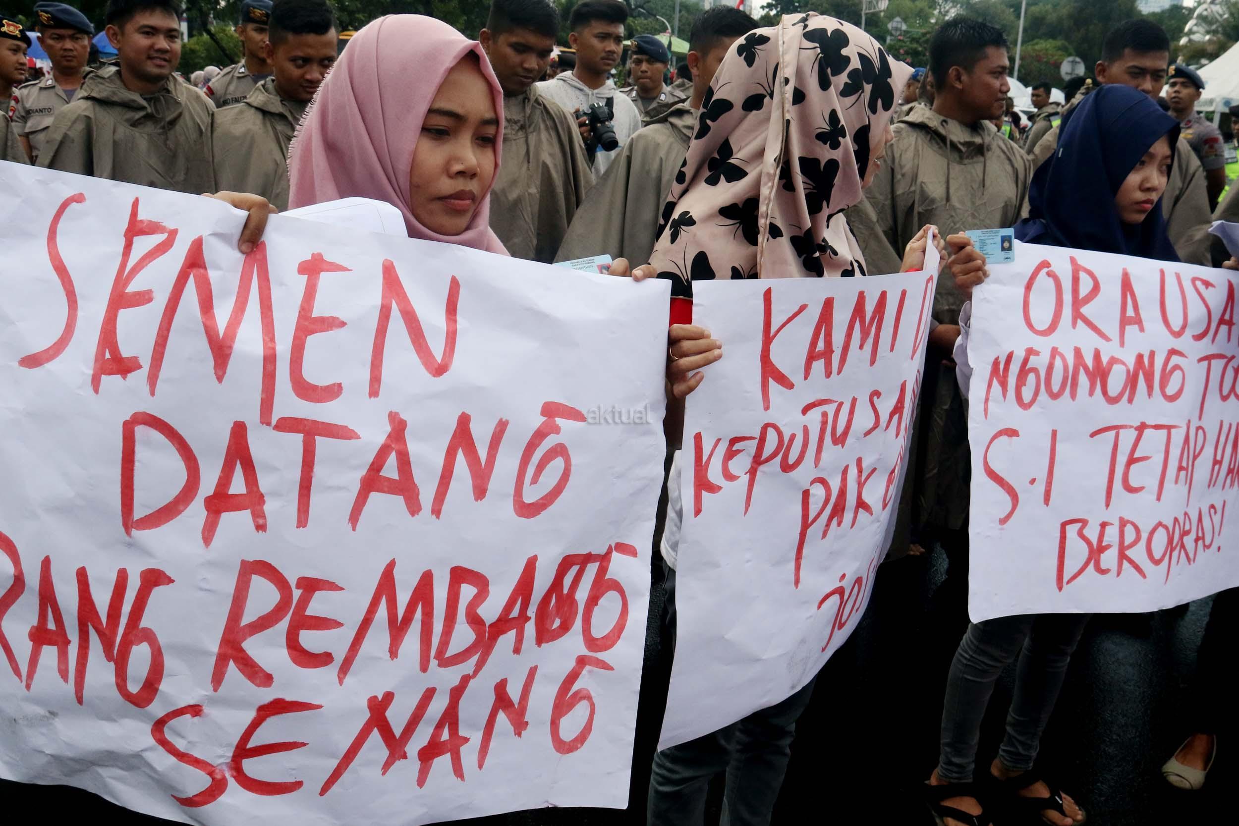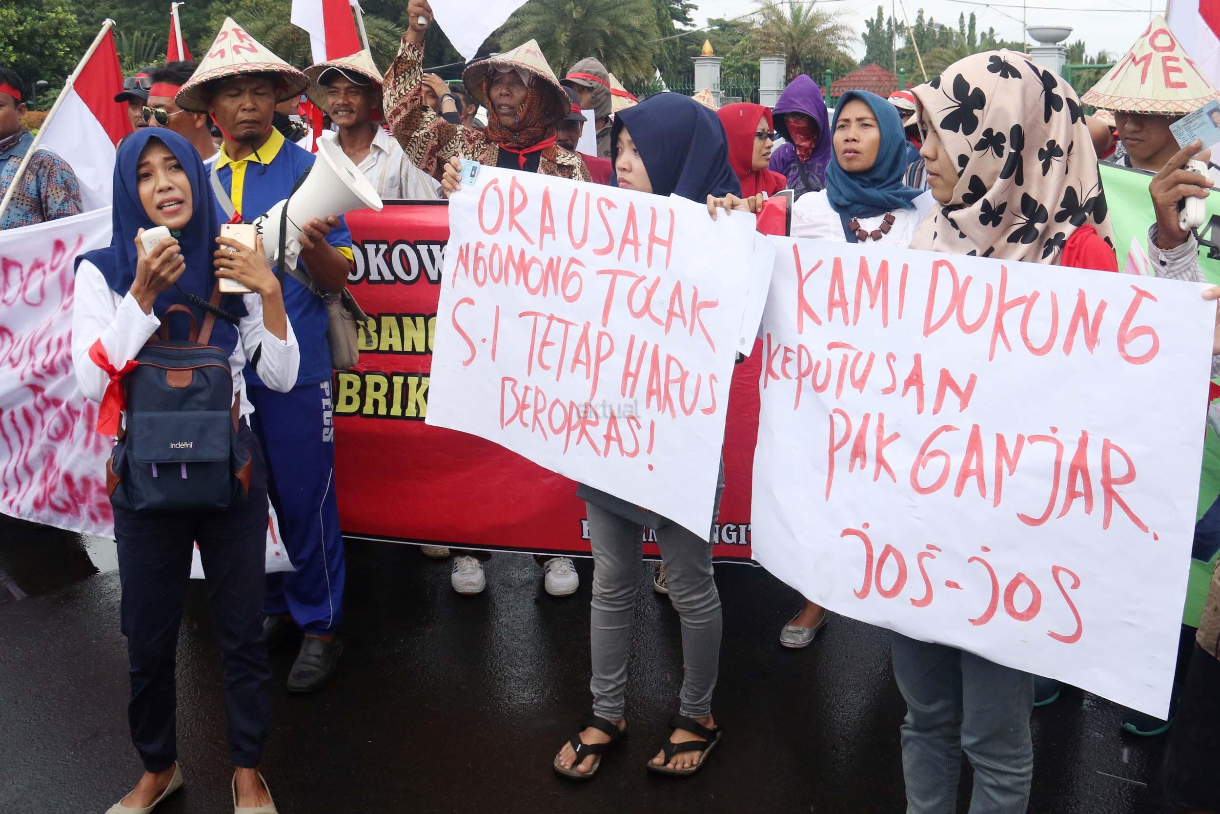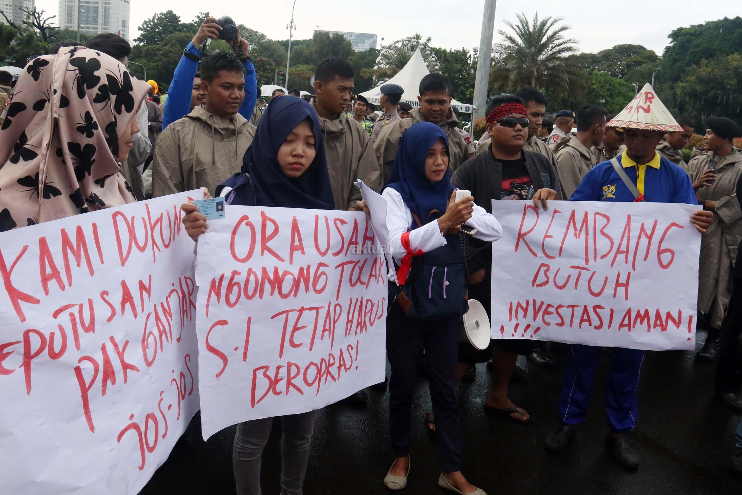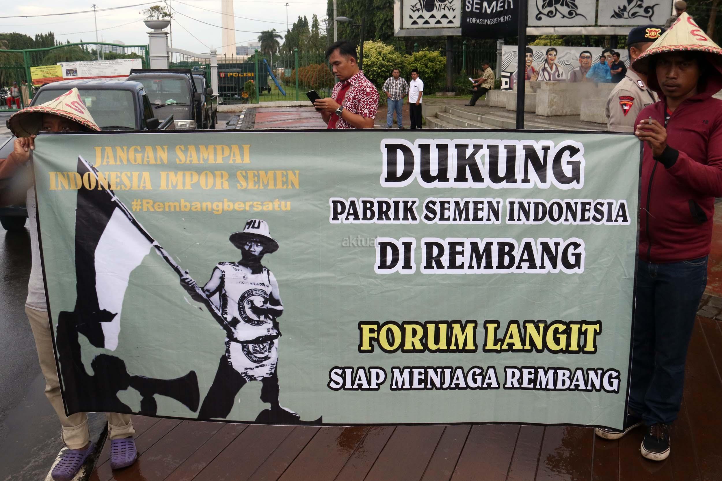 Ratusan warga Rembang yang tergabung dalam Laskar Broteseno menunjukan KTPnya sebagai bentuk dukungan terhadap pembangunan Pabrik Semen Indonesia, di depan Istana Merdeka, Senin (20/3/2017). Dalam aksinya para warga Rembang mendesak Presiden Jokowi untuk merespon tuntutan warga yang mendukung pembangunan Pabrik Semen Indonesia di Rembang. AKTUAL/Munzir
