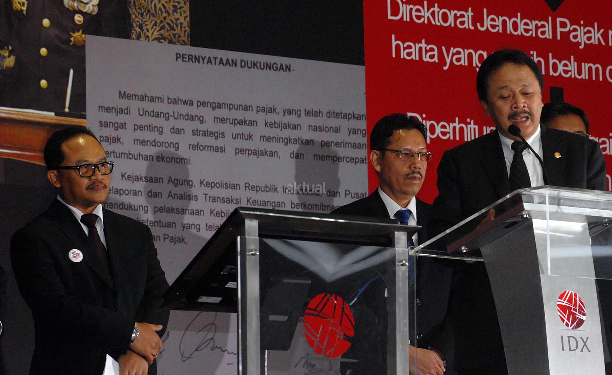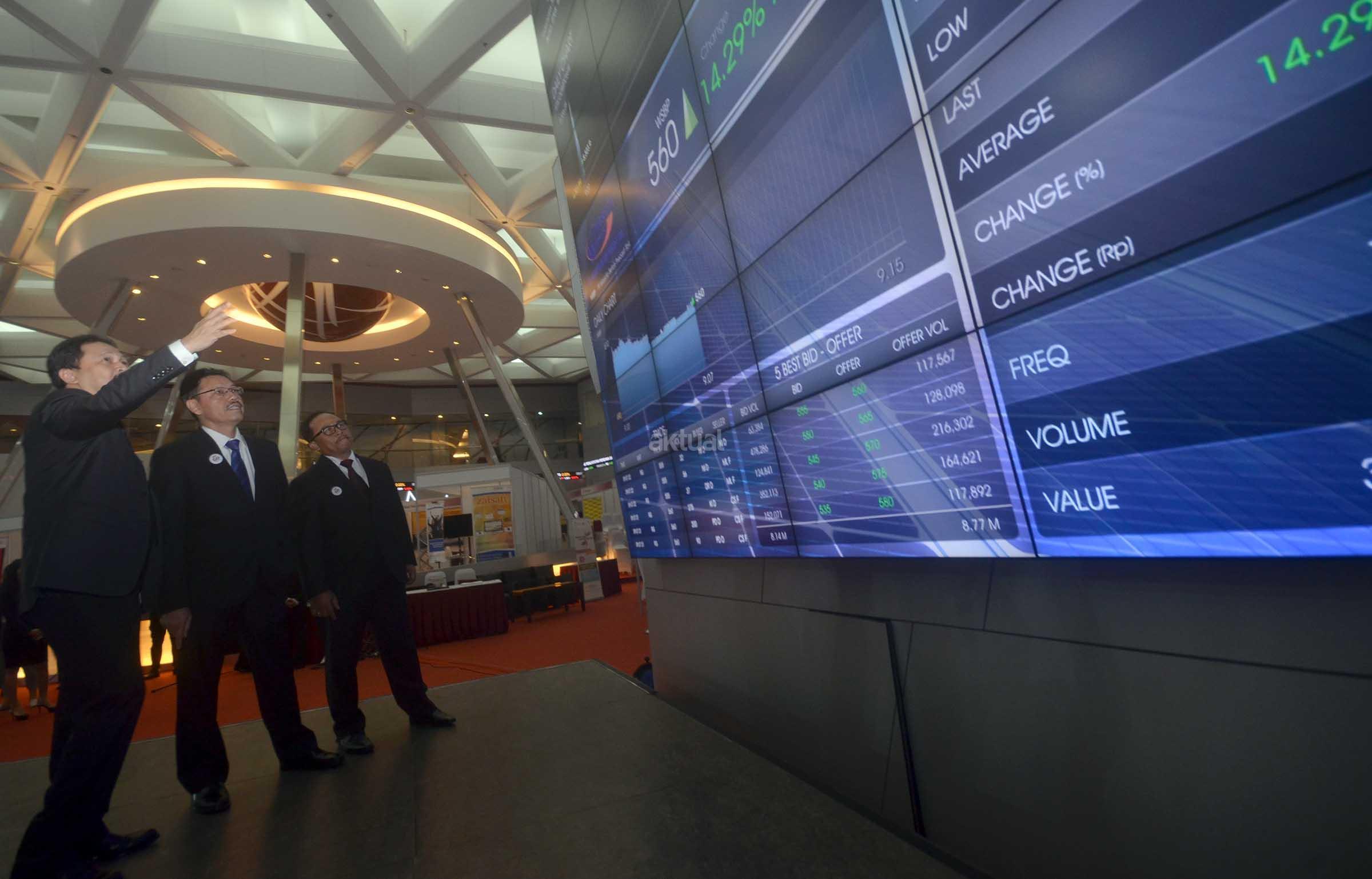 Direktur Utama PT Bursa Efek Indonesia, Tito Sulistio (tengah) berbincang dengan Komisaris Utama PT Waskita Beton Precast Tbk (WBSP), Tunggul Radjagukguk (kiri) dan Direktur Utama PT Waskita Beton Precast Tbk, Jarot Subana (kanan) seusai membuka perdagangan saham perdana di Bursa Efek Indonesia, Selasa (20/9).WBSP secara resmi mencatatkan namanya menjadi emiten ke 532 di Bursa Efek Indonesia (BEI). Anak usaha PT Waskita Karya Tbk (WSKT) ini juga menargetkan menghimpun dana Rp 5,1 triliun dari hasil IPO.Anak usaha BUMN yang fokus pada produksi beton ini tercatat hingga pertengahan September 2016 telah mengantongi kontrak baru hampir mencapai Rp 7 triliun. Capaian kontrak baru tersebut sudah mendekati target kontrak baru hingga akhir tahun sebesar Rp 7,6 triliun dengan sisa kontrak tahun 2015 sebesar Rp 3,2 triliun.Selanjutnya, hingga akhir 2016 perseroan menargetkan laba bersih sebesar Rp 620 miliar dengan total keuntungan mencapai Rp 4,7 triliun. Aktual/Eko S Hilman